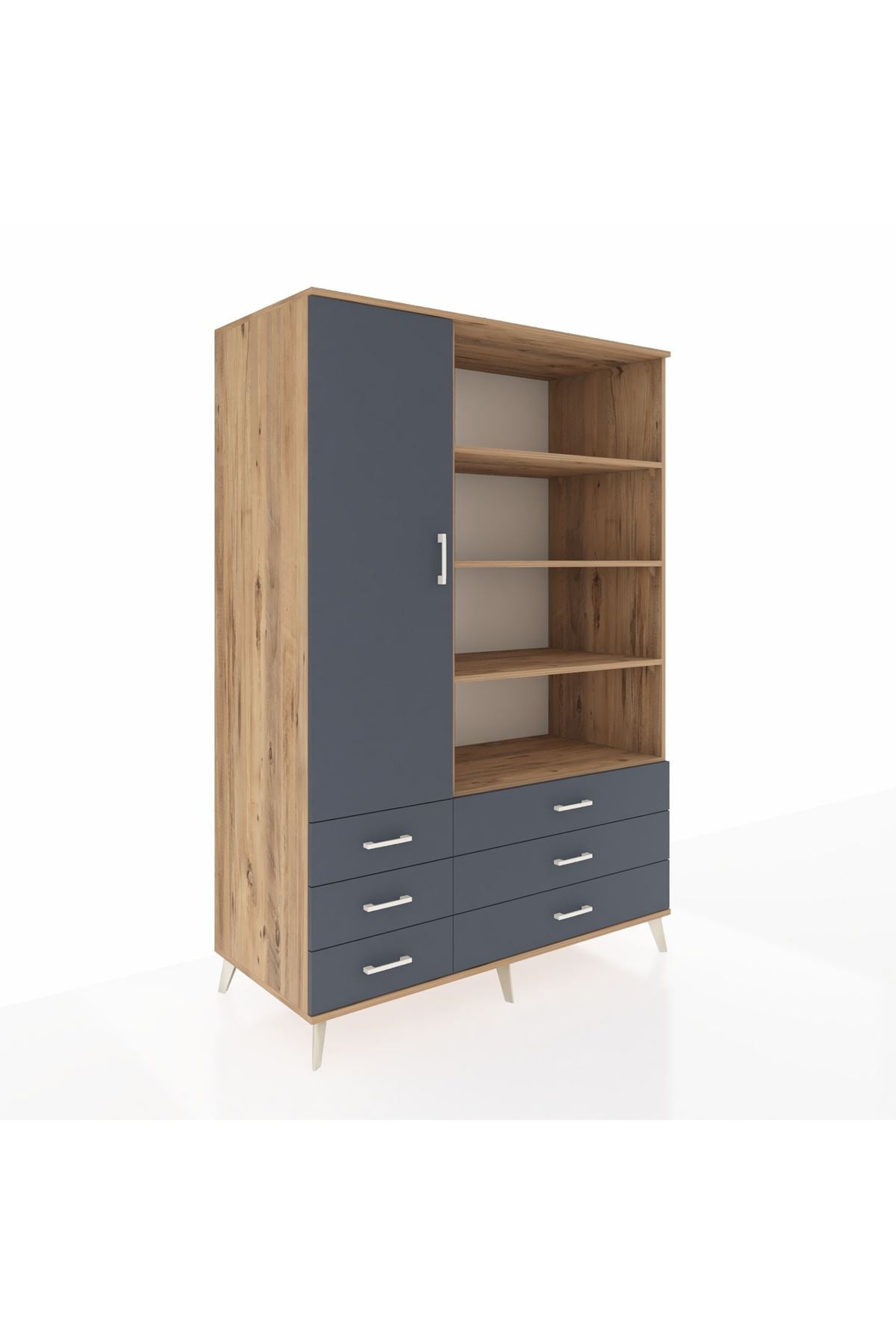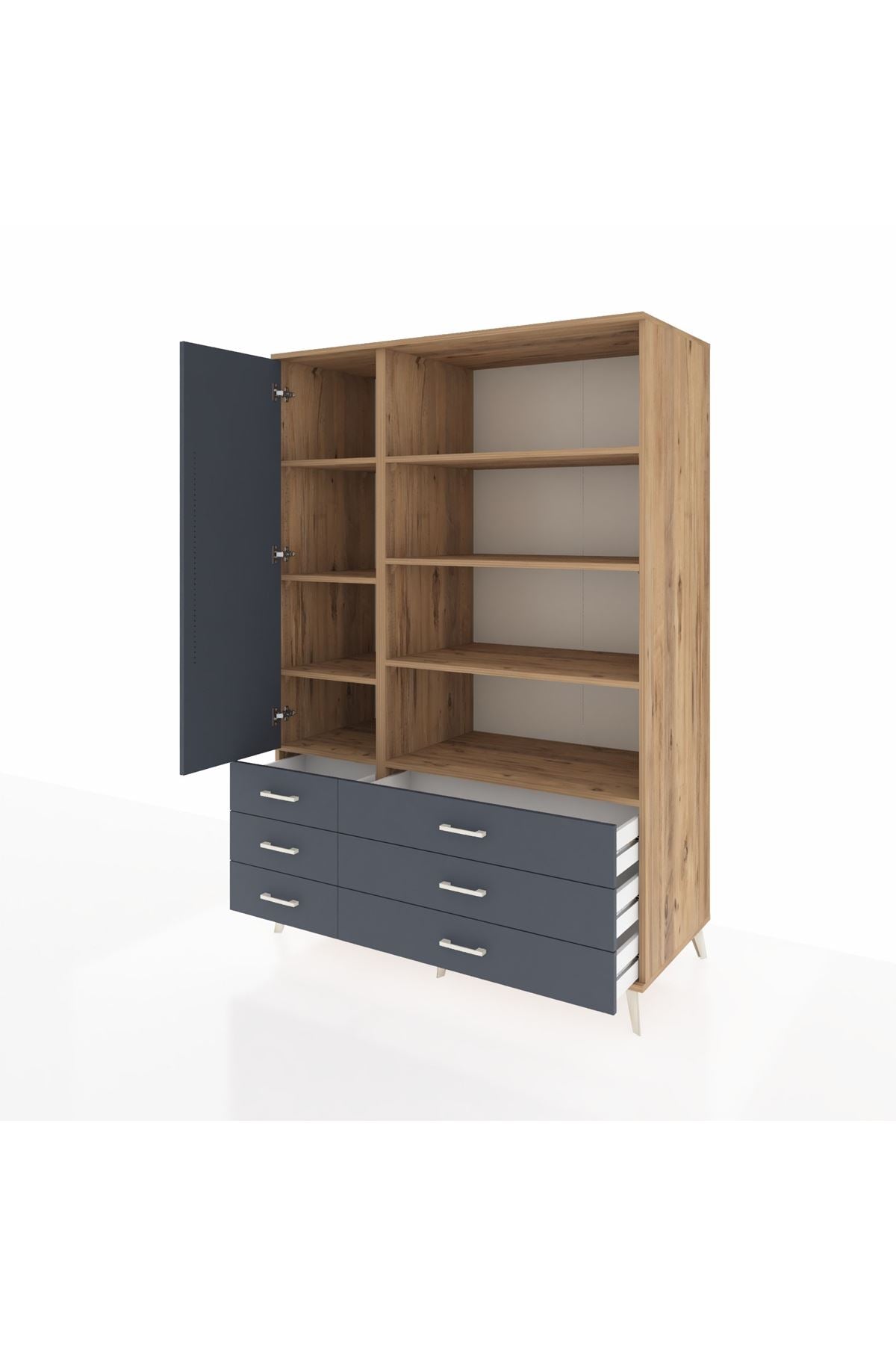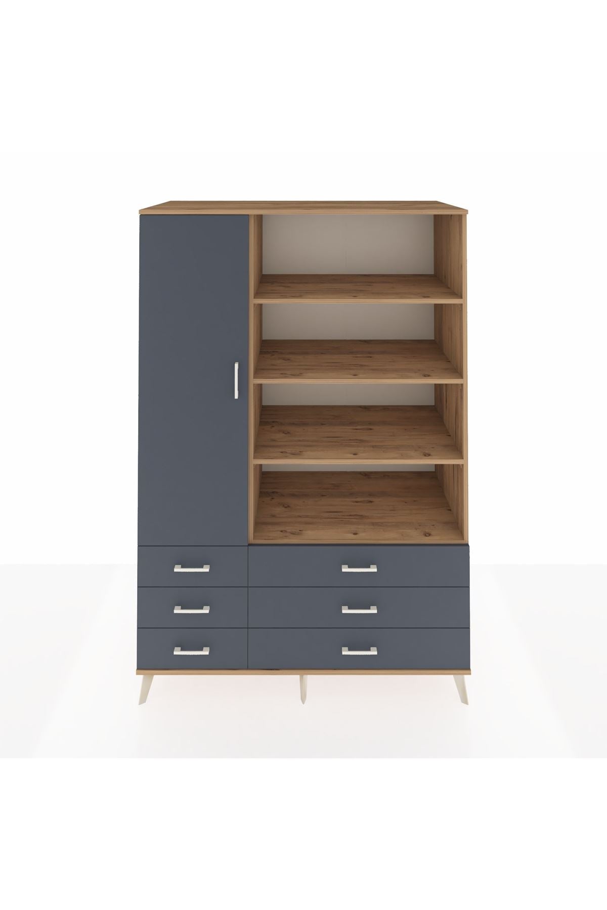 Kronos Dolap 8 Raflı 6 Çekmeceli Tek Kapaklı 132x59x195 Çam-Antrasit/Antrasit
