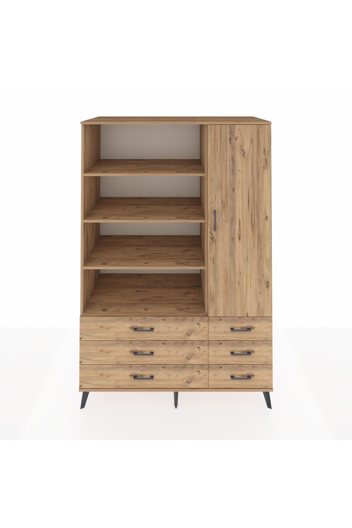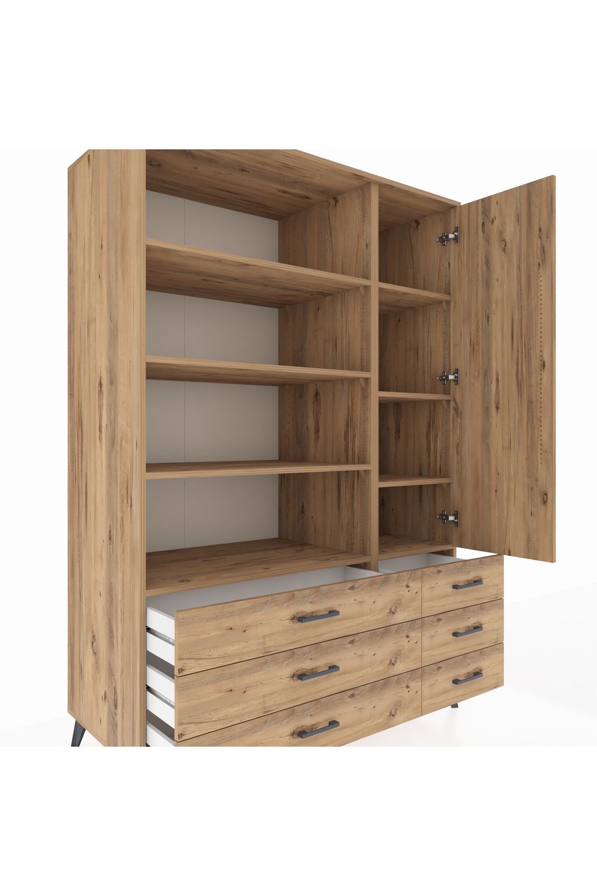 Kronos Dolap 8 Raflı 6 Çekmeceli Tek Kapaklı 132x59x195 Çam-Çam/Çam