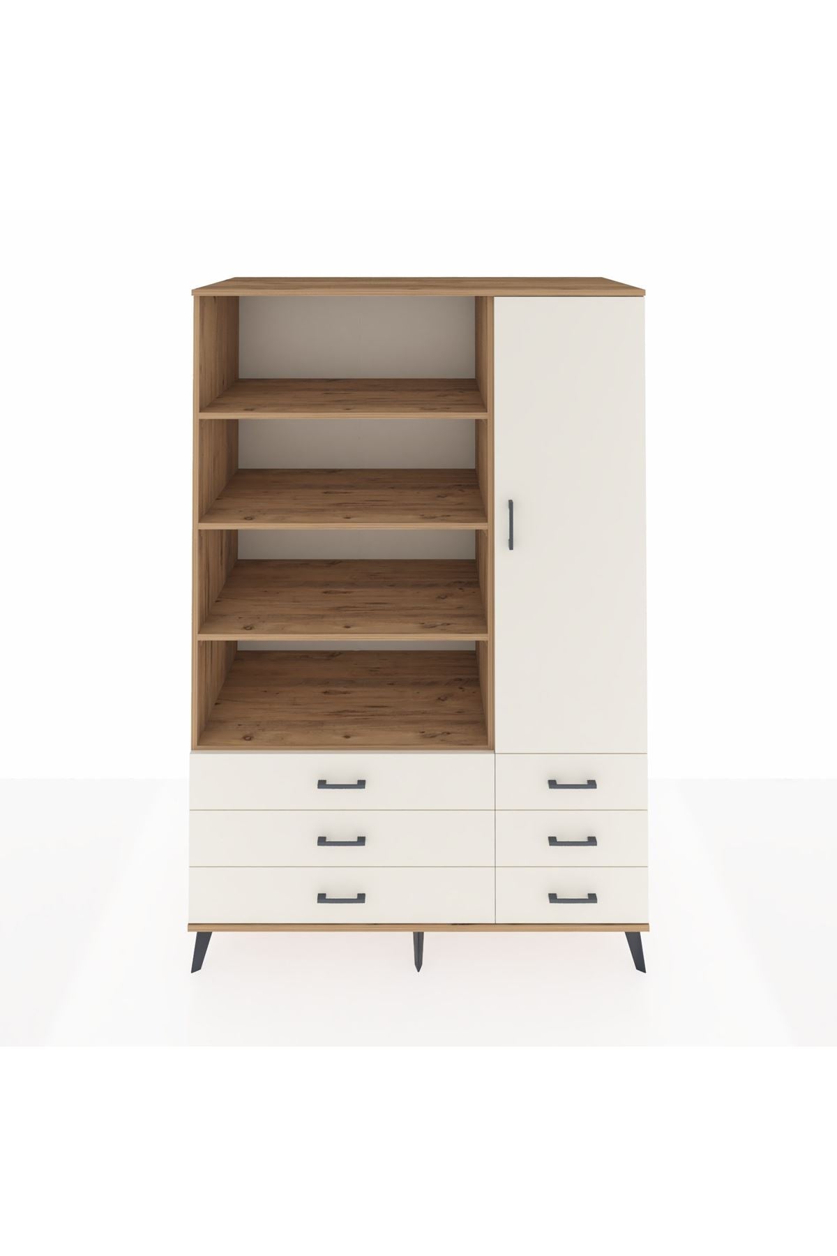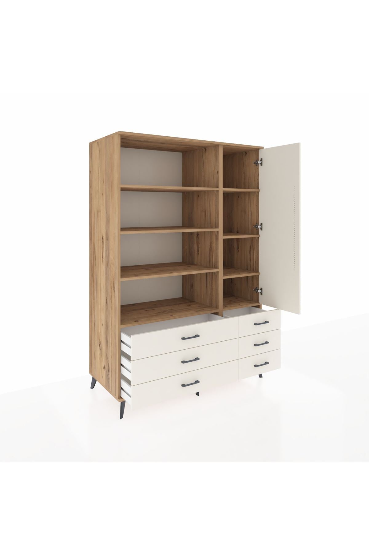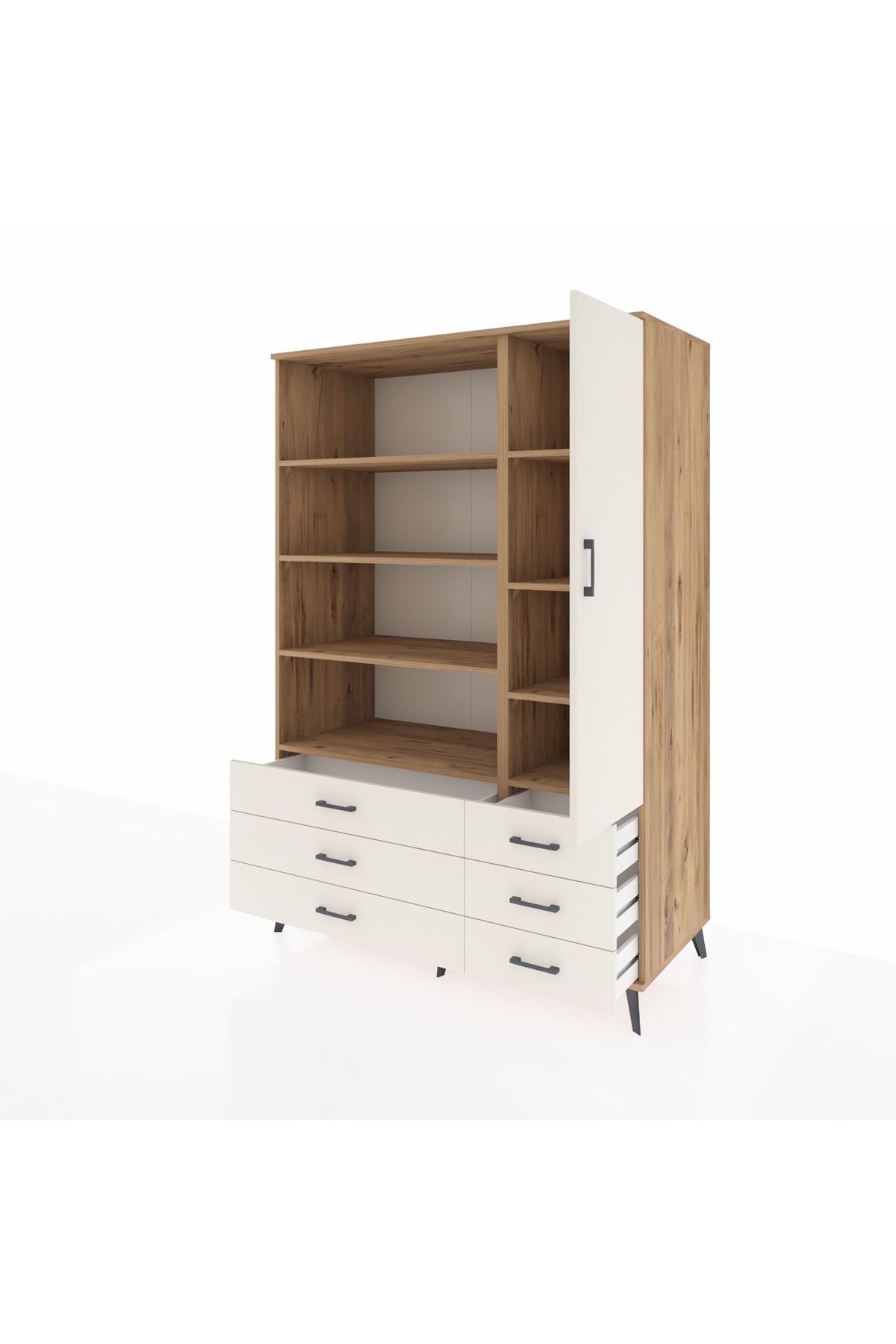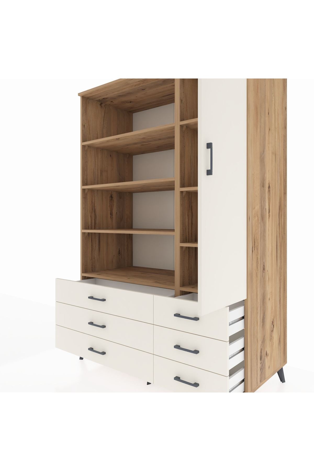 Kronos Dolap 8 Raflı 6 Çekmeceli Tek Kapaklı 132x59x195 Çam-Aytaşı/Aytaşı