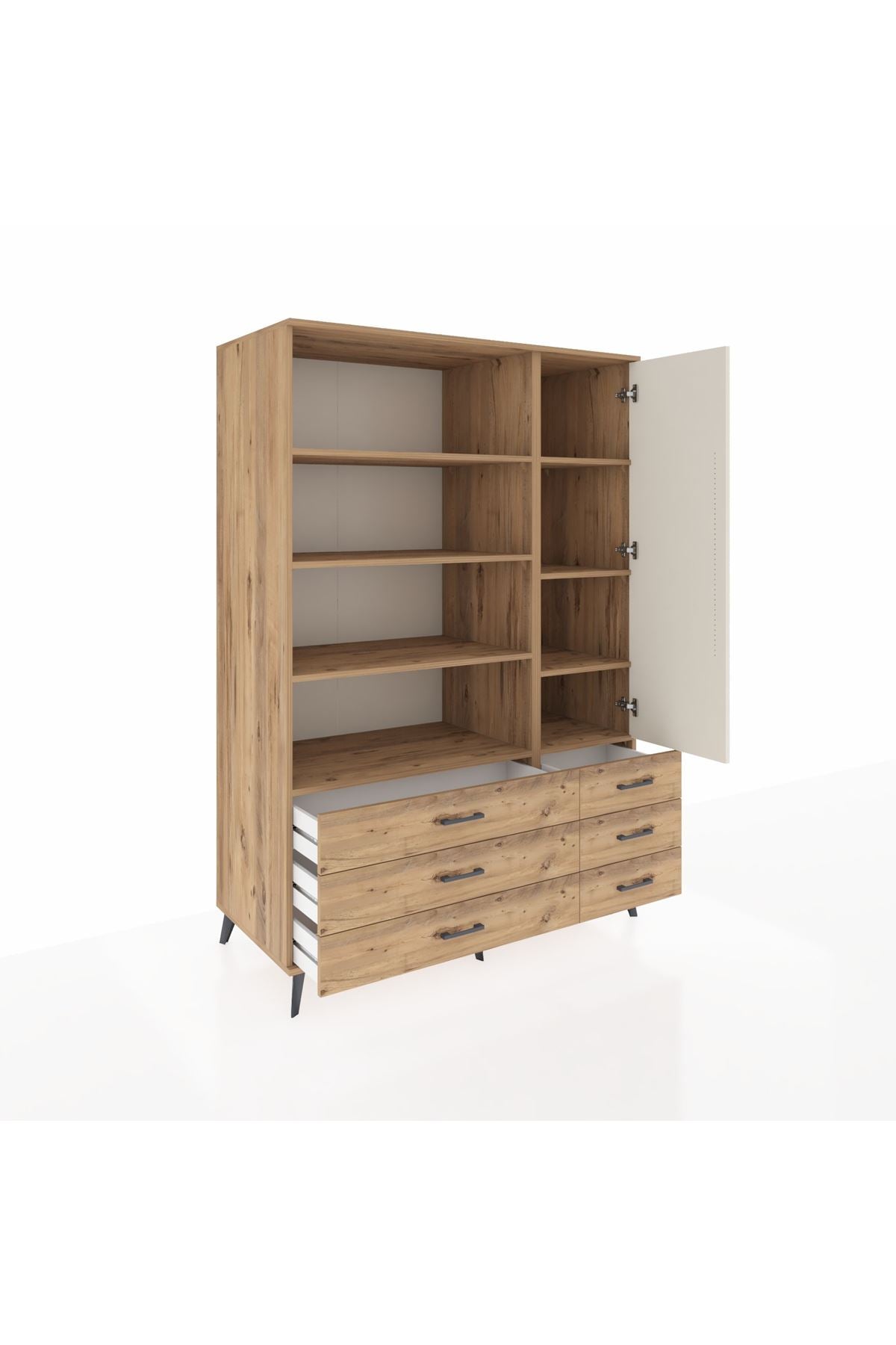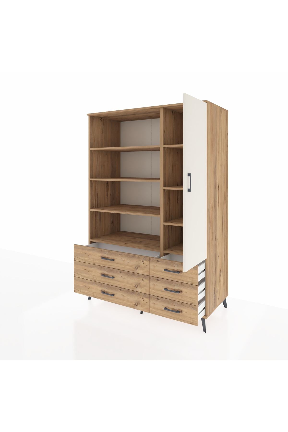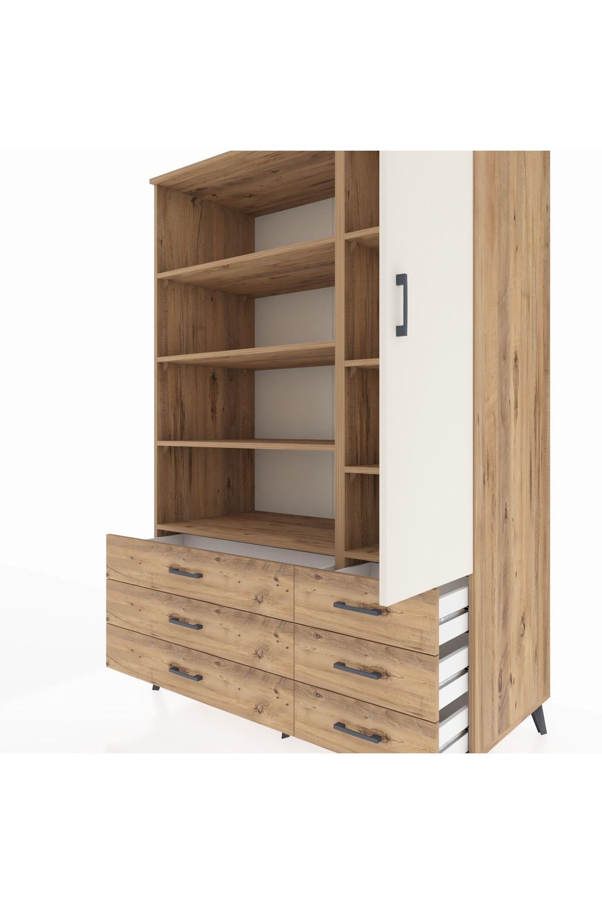 Kronos Dolap 8 Raflı 6 Çekmeceli Tek Kapaklı 132x59x195 Çam-Aytaşı/Çam