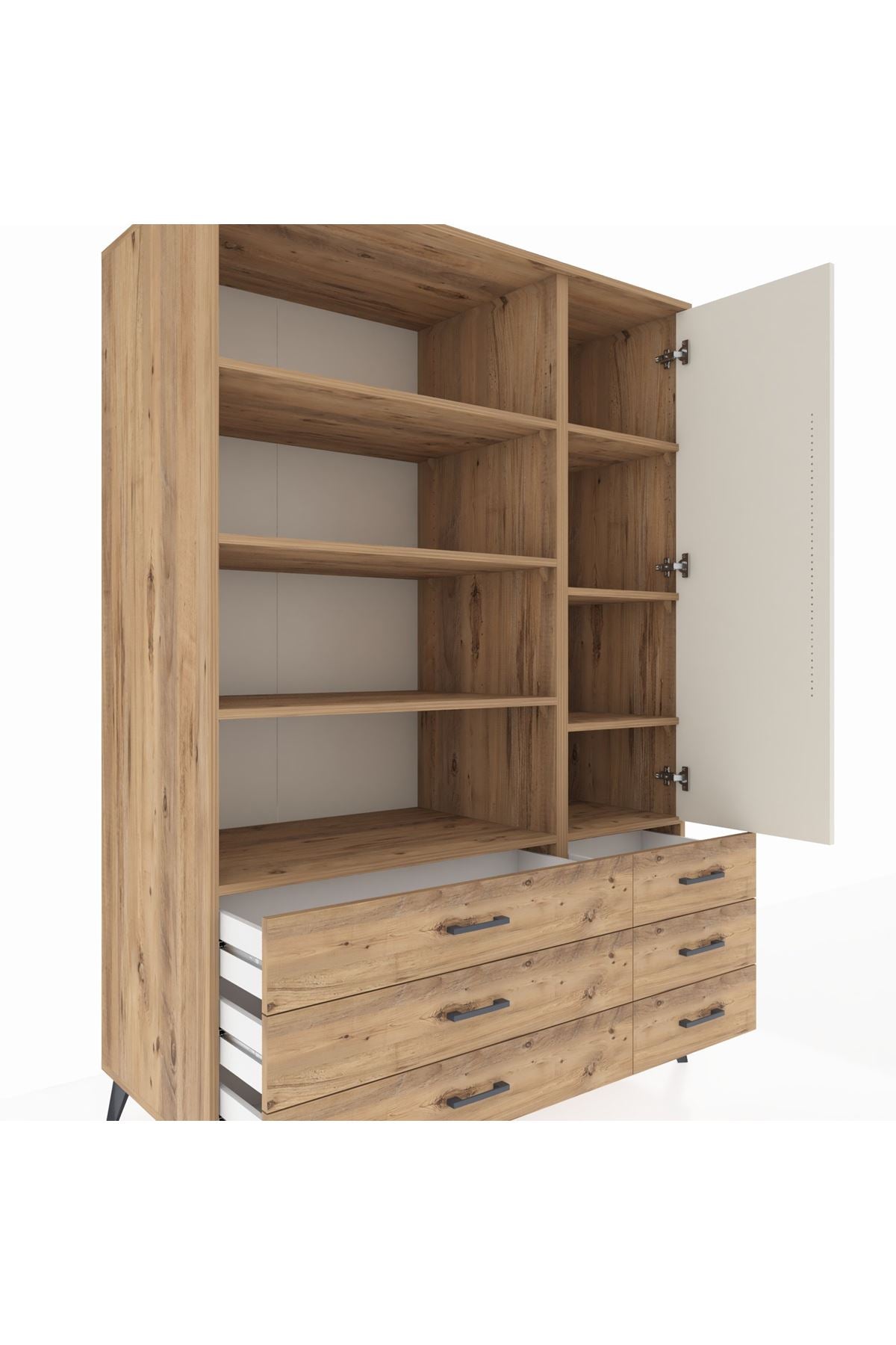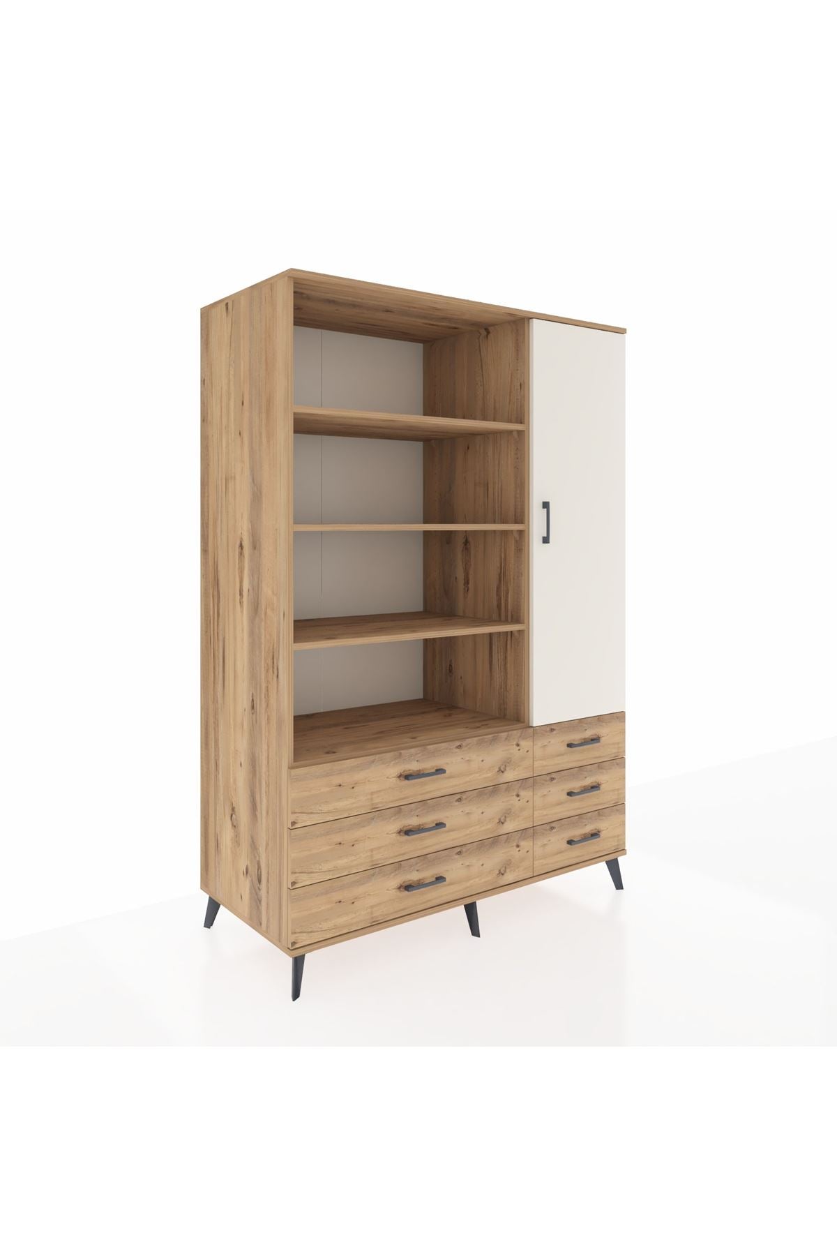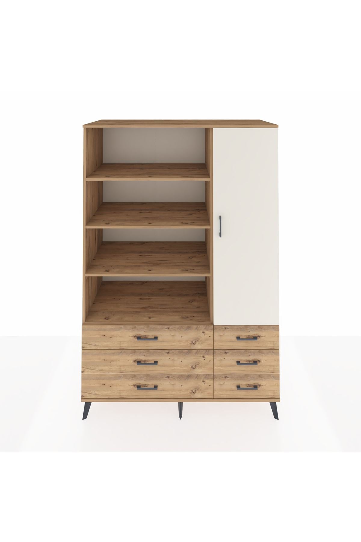Kronos Dolap 8 Raflı 6 Çekmeceli Tek Kapaklı 132x59x195 Çam-Aytaşı/Çam