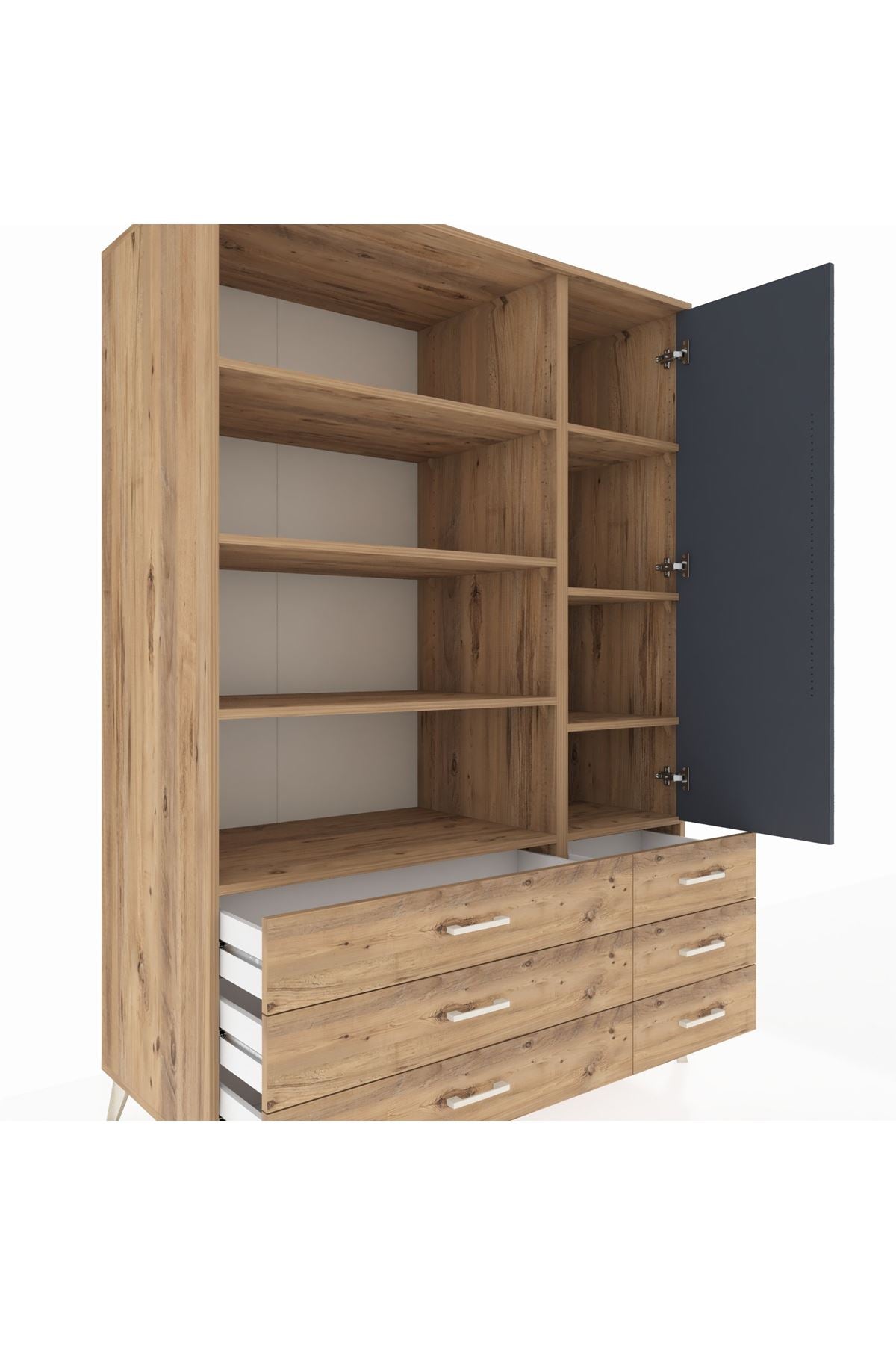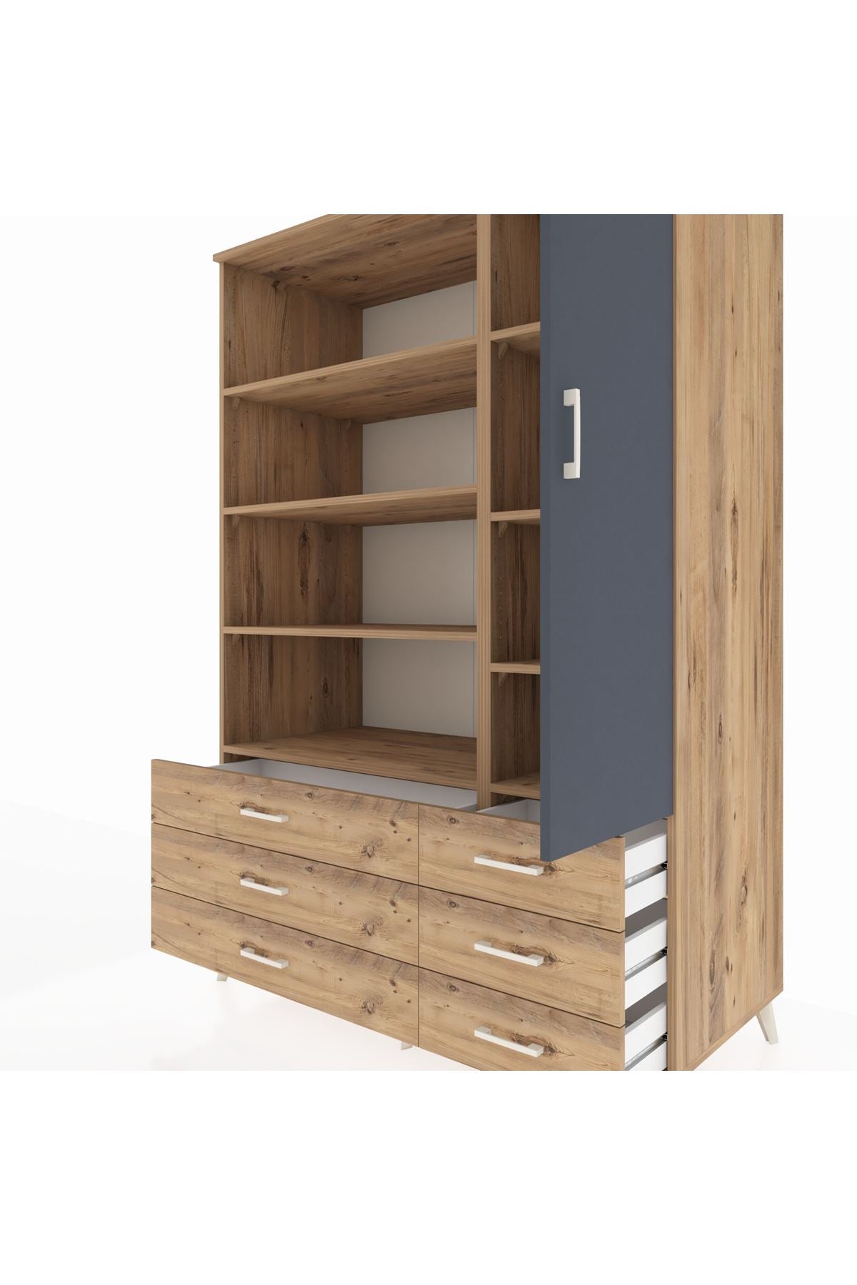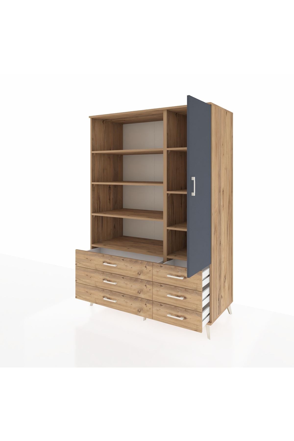 Kronos Dolap 8 Raflı 6 Çekmeceli Tek Kapaklı 132x59x195 Çam-Antrasit/Çam