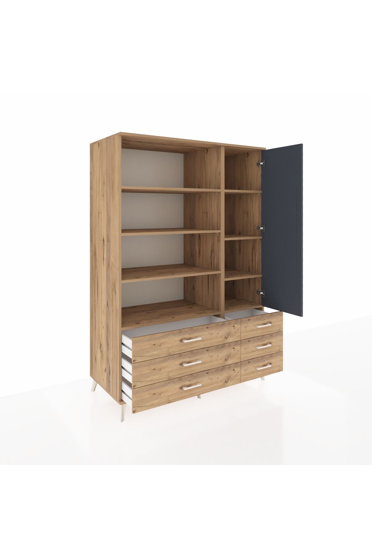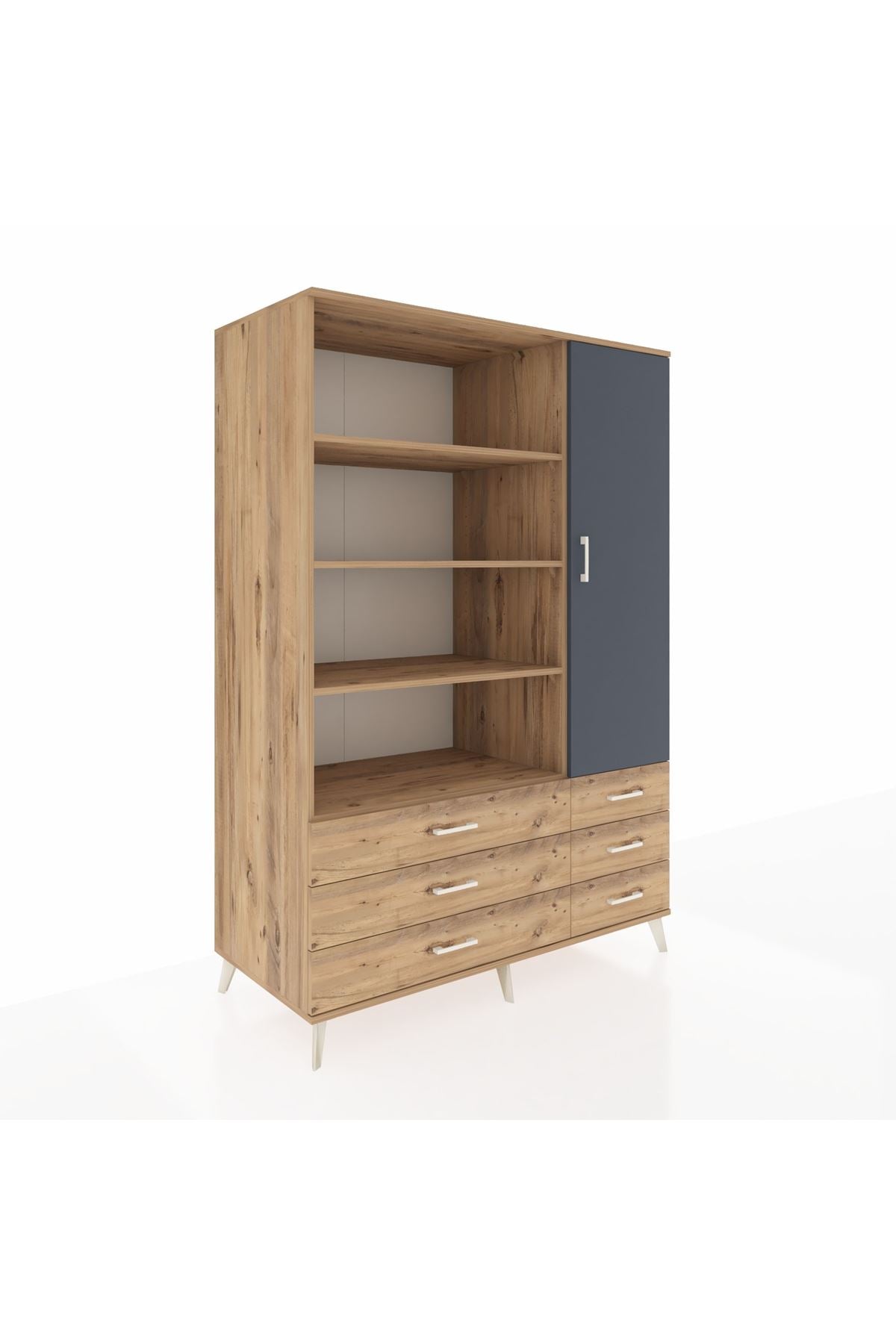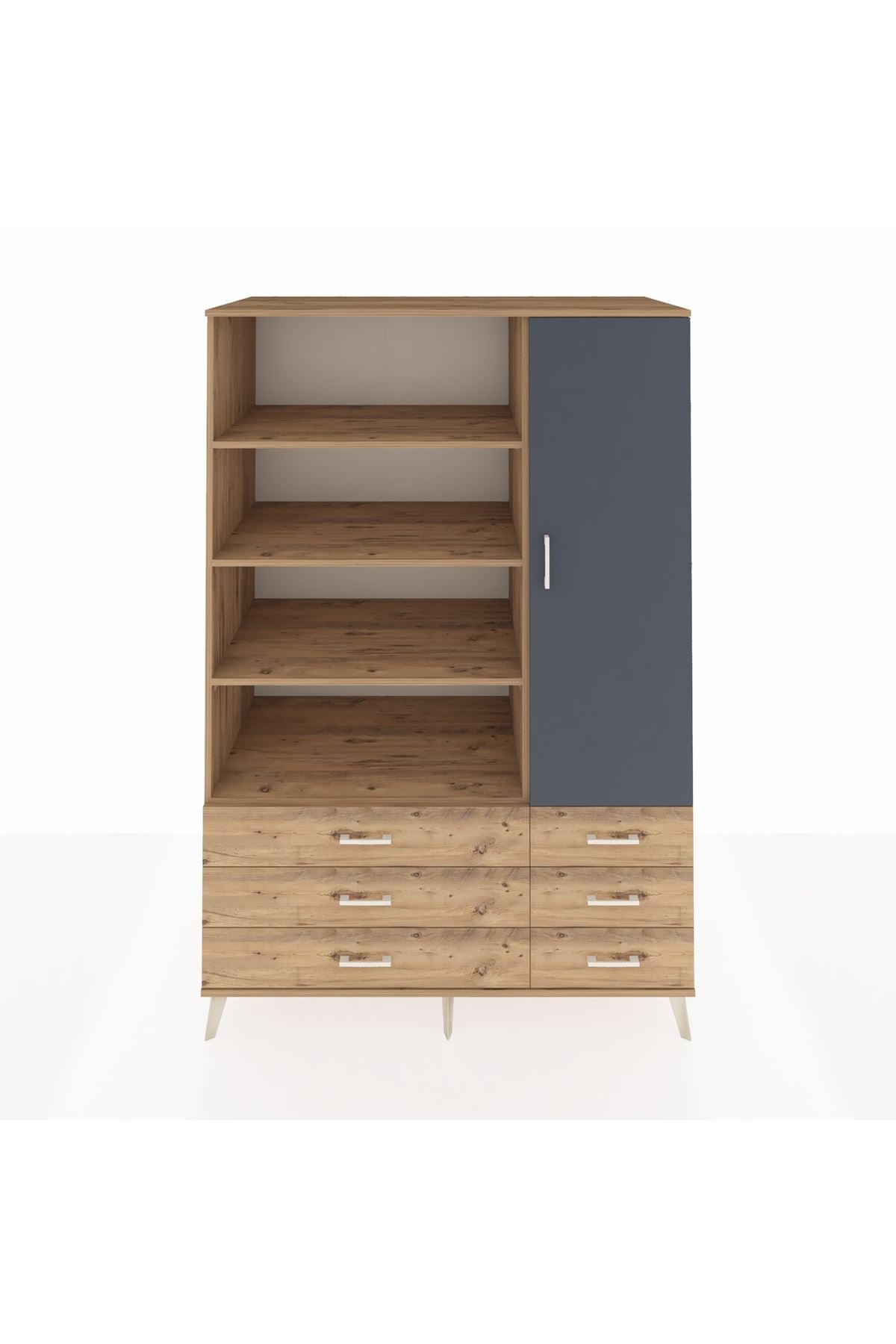 Kronos Dolap 8 Raflı 6 Çekmeceli Tek Kapaklı 132x59x195 Çam-Antrasit/Çam