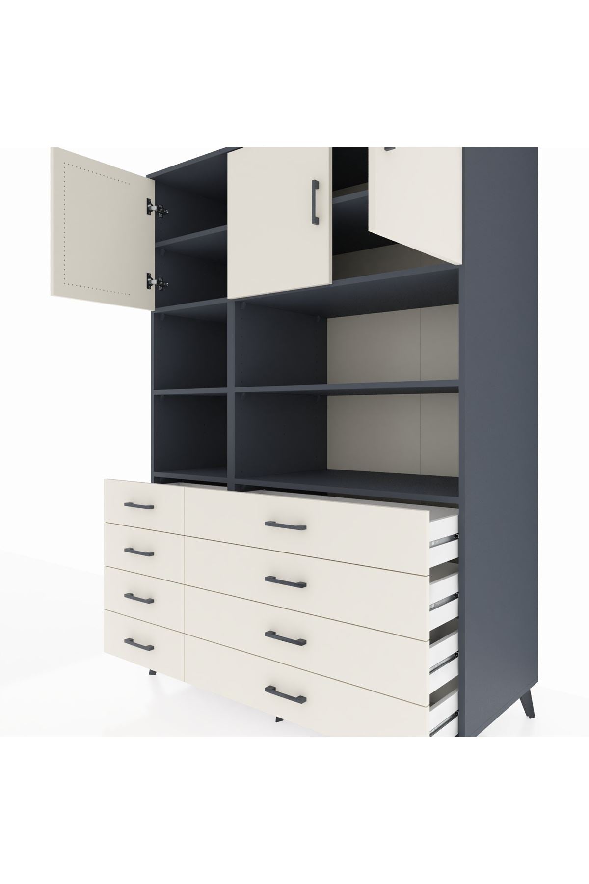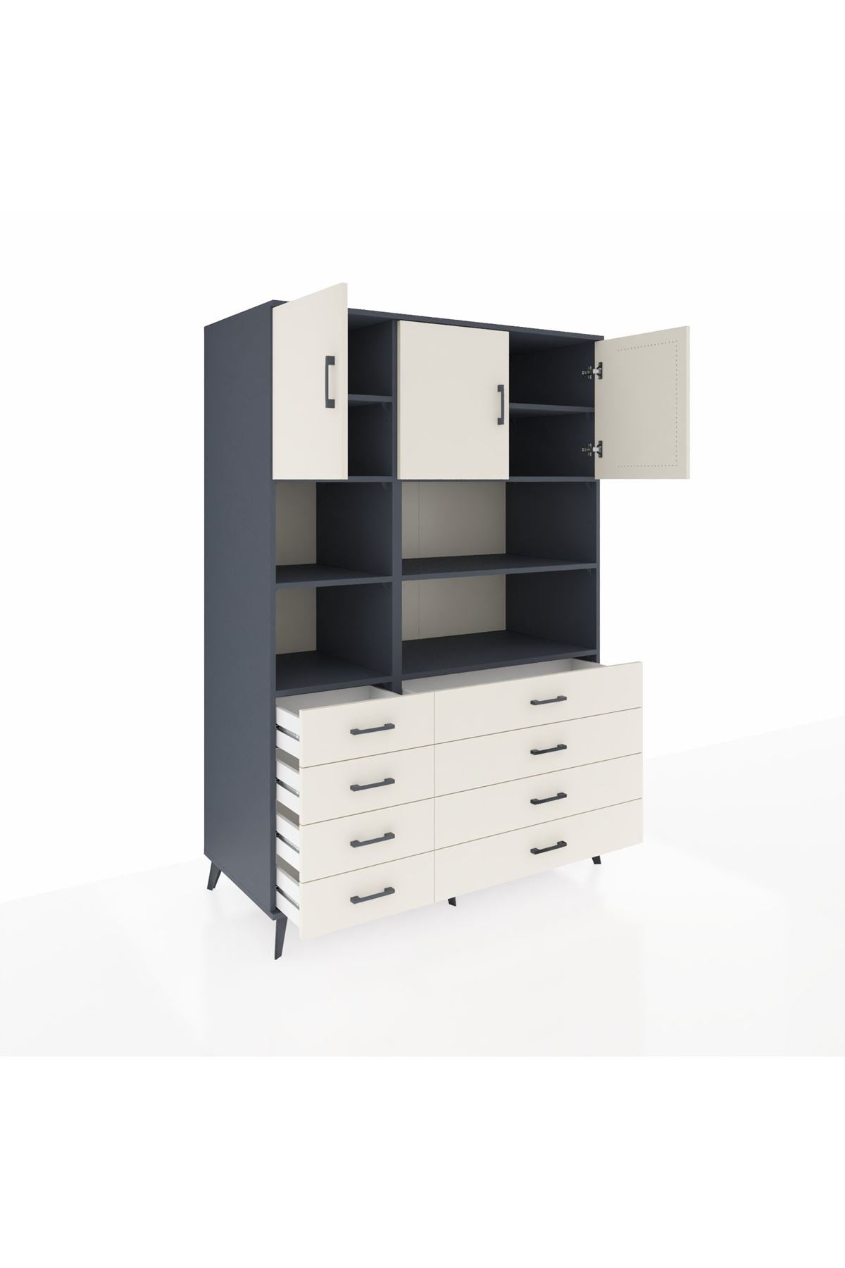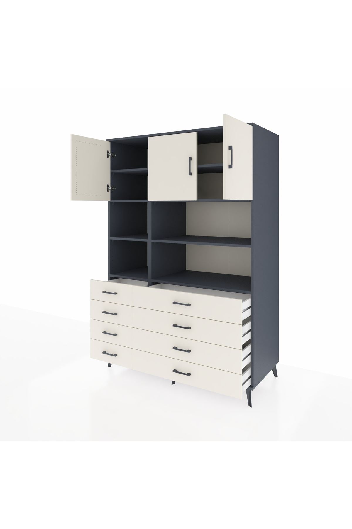 Kronos Dolap 8 Raflı 8 Çekmeceli 3 Kapaklı 132x59x195 Antrasit-Aytaşı/Aytaşı
