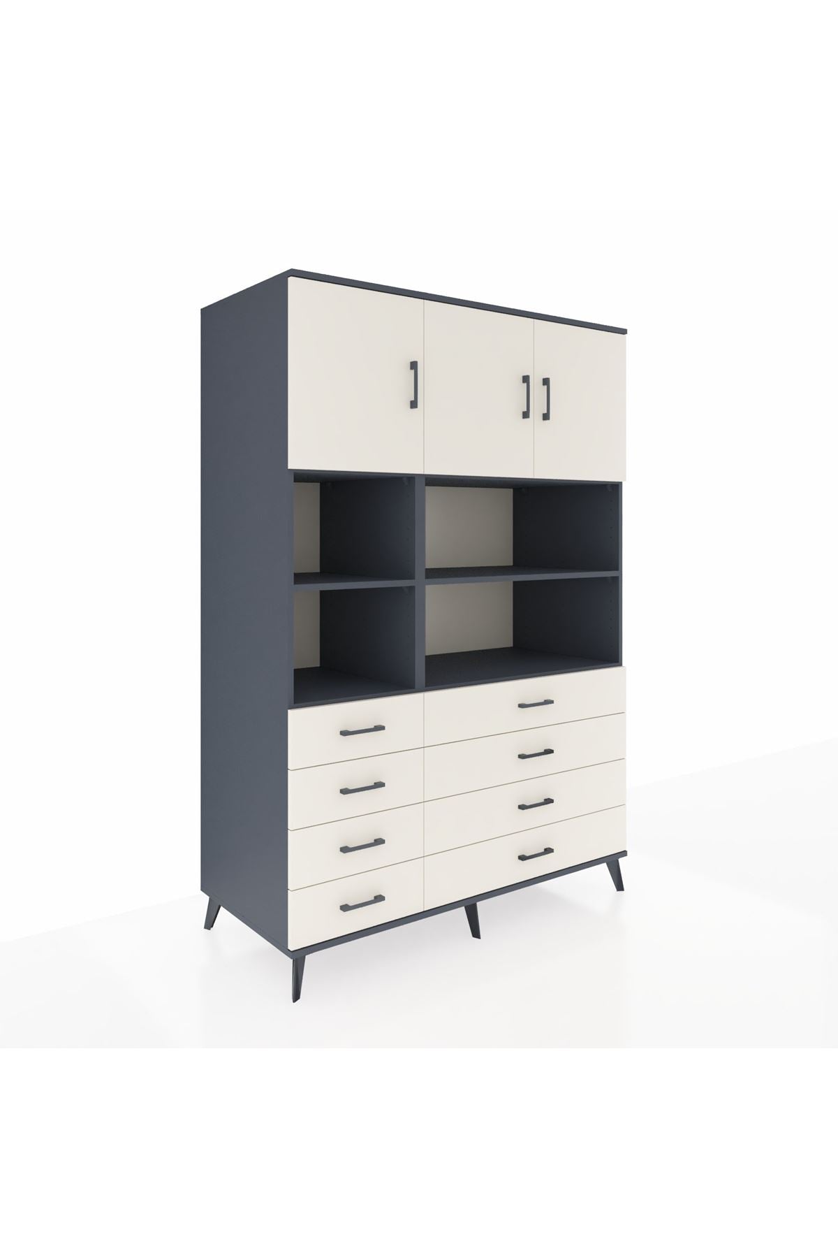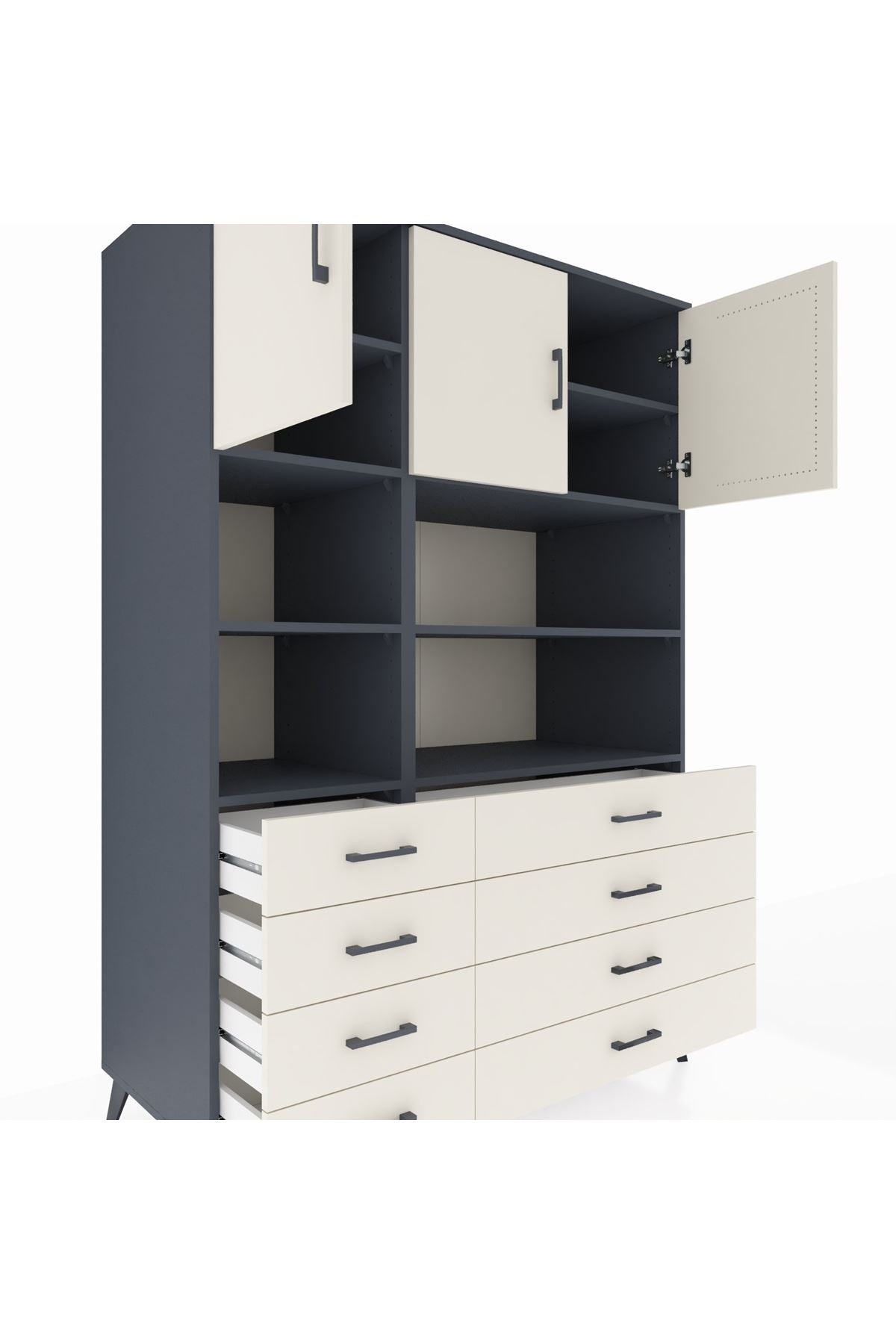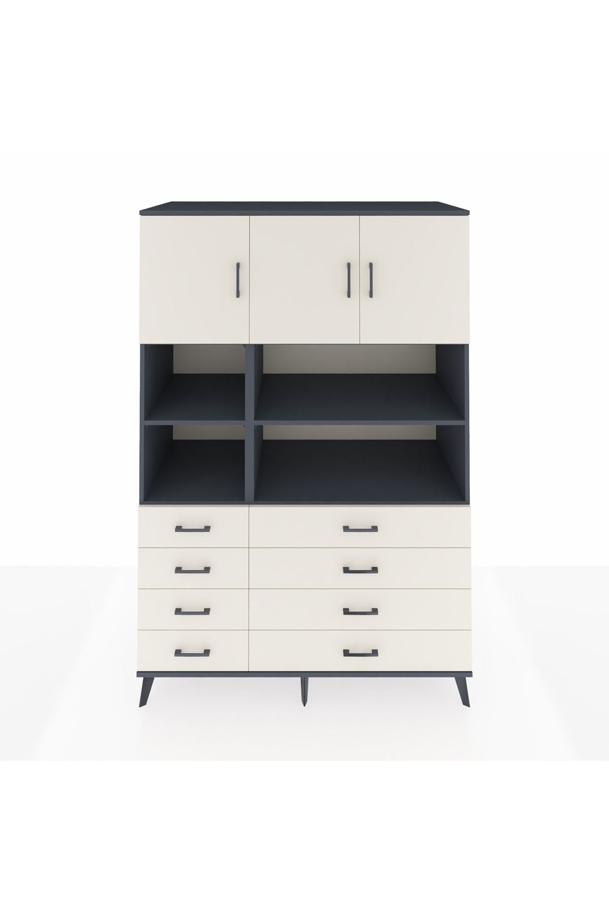 Kronos Dolap 8 Raflı 8 Çekmeceli 3 Kapaklı 132x59x195 Antrasit-Aytaşı/Aytaşı
