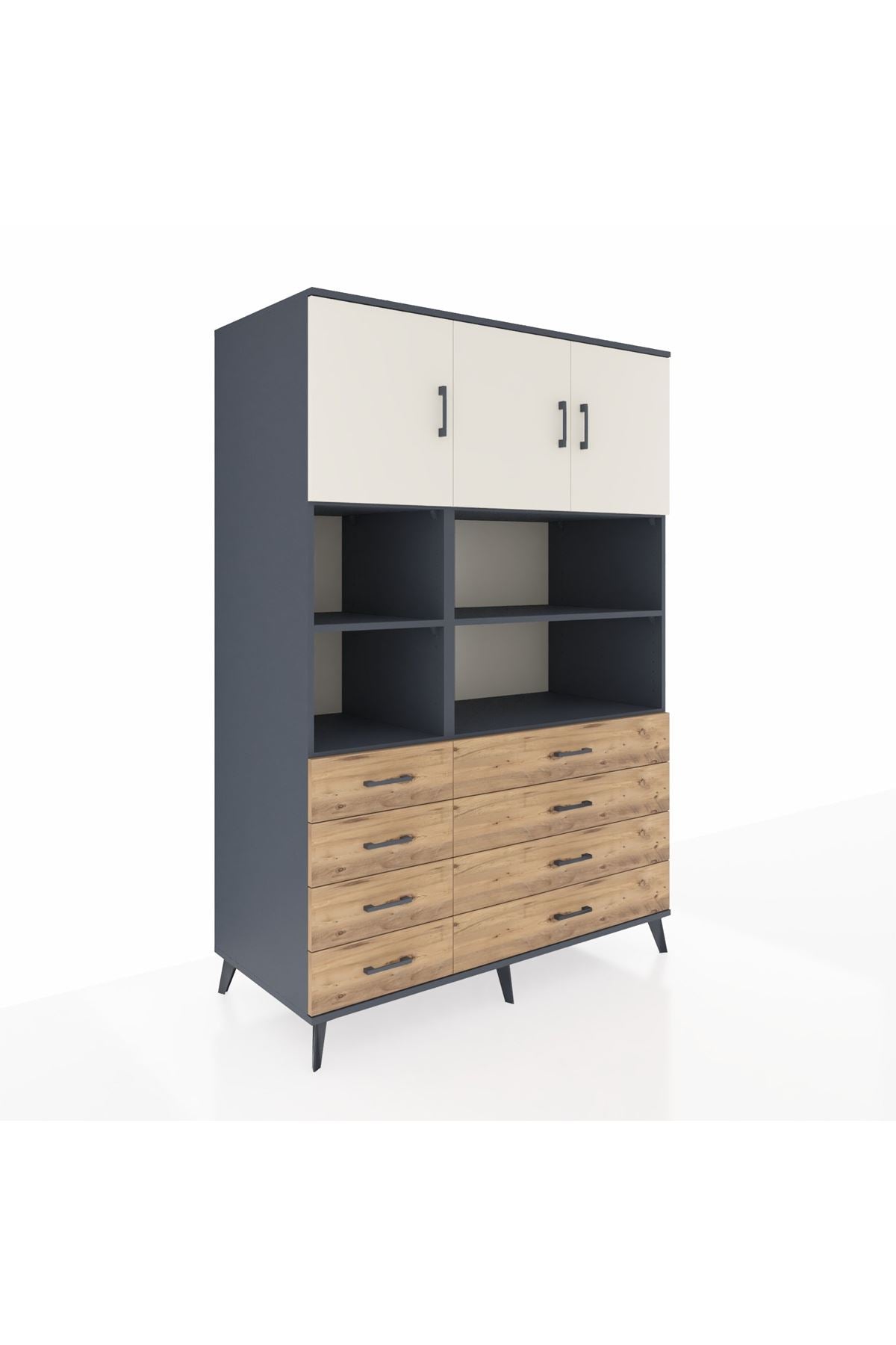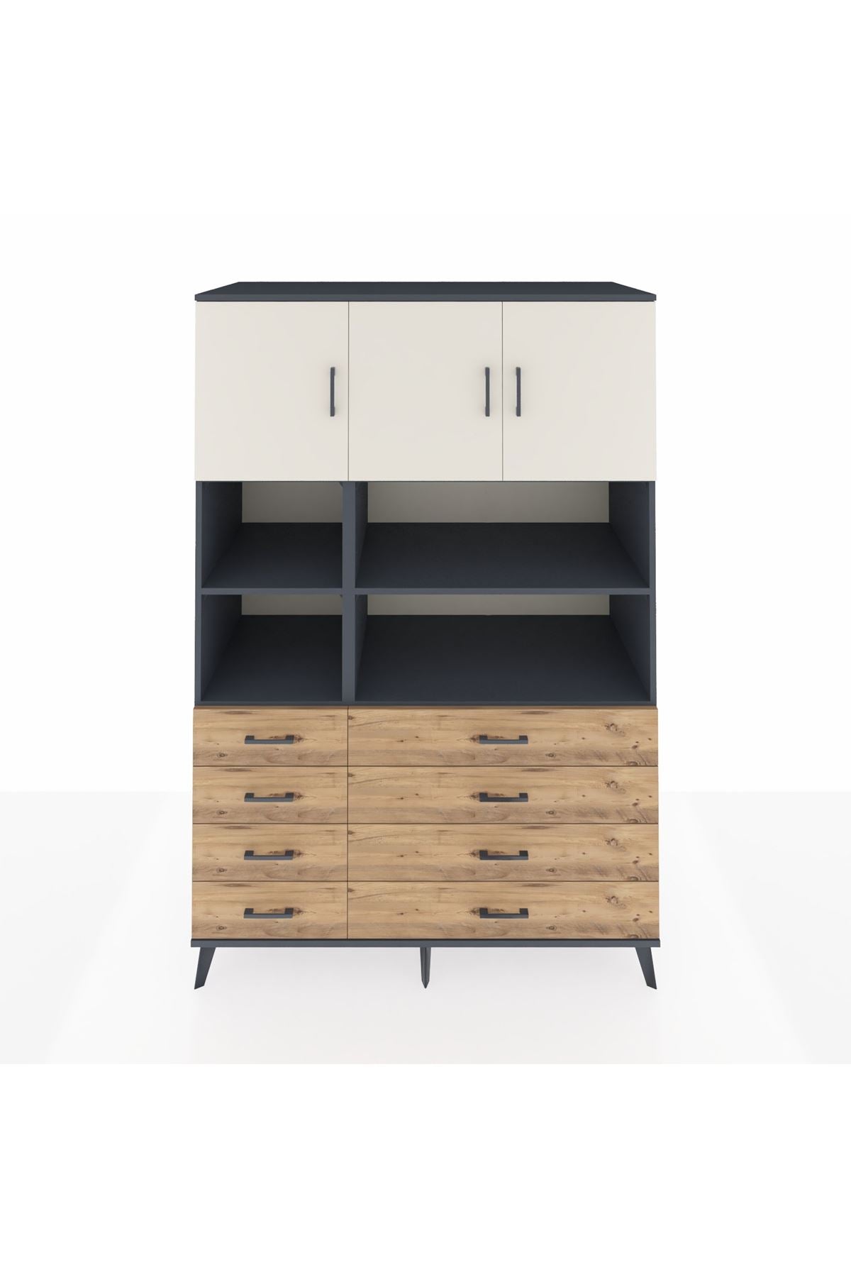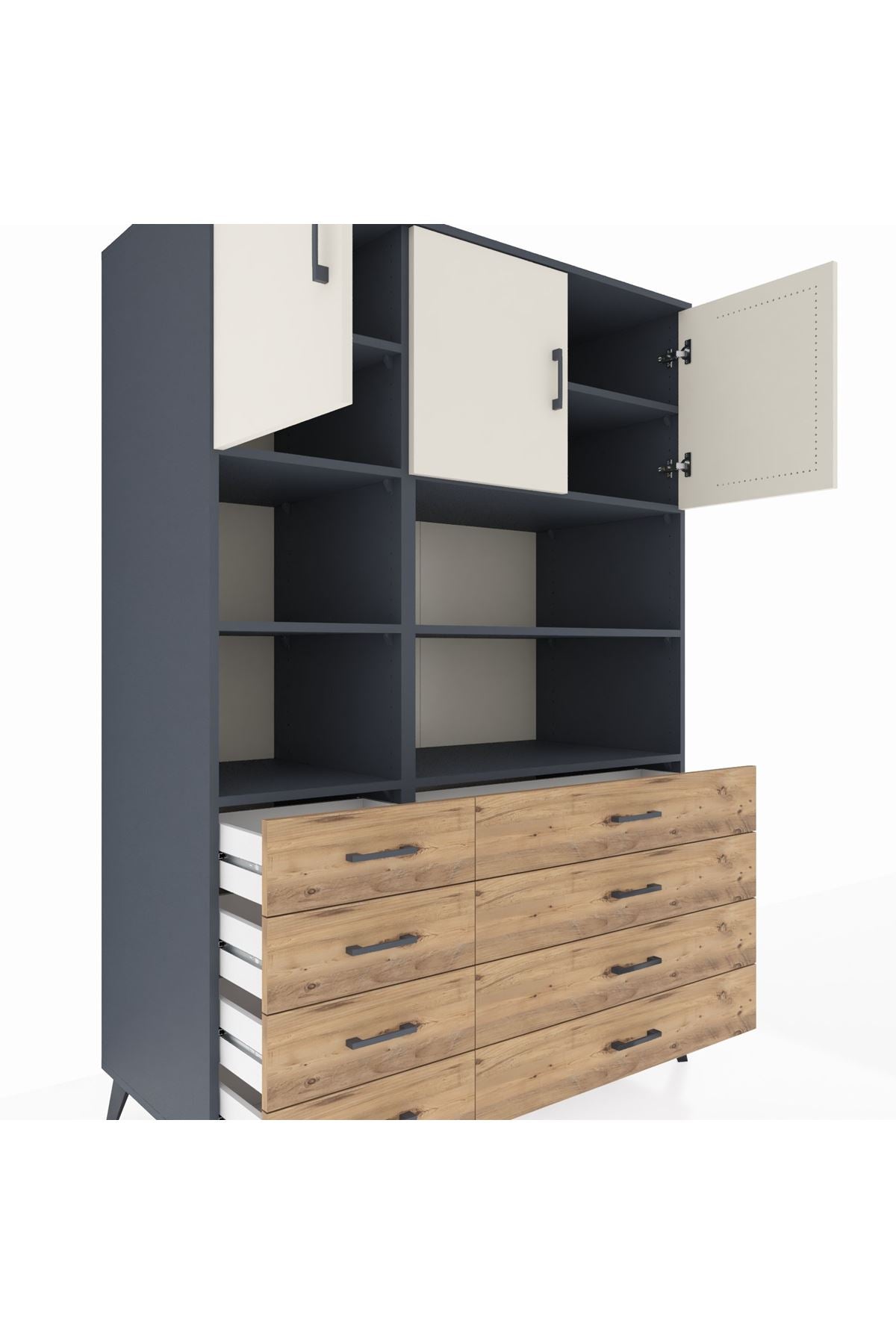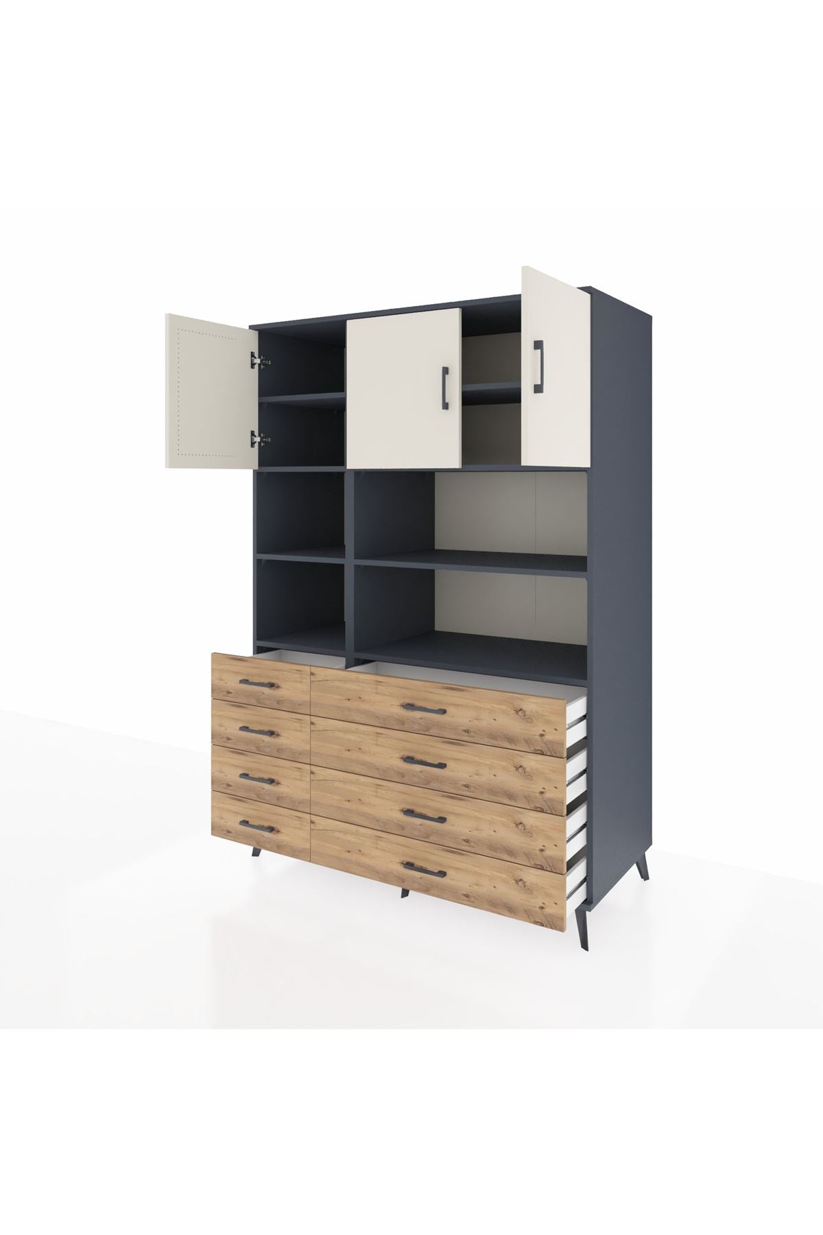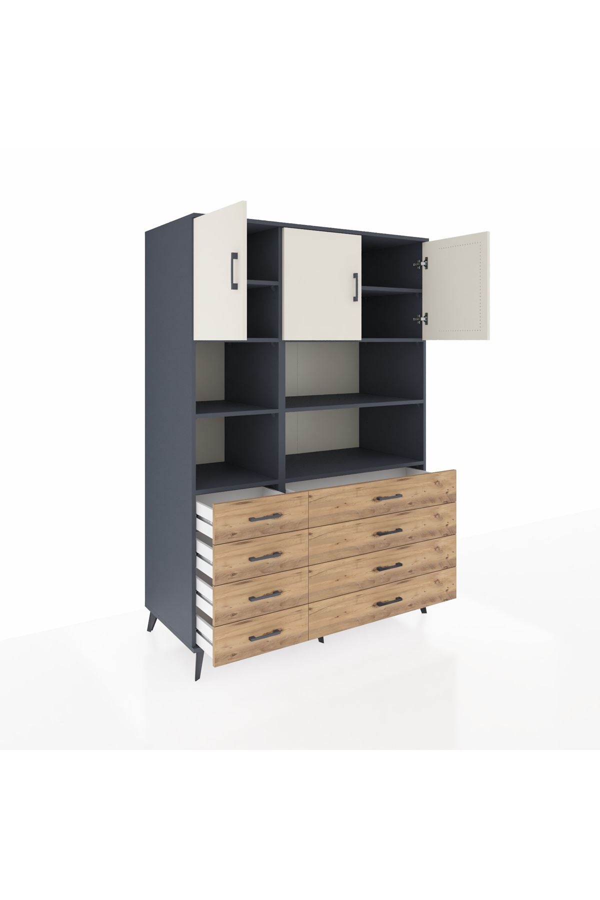 Kronos Dolap 8 Raflı 8 Çekmeceli 3 Kapaklı 132x59x195 Antrasit-Aytaşı/Çam