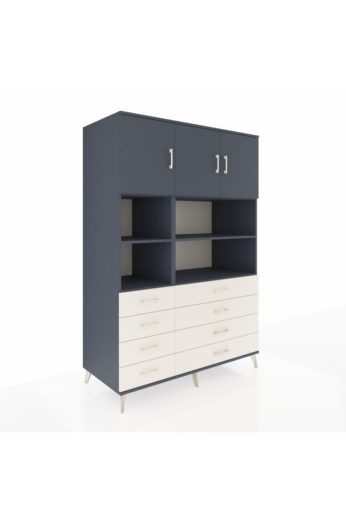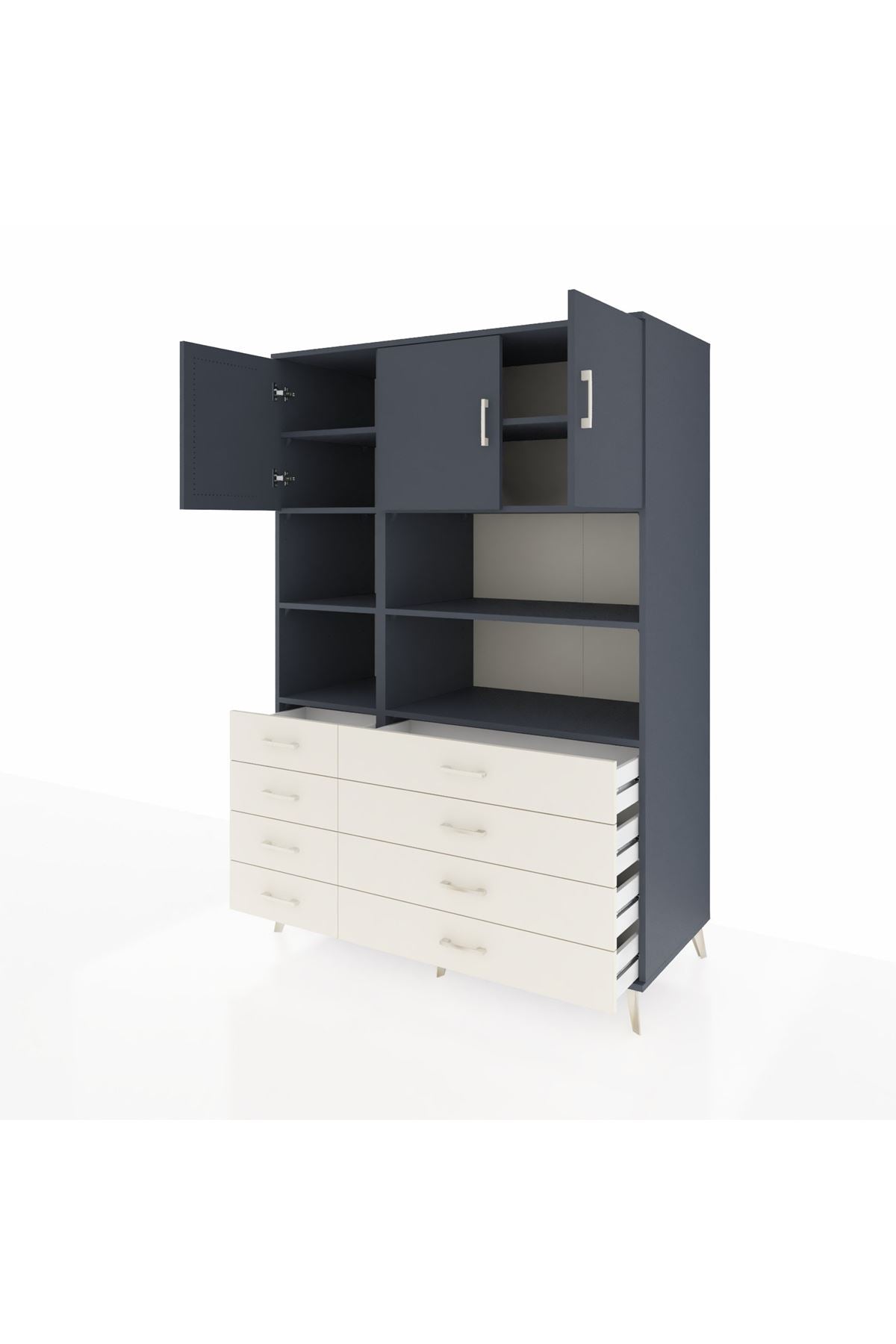 Kronos Dolap 8 Raflı 8 Çekmeceli 3 Kapaklı 132x59x195 Antrasit-Antrasit/Aytaşı