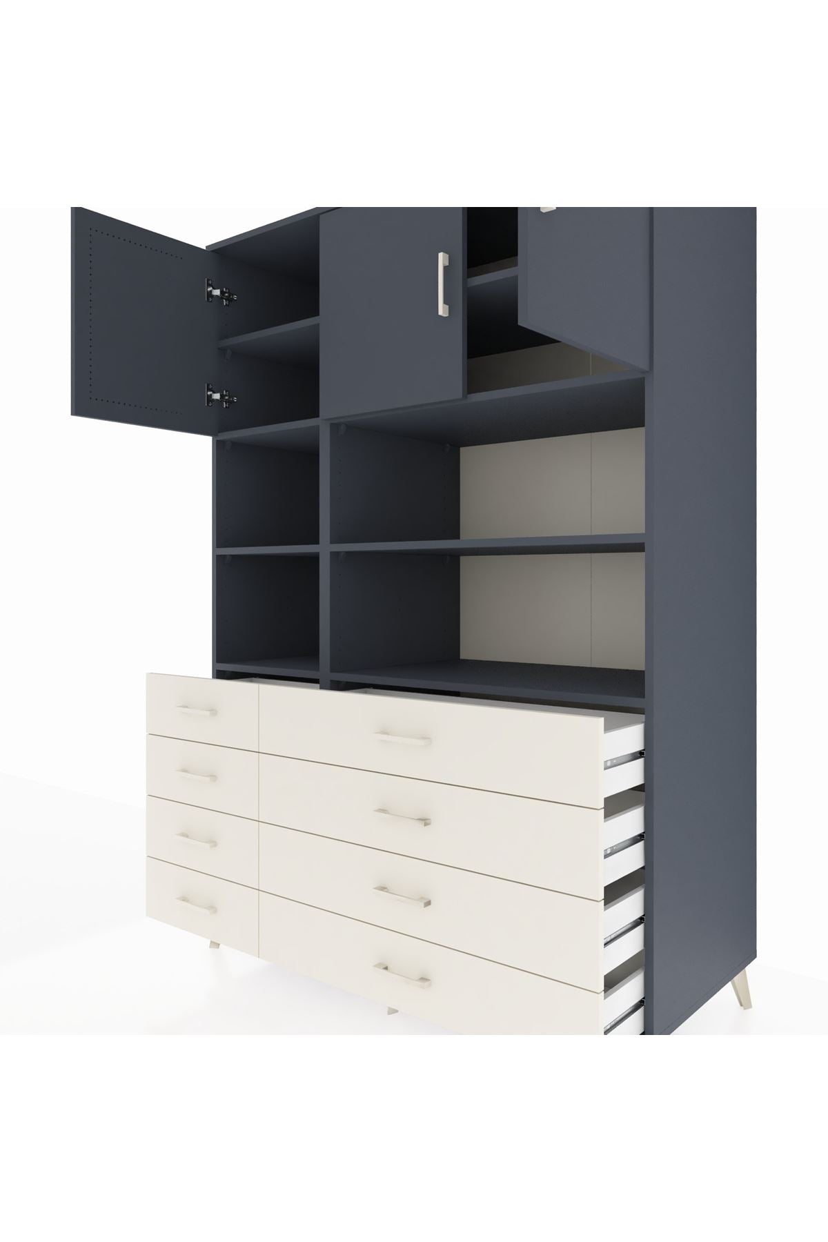 🌟 KRONOS Dolap 8 Raflı 8 Çekmeceli 3 Kapaklı 132x59x195 Antrasit-Antrasit/Aytaşı
