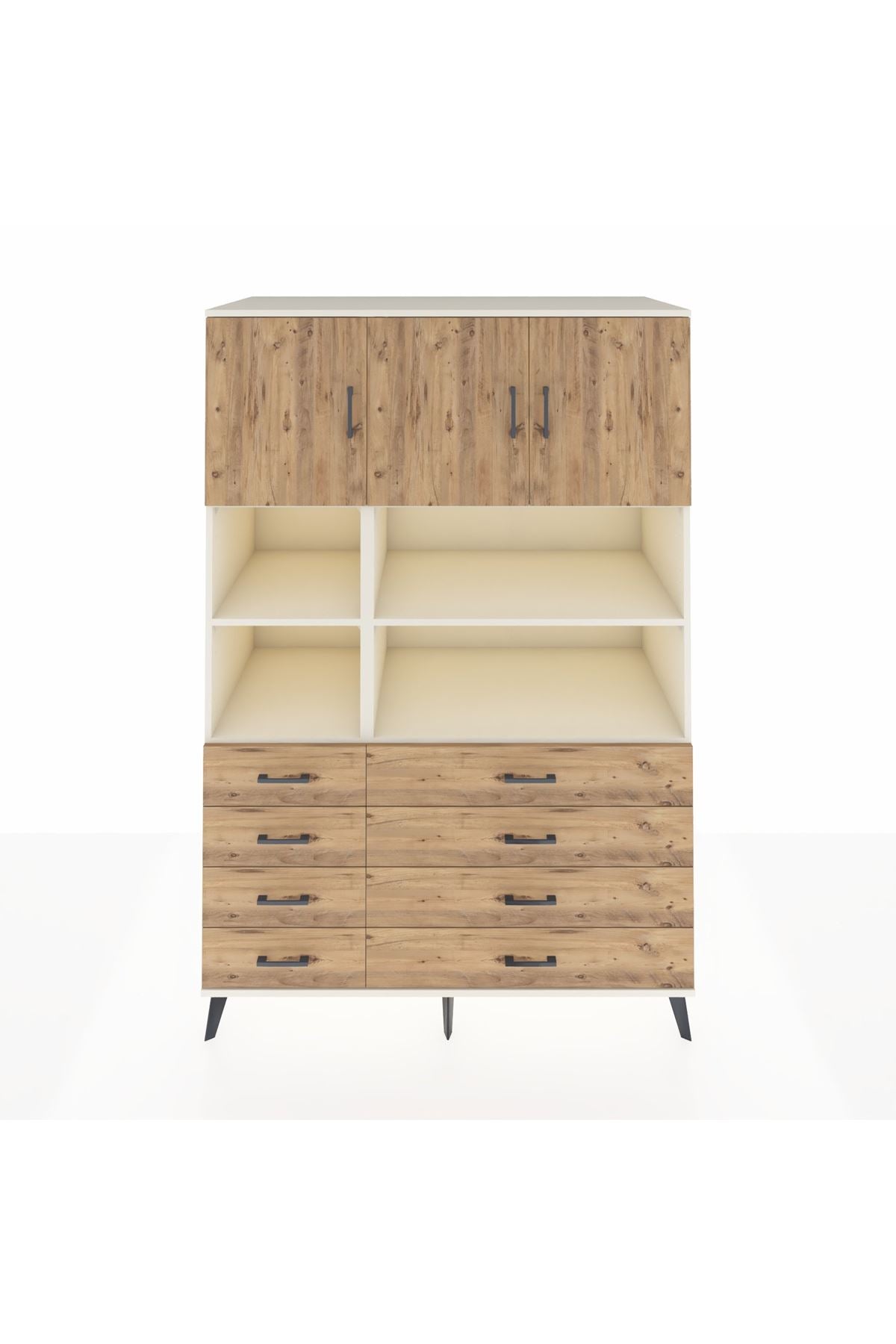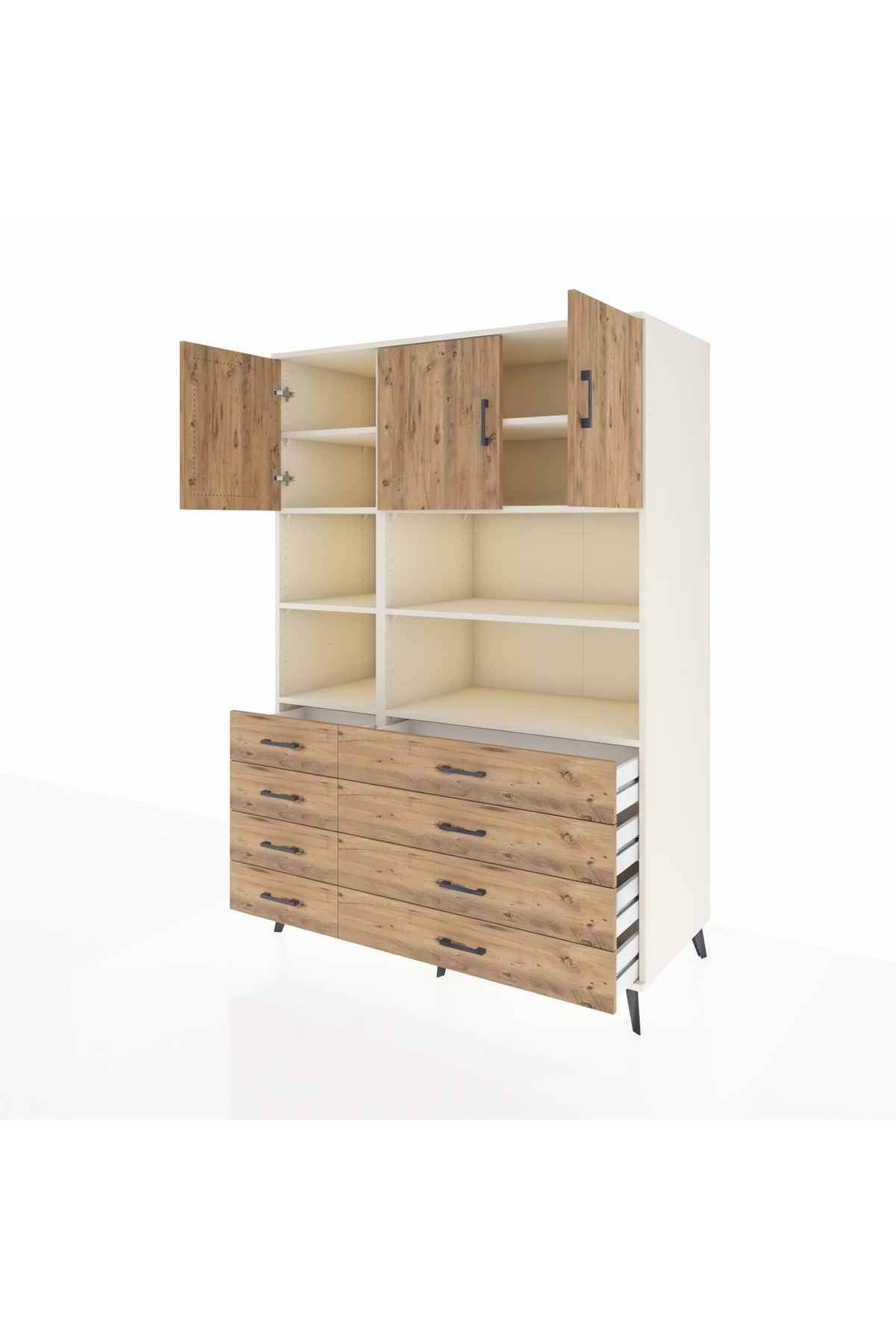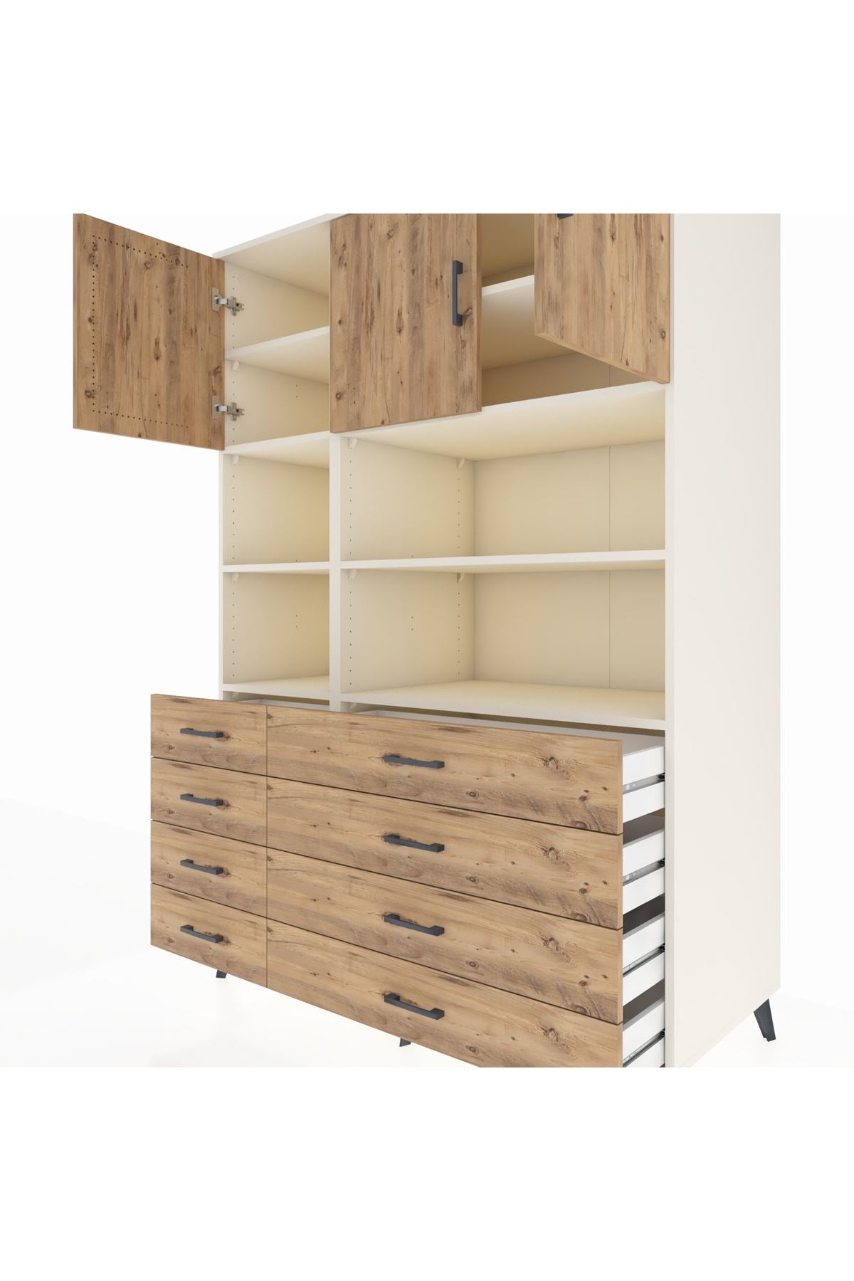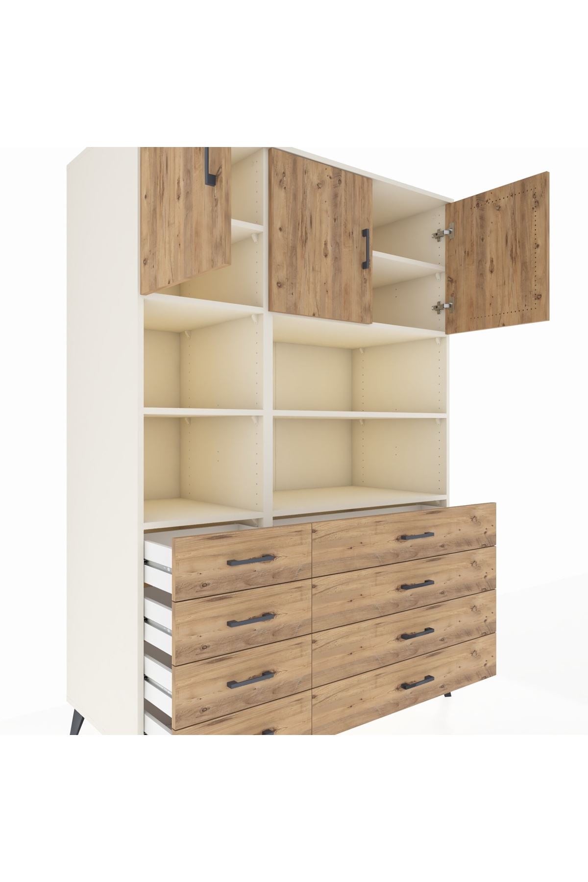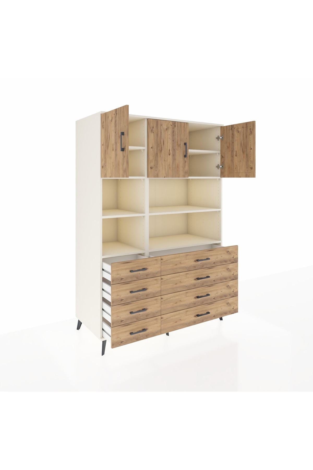 Kronos Dolap 8 Raflı 8 Çekmeceli 3 Kapaklı 132x59x195 Aytaşı-Çam/Çam
