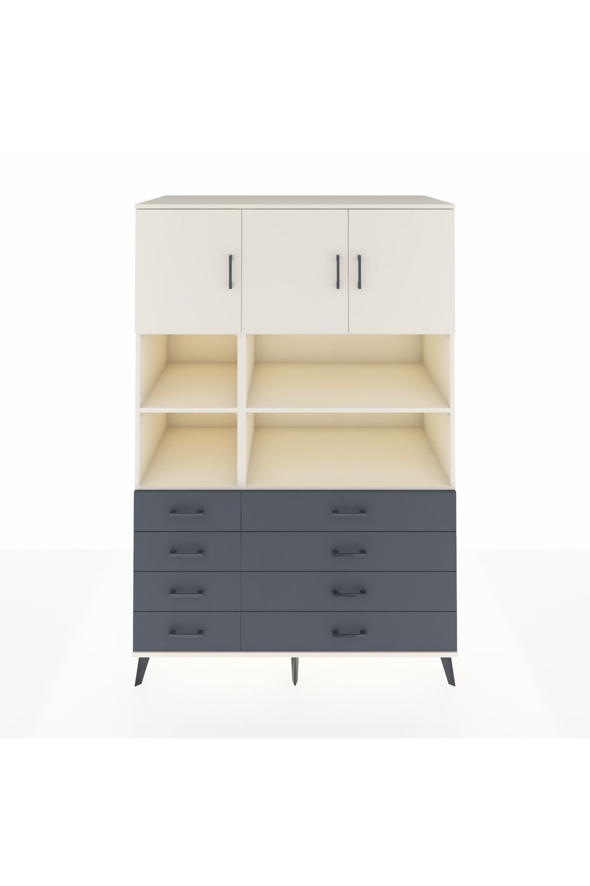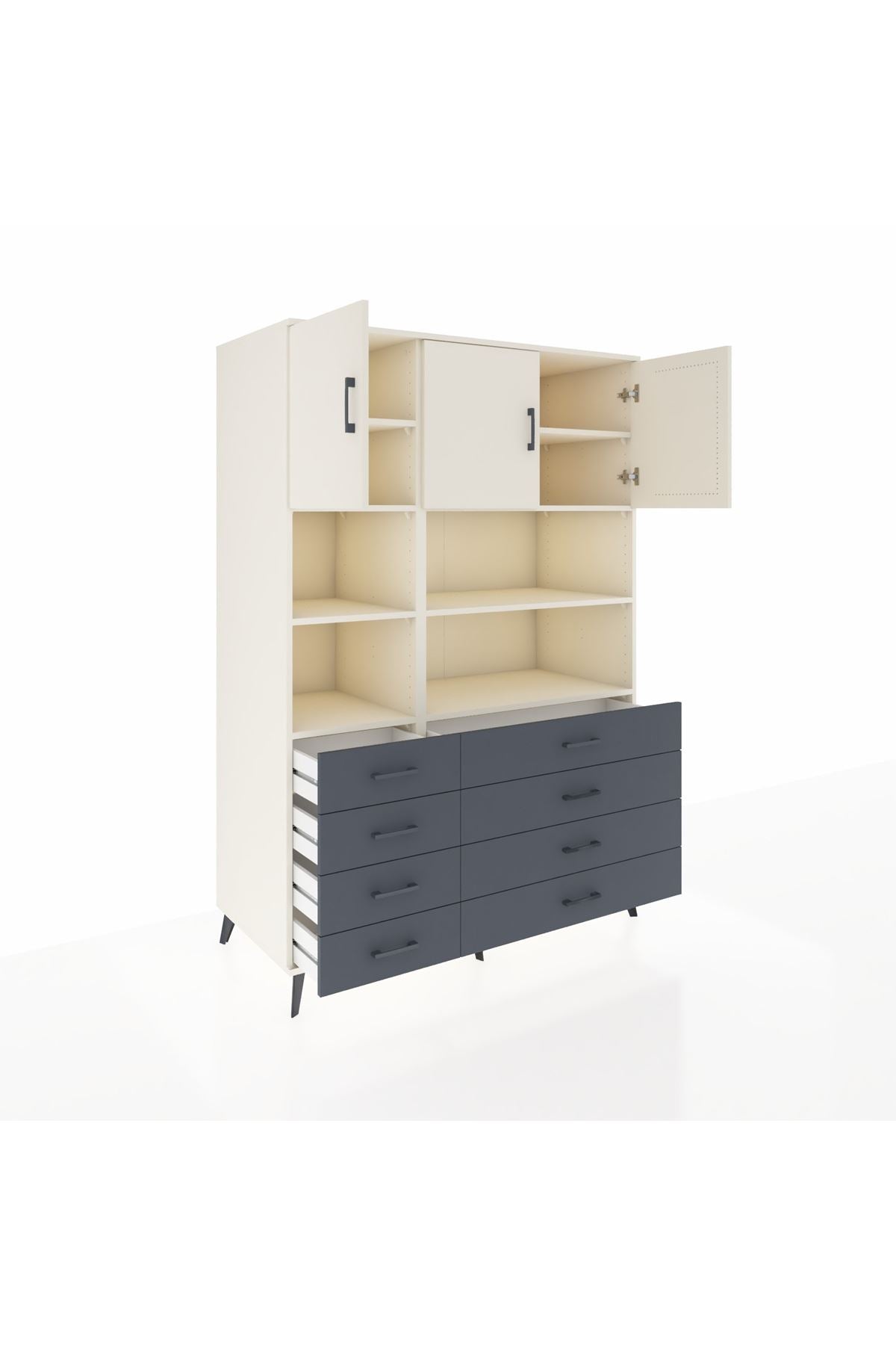 Kronos Dolap 8 Raflı 8 Çekmeceli 3 Kapaklı 132x59x195 Aytaşı-Aytaşı/Antrasit