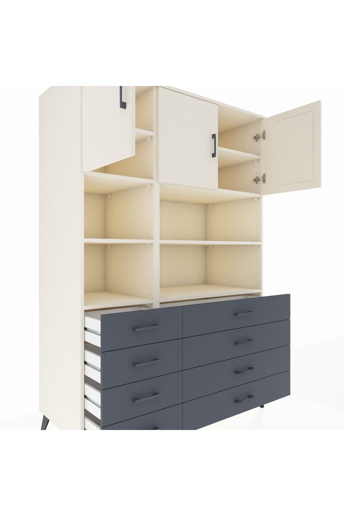 🌟 Kronos Dolap 8 Raflı 8 Çekmeceli 3 Kapaklı 132x59x195 Aytaşı-Aytaşı/Antrasit
