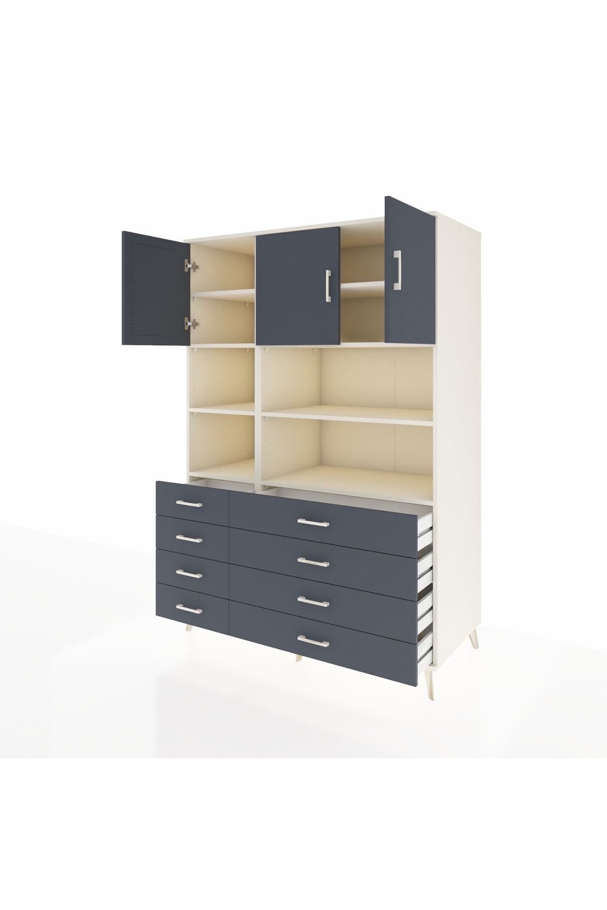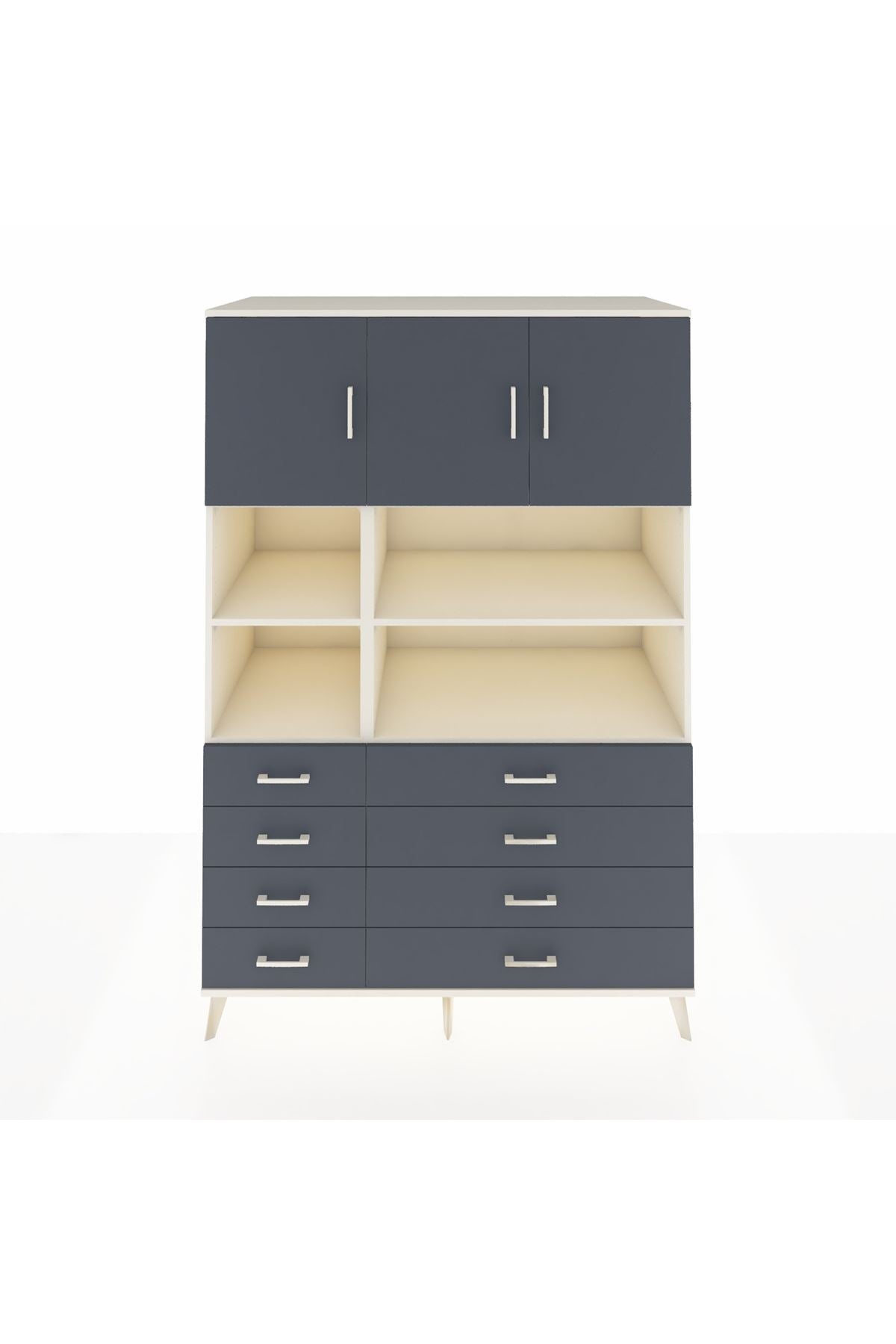 Kronos Dolap 8 Raflı 8 Çekmeceli 3 Kapaklı 132x59x195 Aytaşı-Antrasit/Antrasit