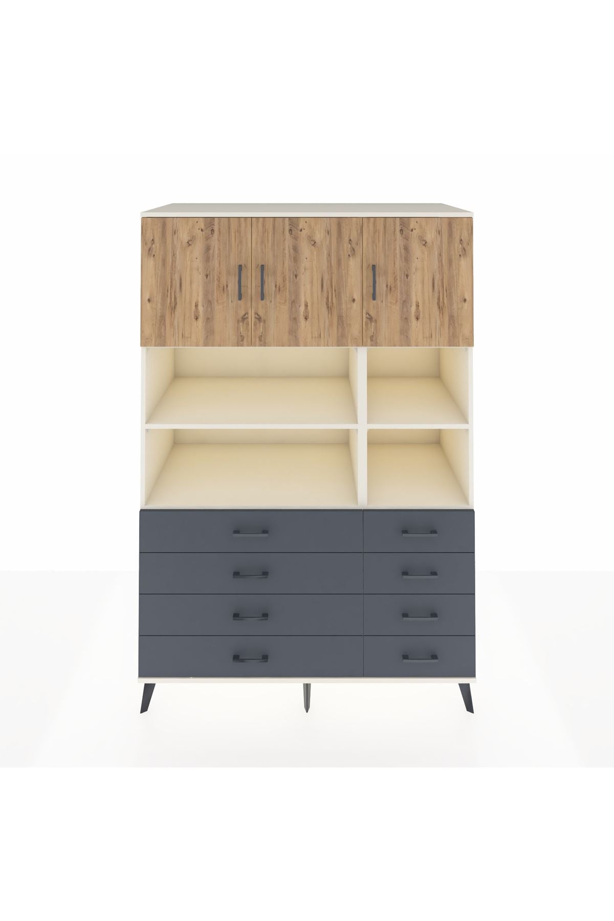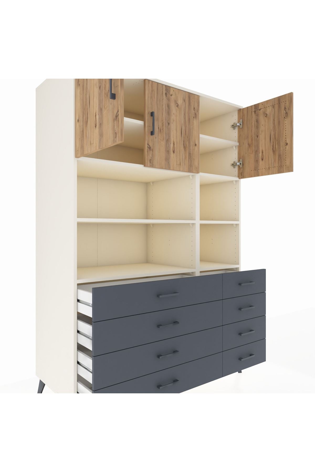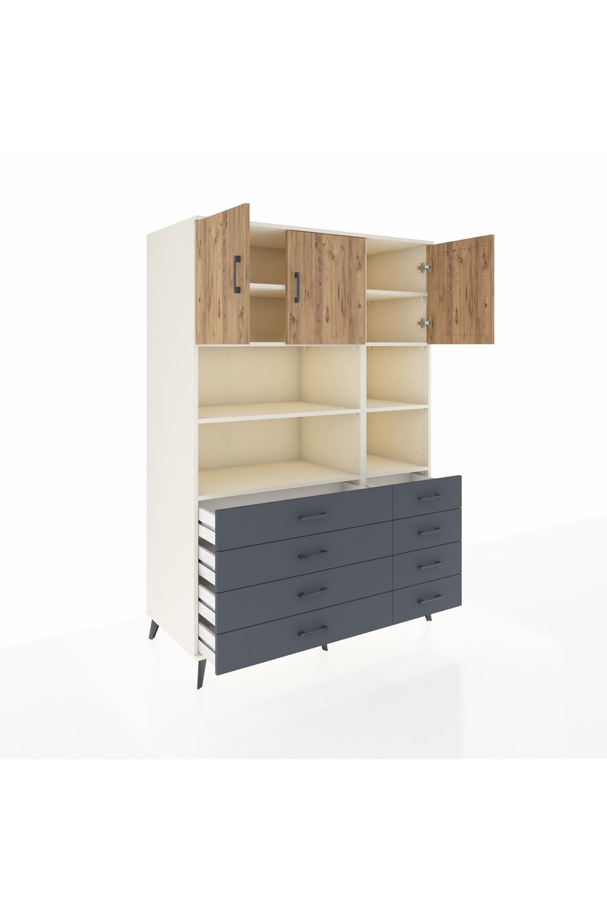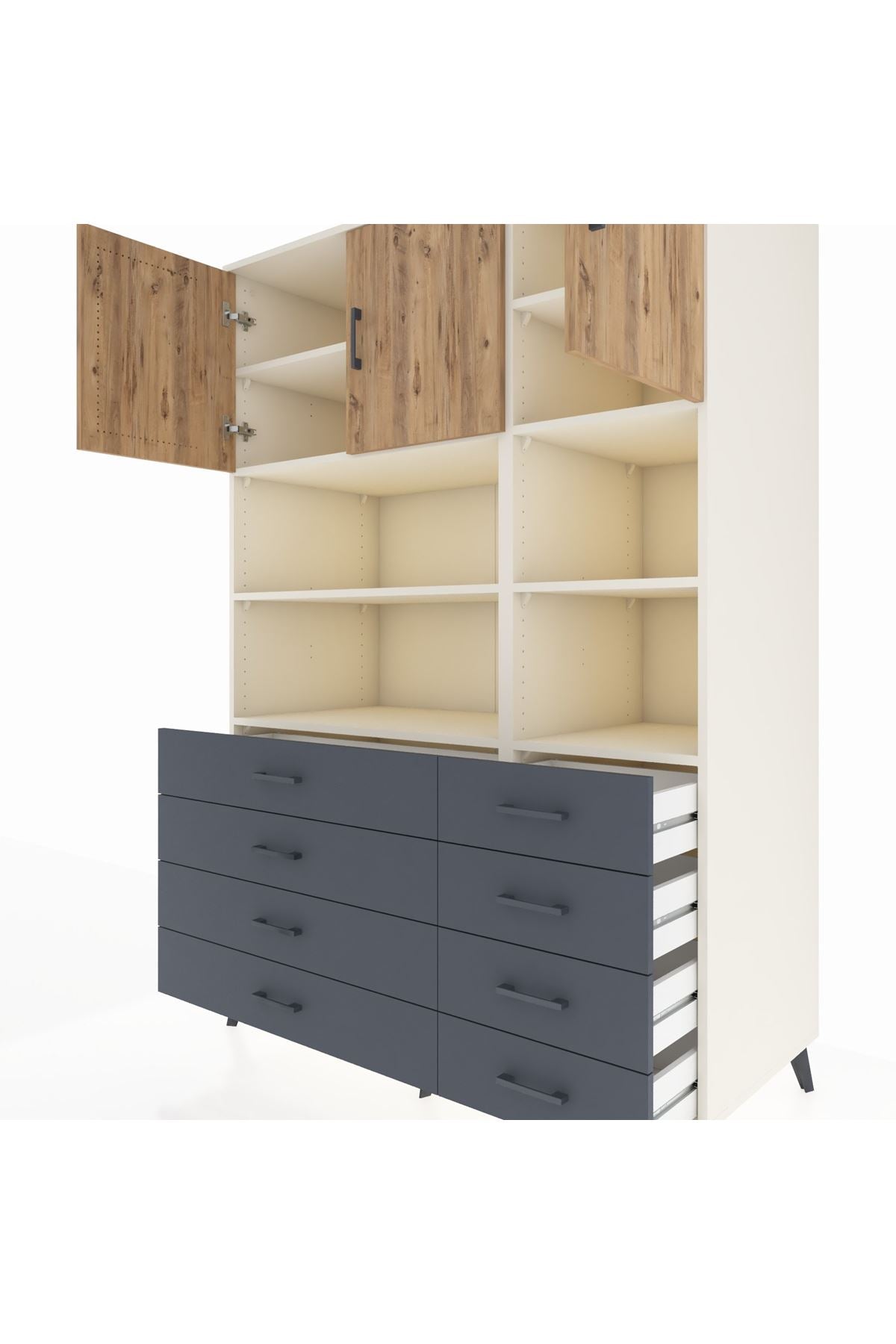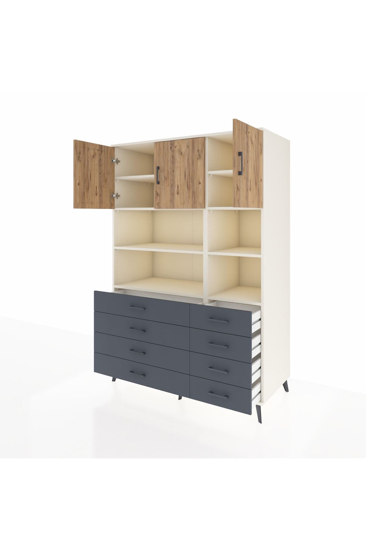 Kronos Dolap 8 Raflı 8 Çekmeceli 3 Kapaklı 132x59x195 Aytaşı-Çam/Antrasit