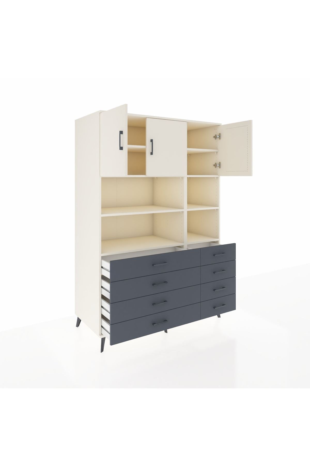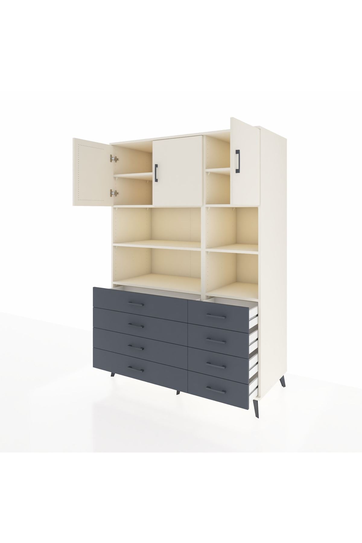 Kronos Dolap 8 Raflı 8 Çekmeceli 3 Kapaklı 132x59x195 Aytaşı-Aytaşı/Antrasit