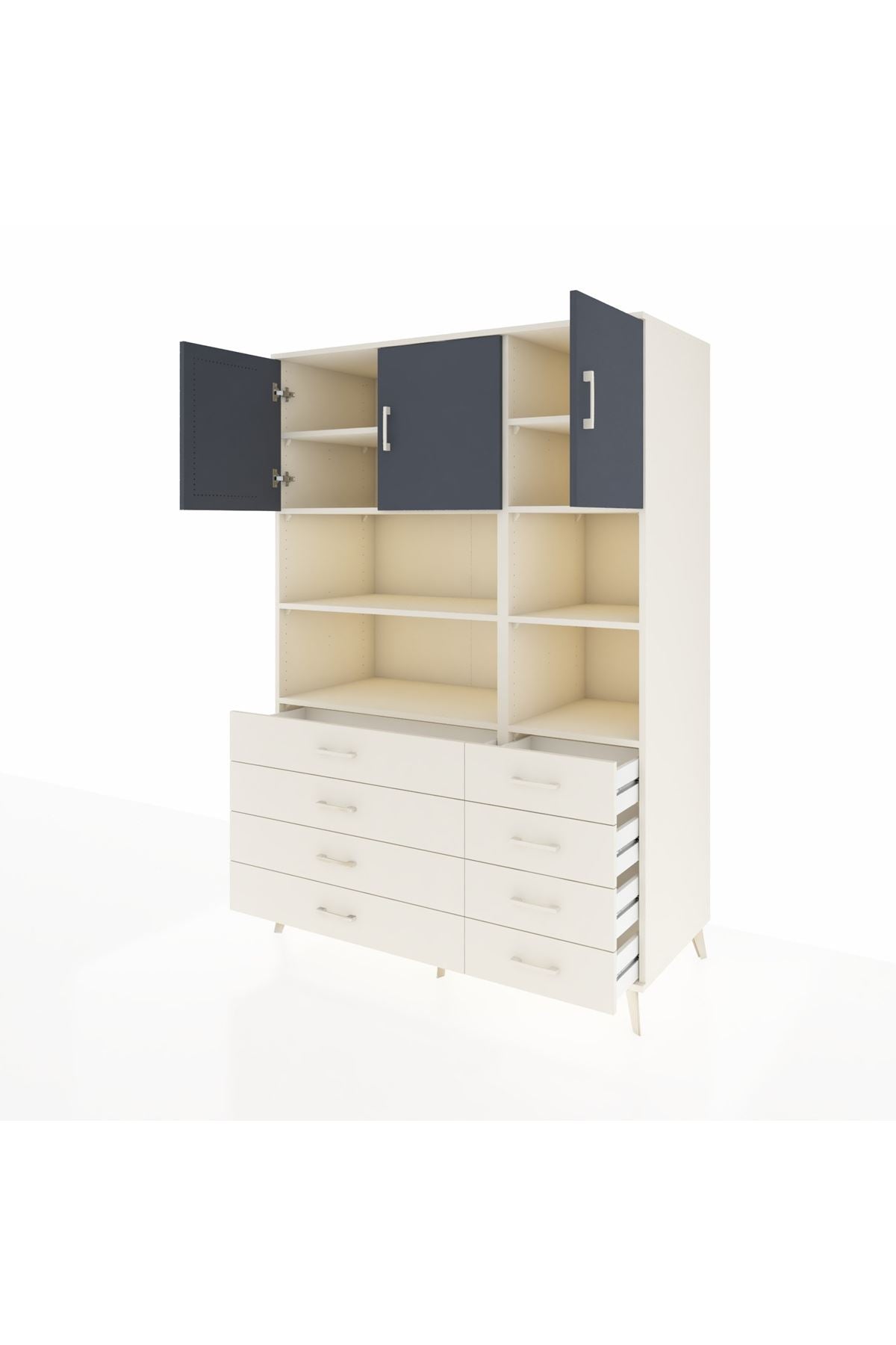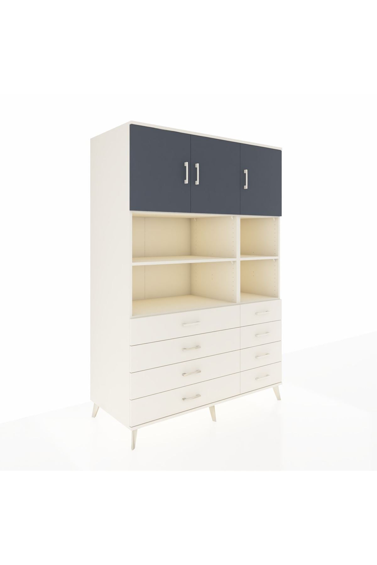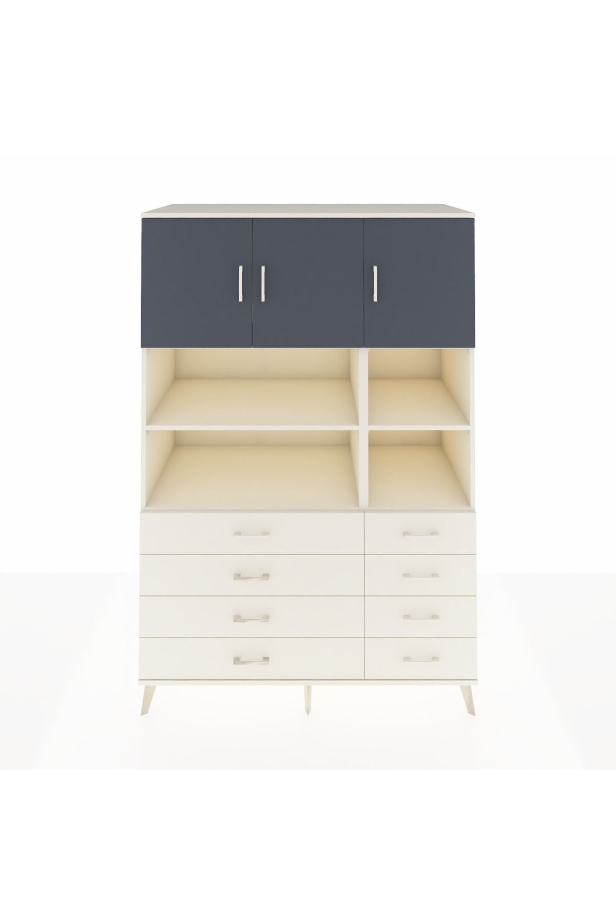 Kronos Dolap 8 Raflı 8 Çekmeceli 3 Kapaklı 132x59x195 Aytaşı-Antrasit/Aytaşı