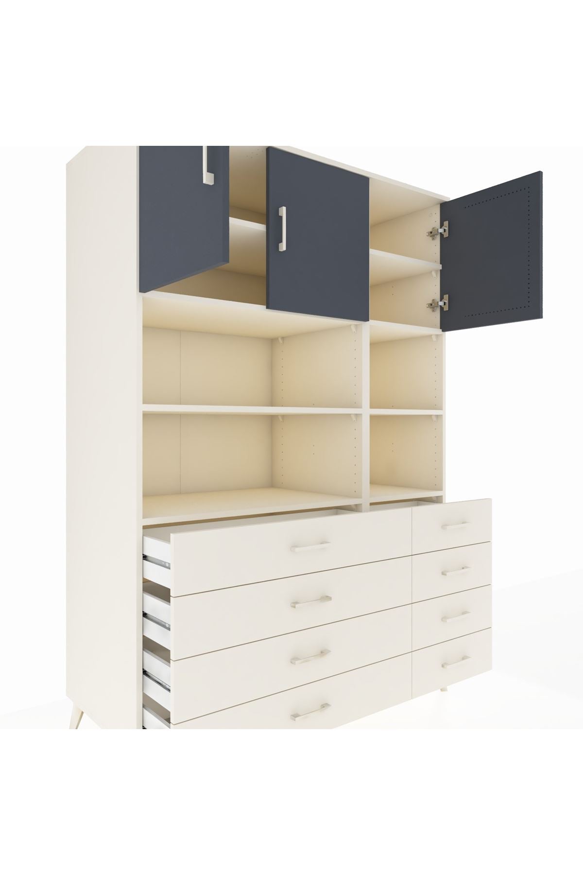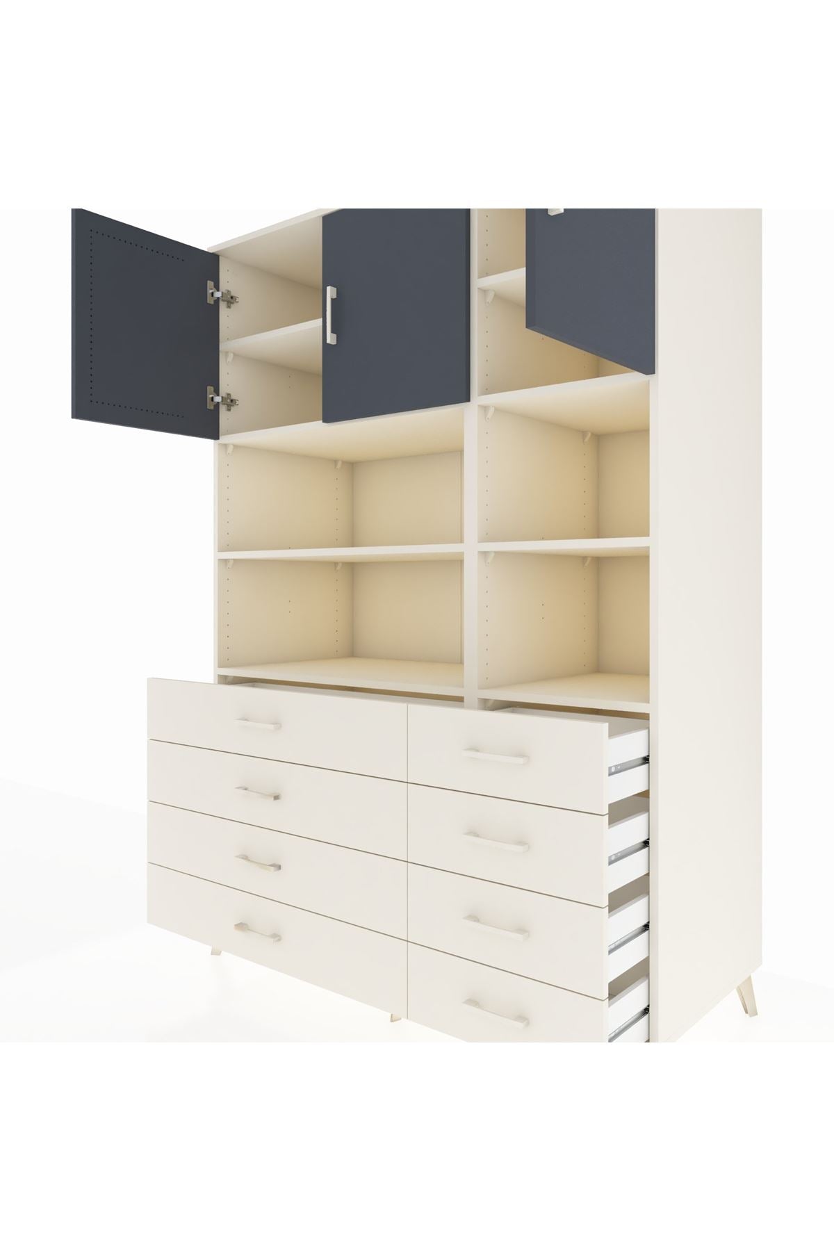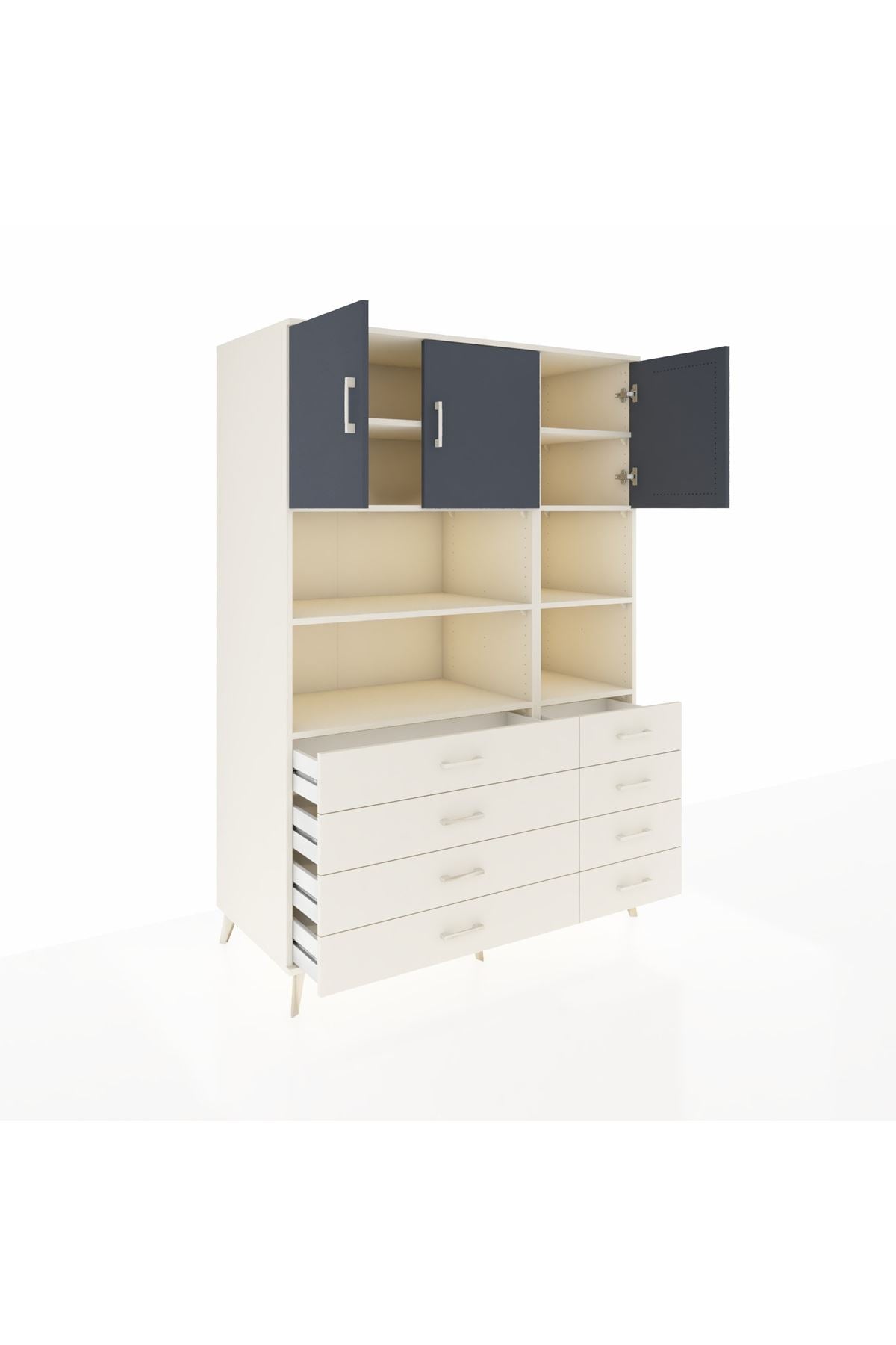 Kronos Dolap 8 Raflı 8 Çekmeceli 3 Kapaklı 132x59x195 Aytaşı-Antrasit/Aytaşı