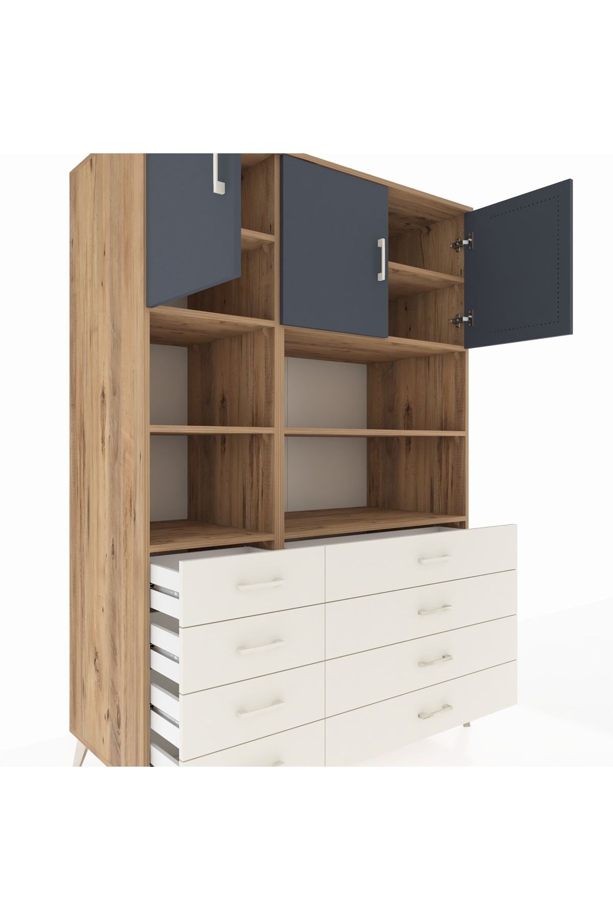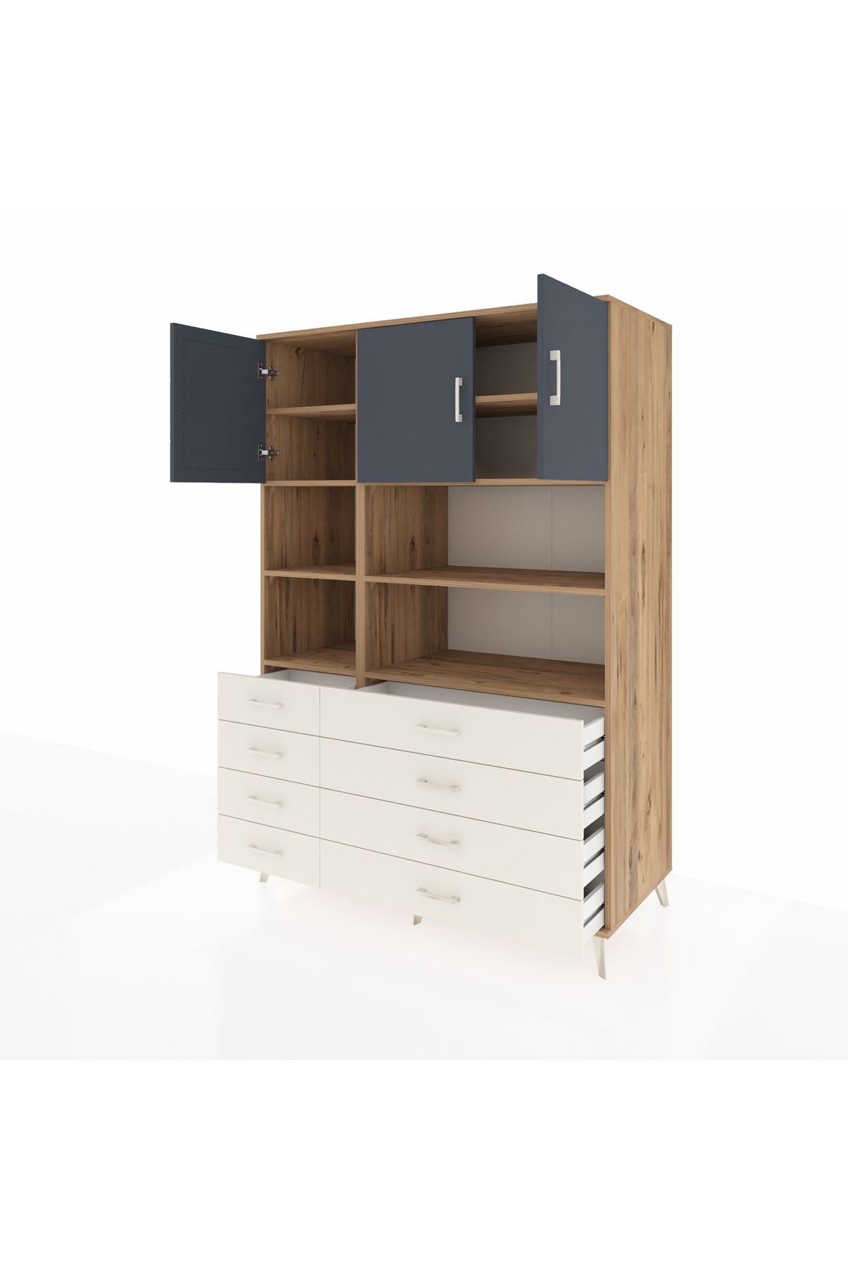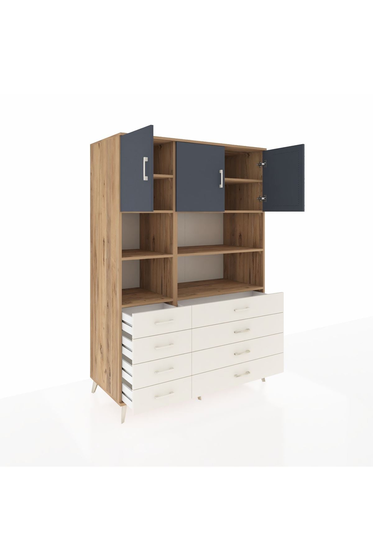 Kronos Dolap 8 Raflı 8 Çekmeceli 3 Kapaklı 132x59x195 Çam-Antrasit/Aytaşı