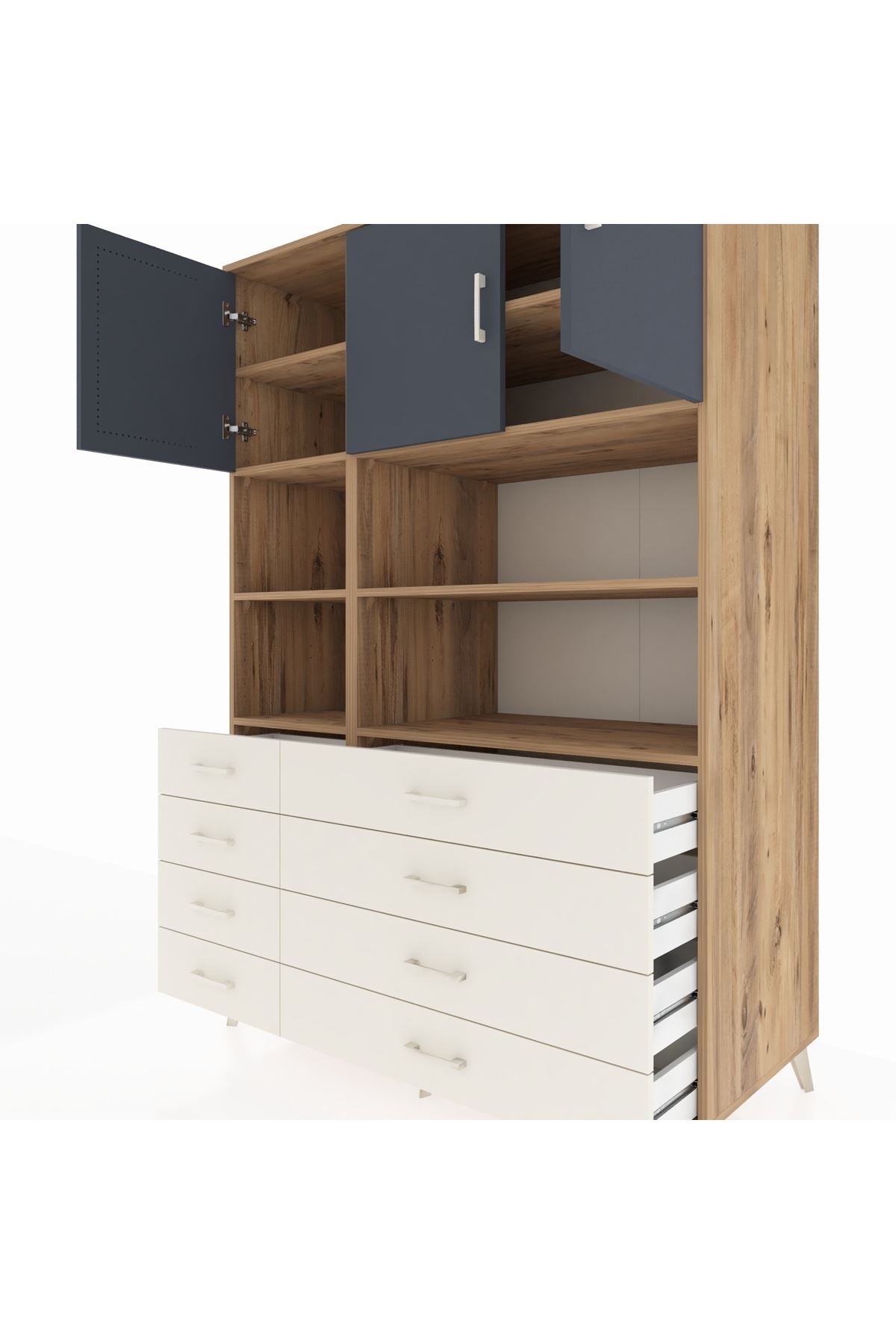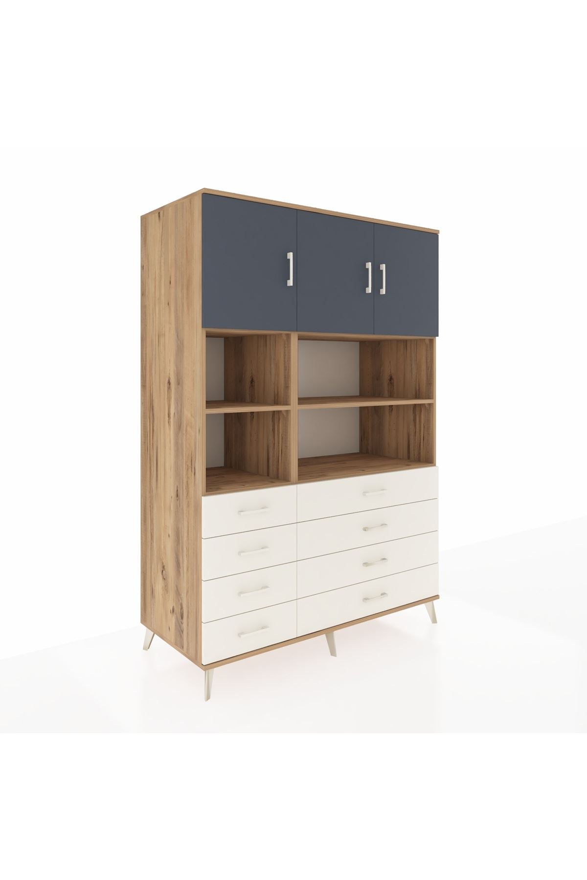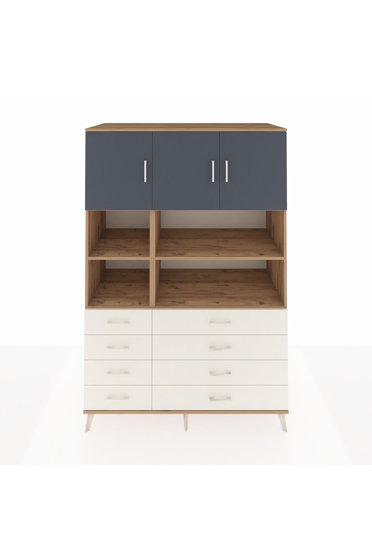 Kronos Dolap 8 Raflı 8 Çekmeceli 3 Kapaklı 132x59x195 Çam-Antrasit/Aytaşı