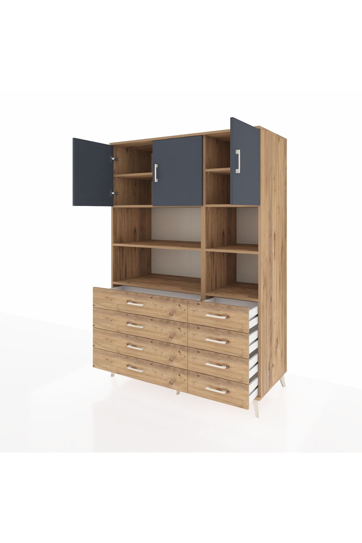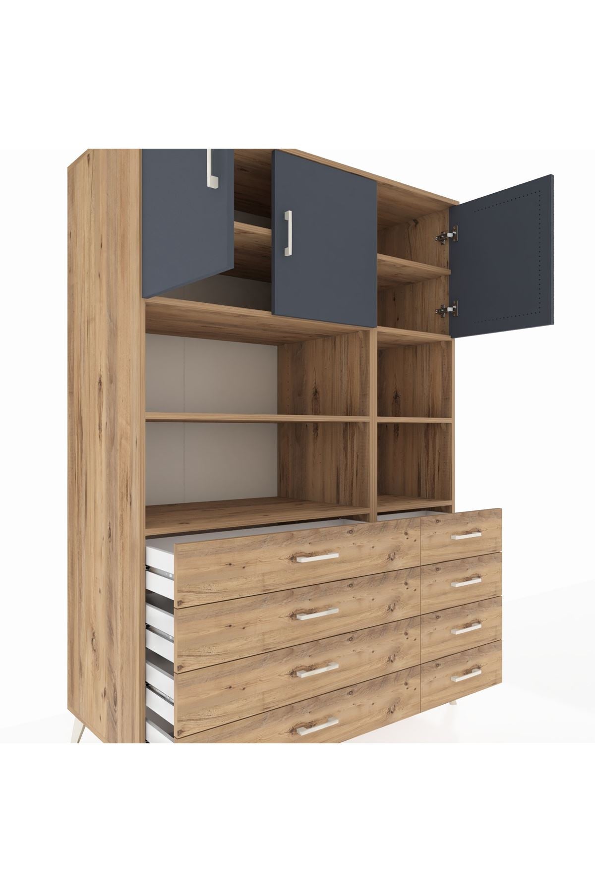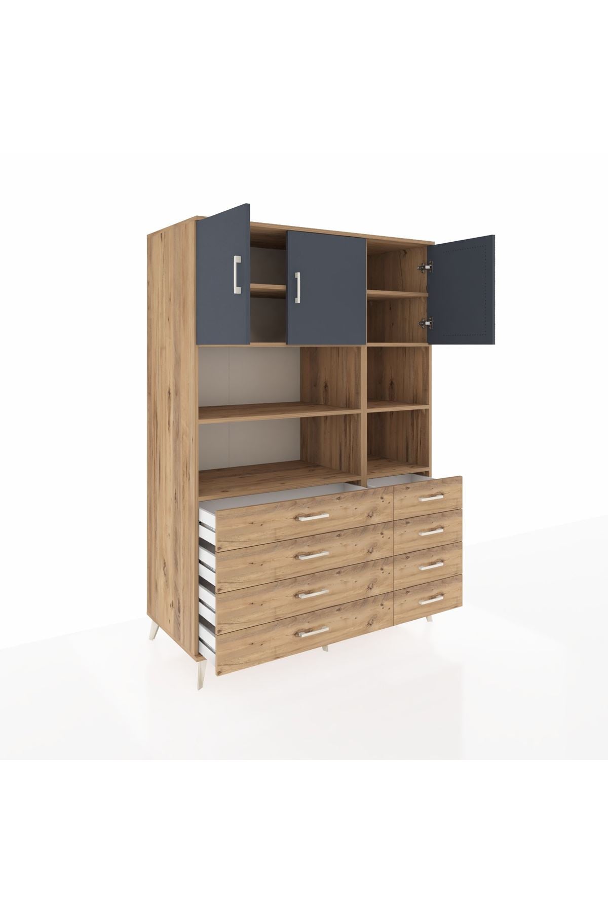 Kronos Dolap 8 Raflı 8 Çekmeceli 3 Kapaklı 132x59x195 Çam-Antrasit/Çam