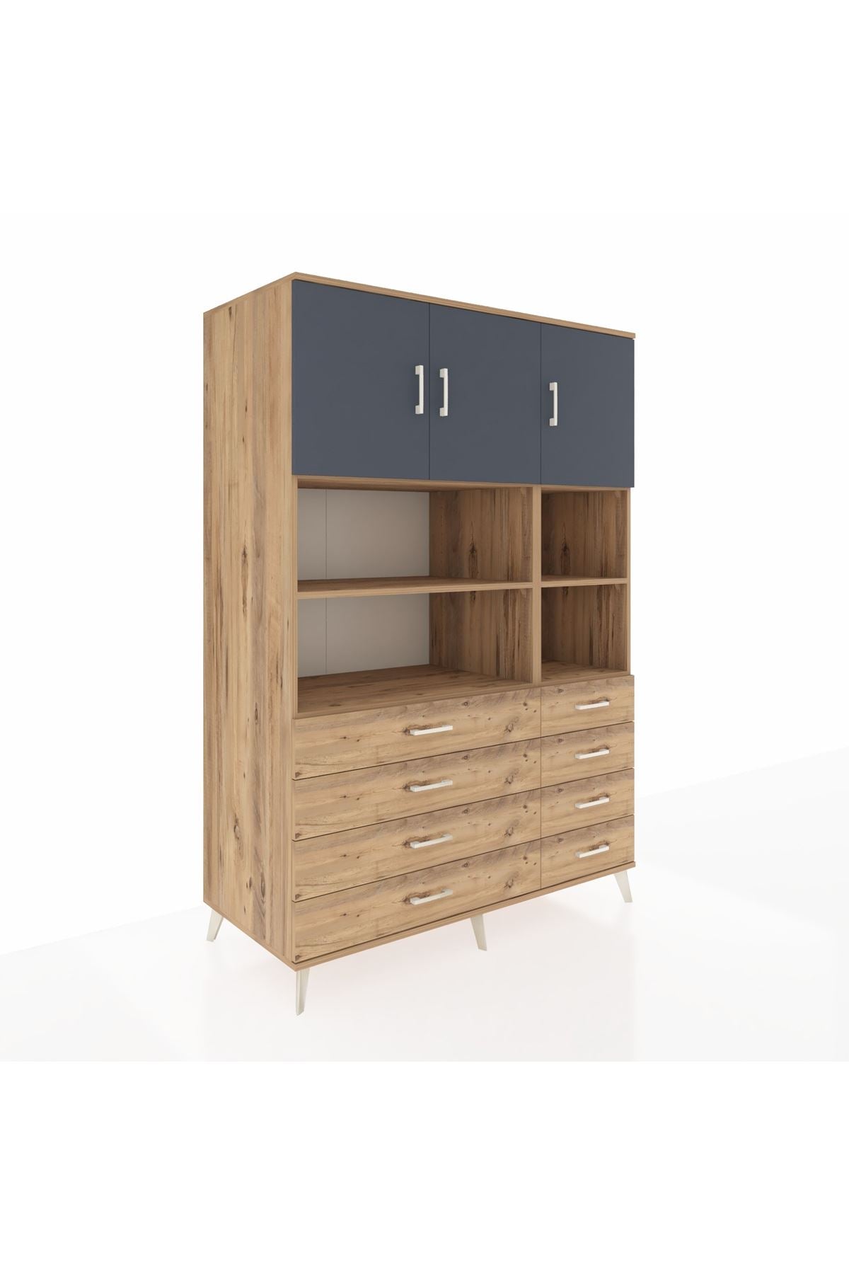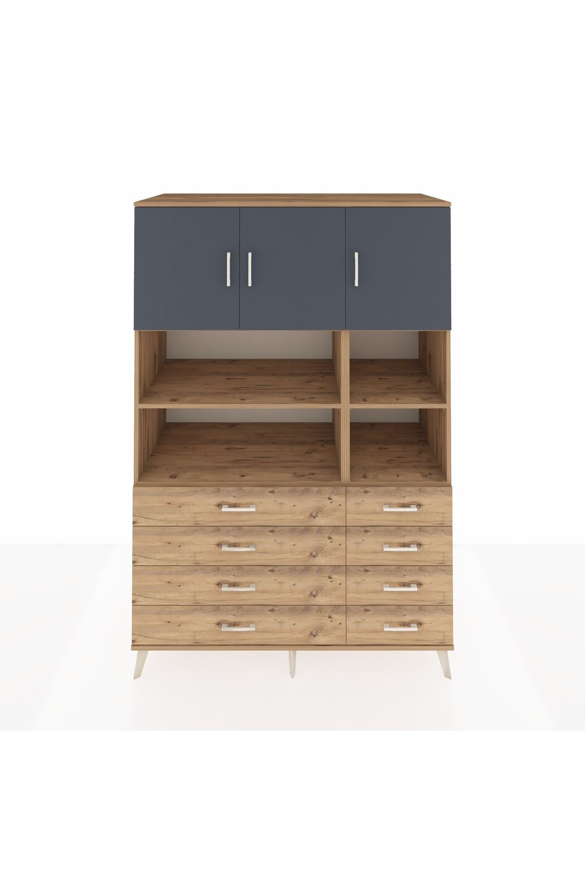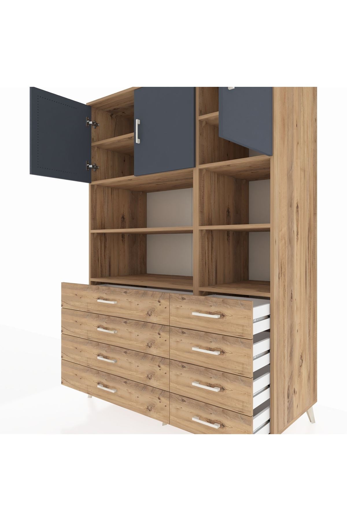 Kronos Dolap 8 Raflı 8 Çekmeceli 3 Kapaklı 132x59x195 Çam-Antrasit/Çam