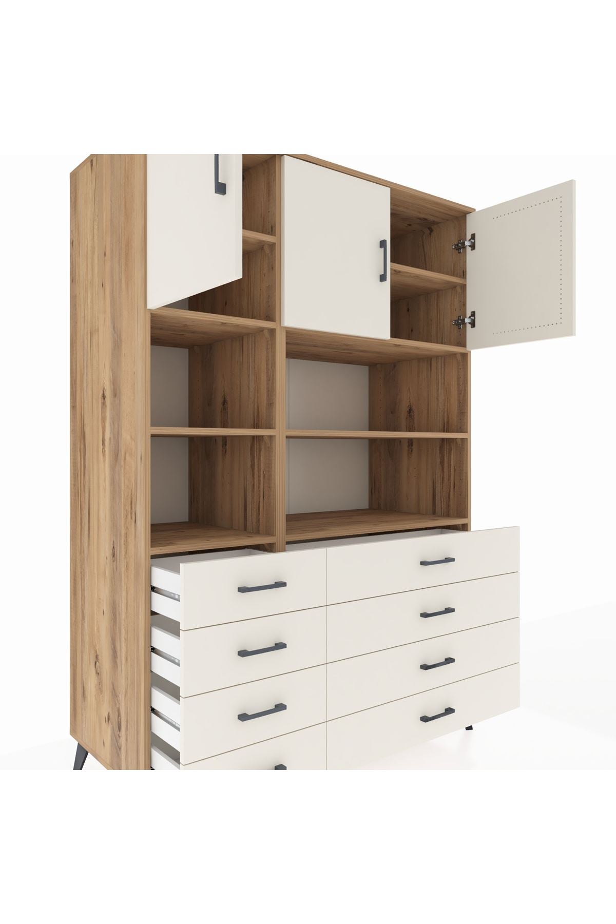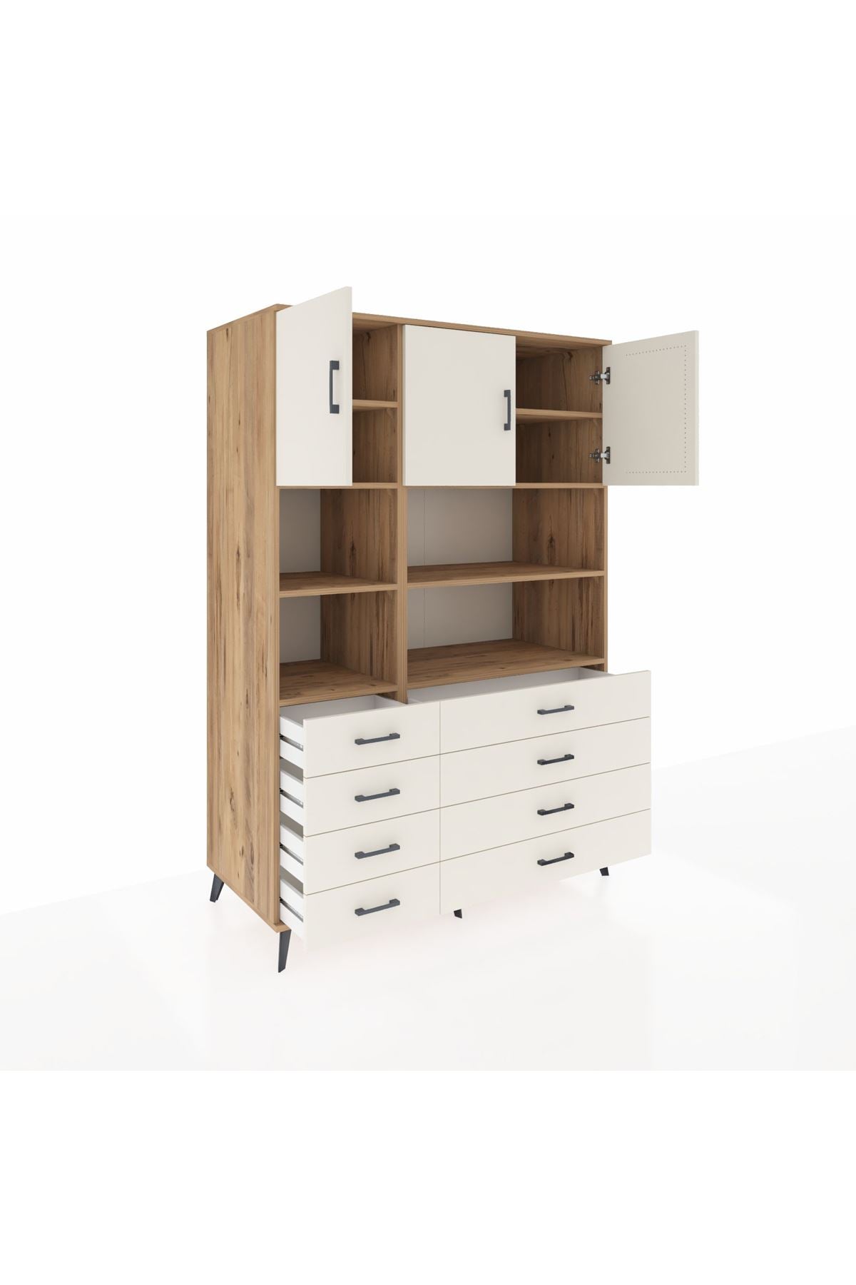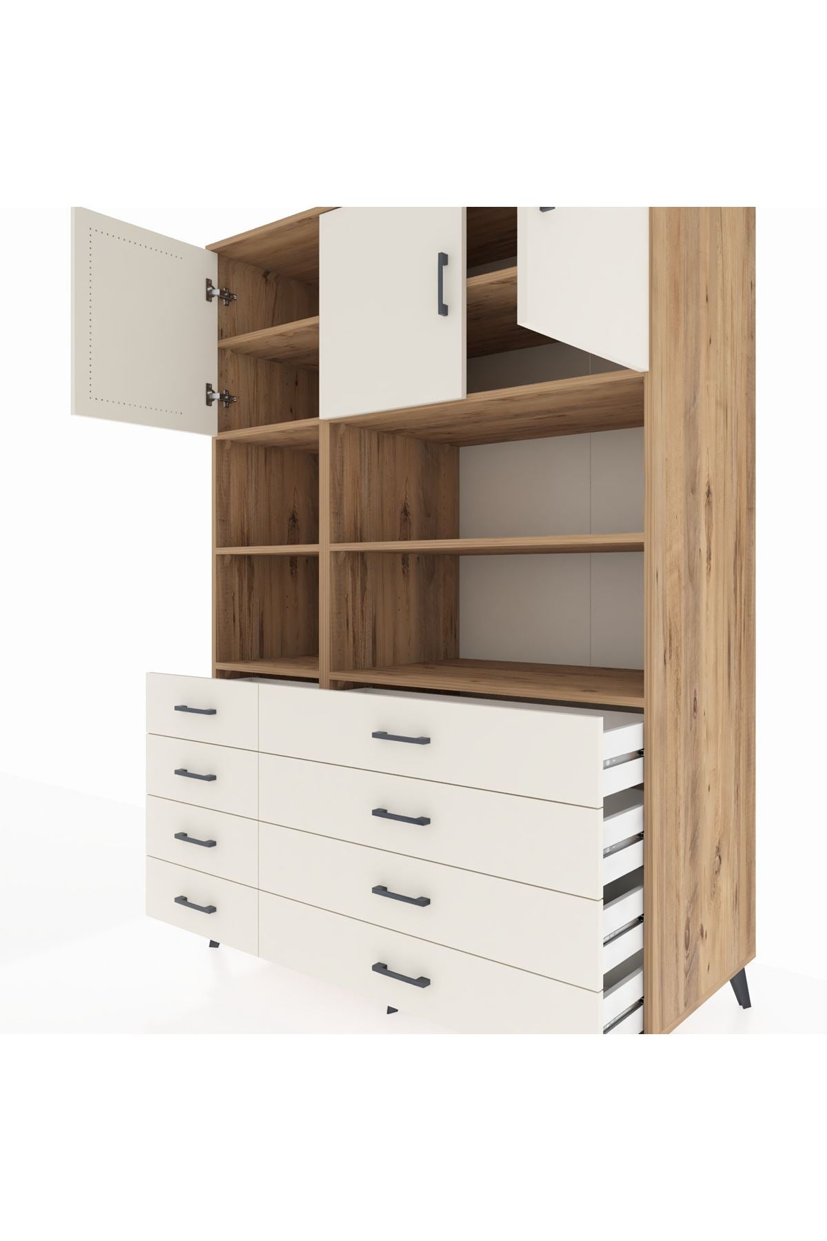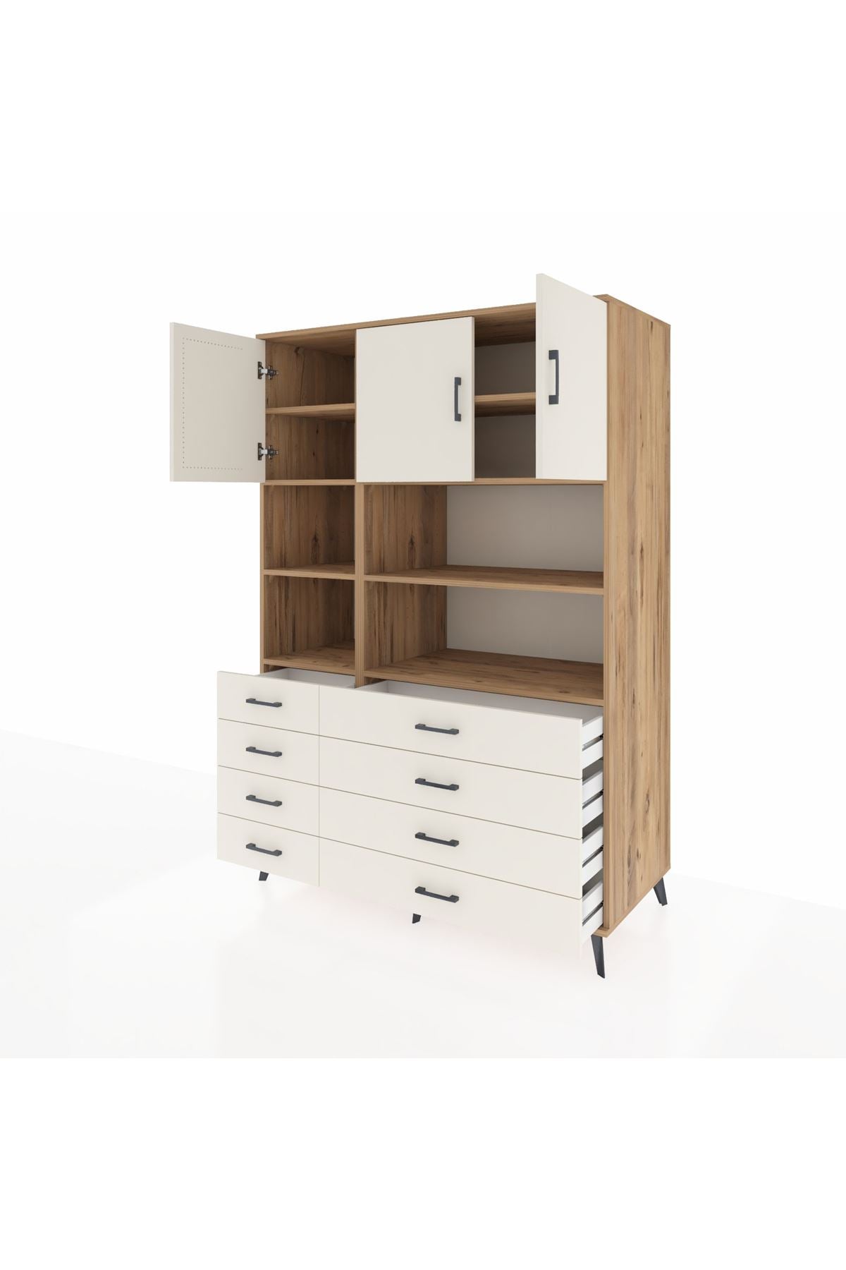 Kronos Dolap 8 Raflı 8 Çekmeceli 3 Kapaklı 132x59x195 Çam-Aytaşı/Aytaşı