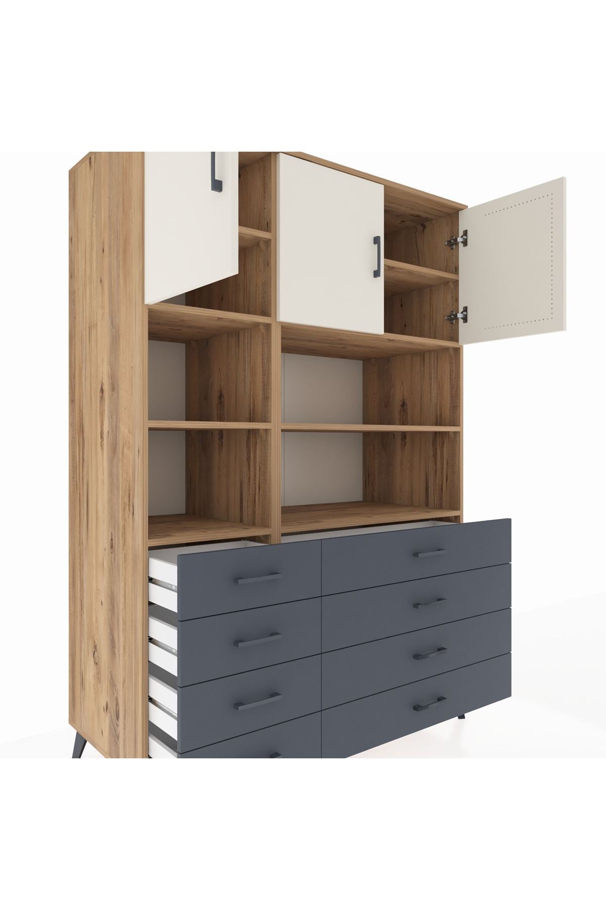 Kronos Dolap 8 Raflı 8 Çekmeceli 3 Kapaklı 132x59x195 Çam-Aytaşı/Antrasit
