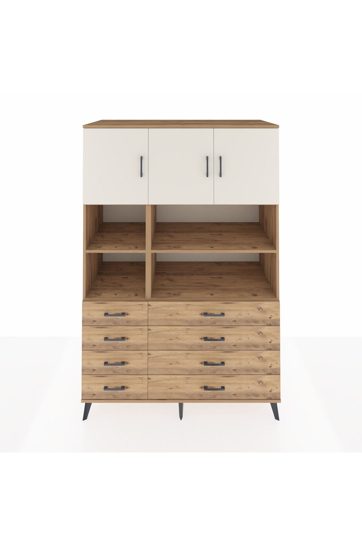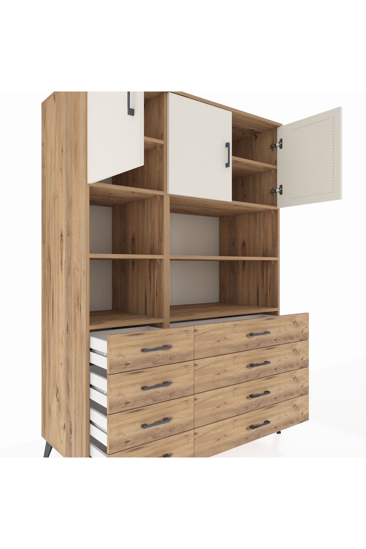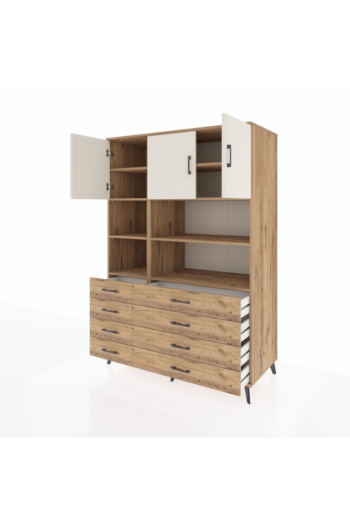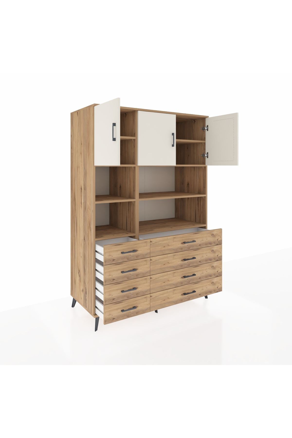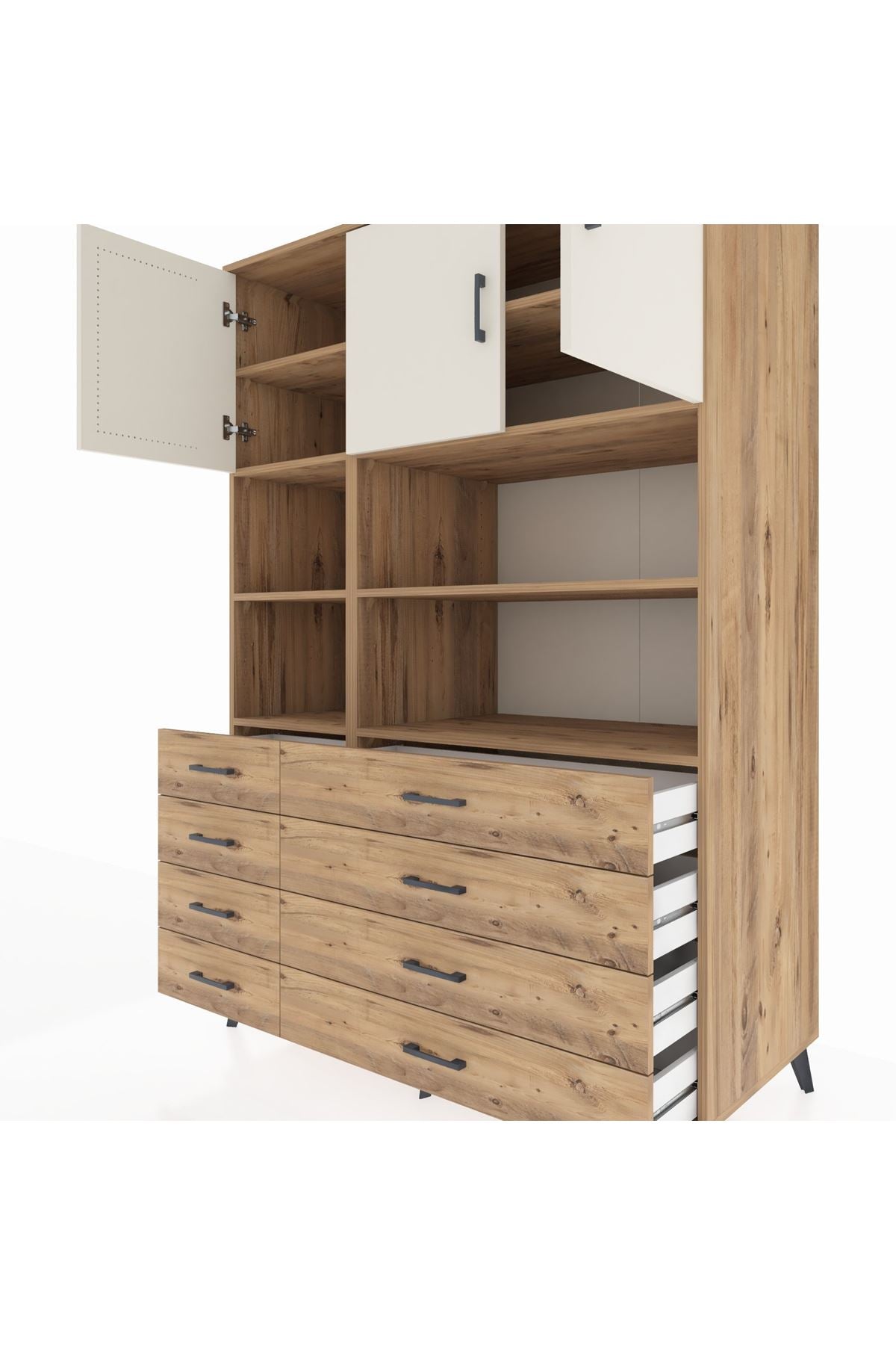 Kronos Dolap 8 Raflı 8 Çekmeceli 3 Kapaklı 132x59x195 Çam-Aytaşı/Çam
