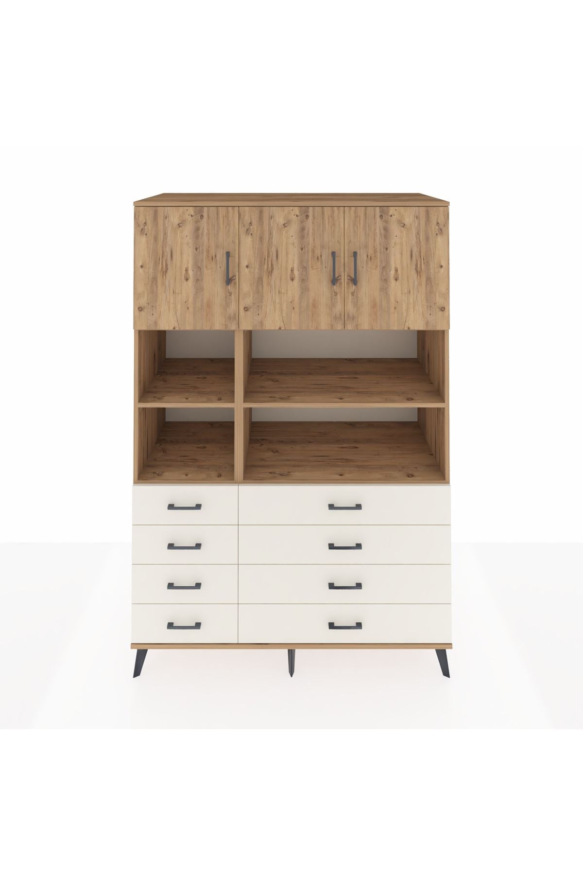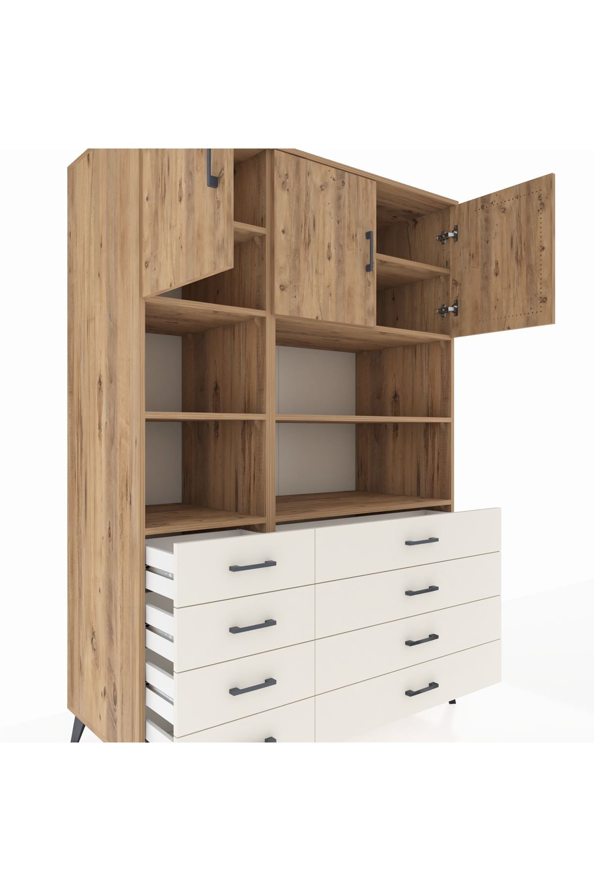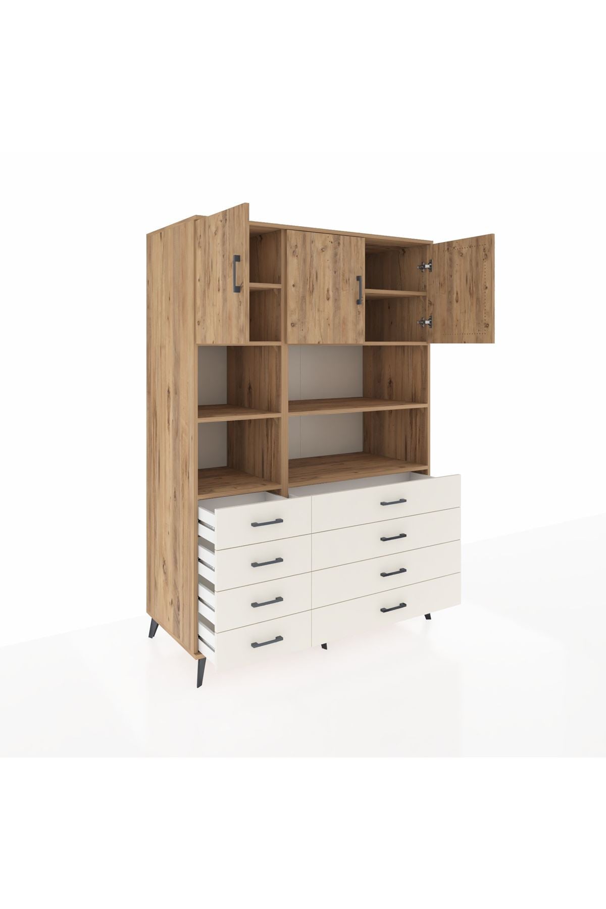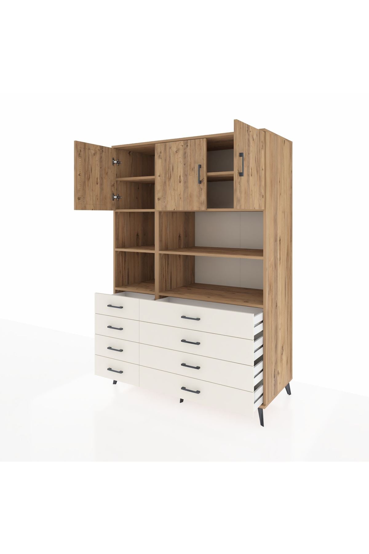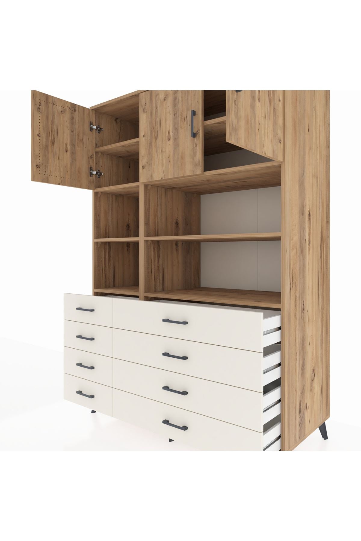 Kronos Dolap 8 Raflı 8 Çekmeceli 3 Kapaklı 132x59x195 Çam-Çam/Aytaşı