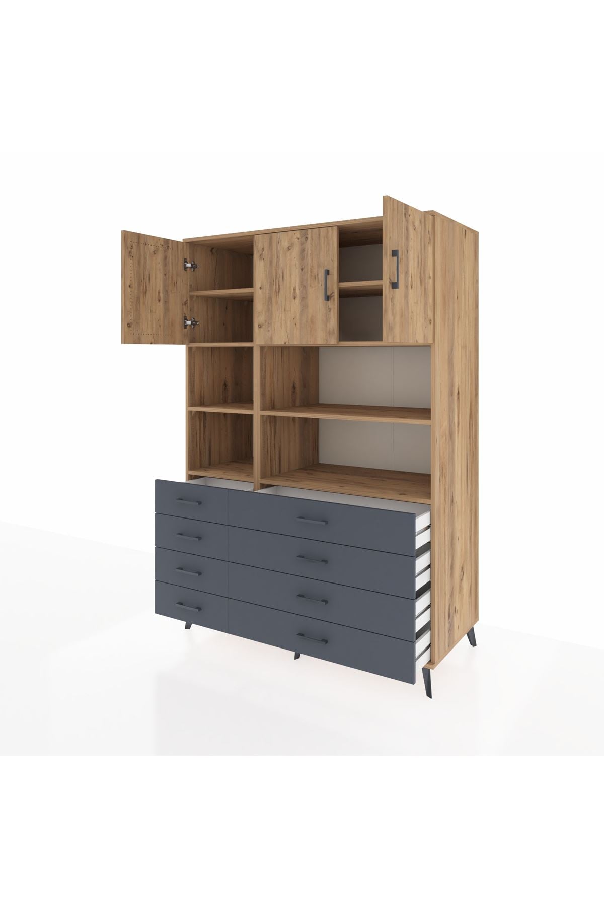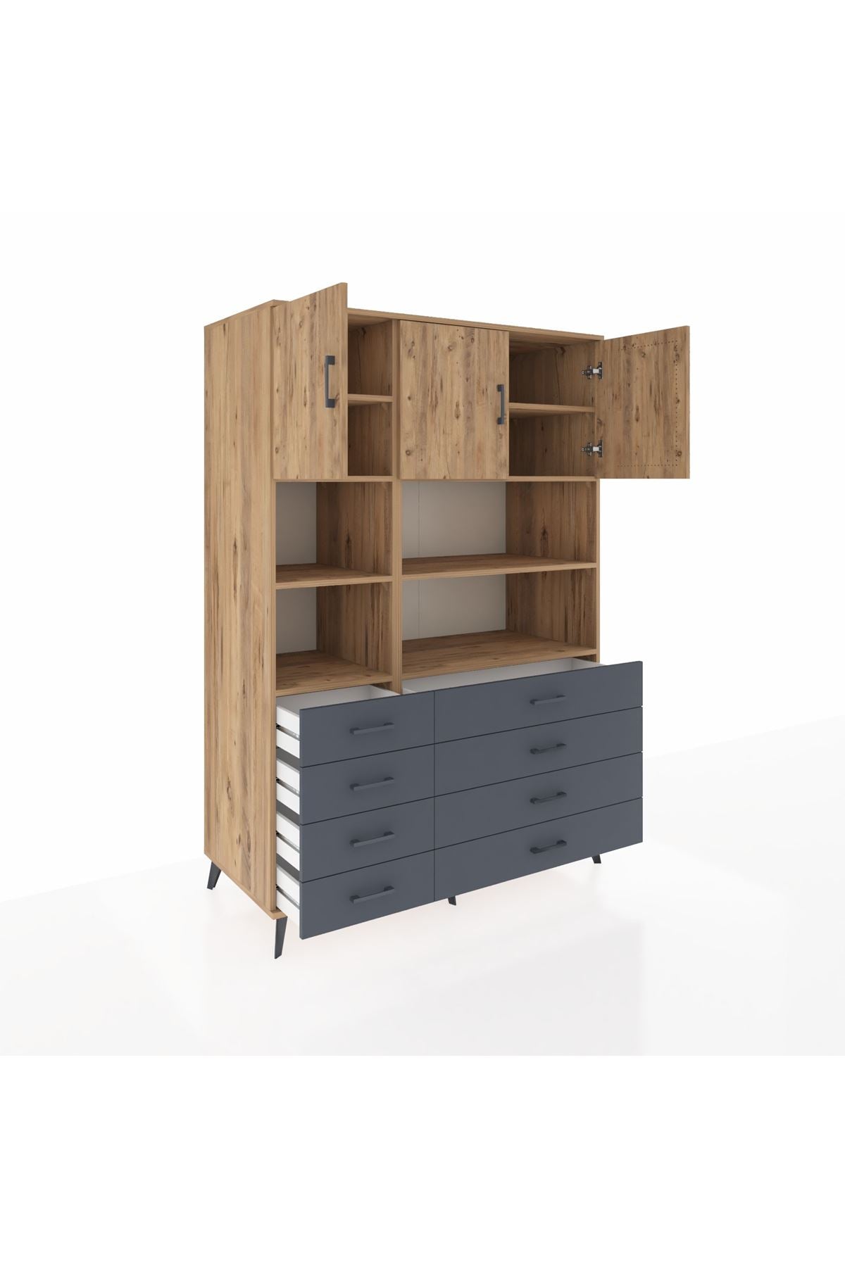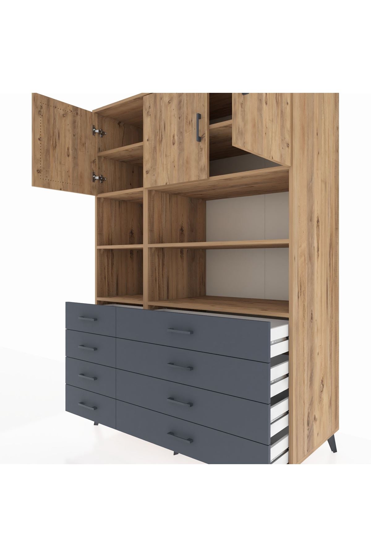 Kronos Dolap 8 Raflı 8 Çekmeceli 3 Kapaklı 132x59x195 Çam-Çam/Antrasit