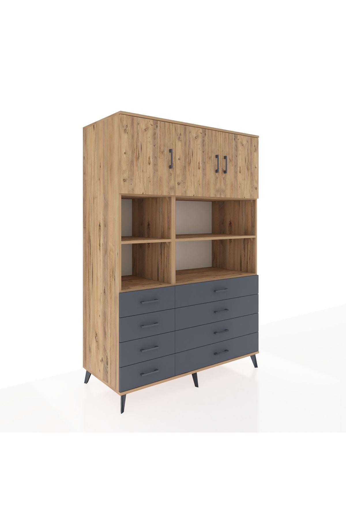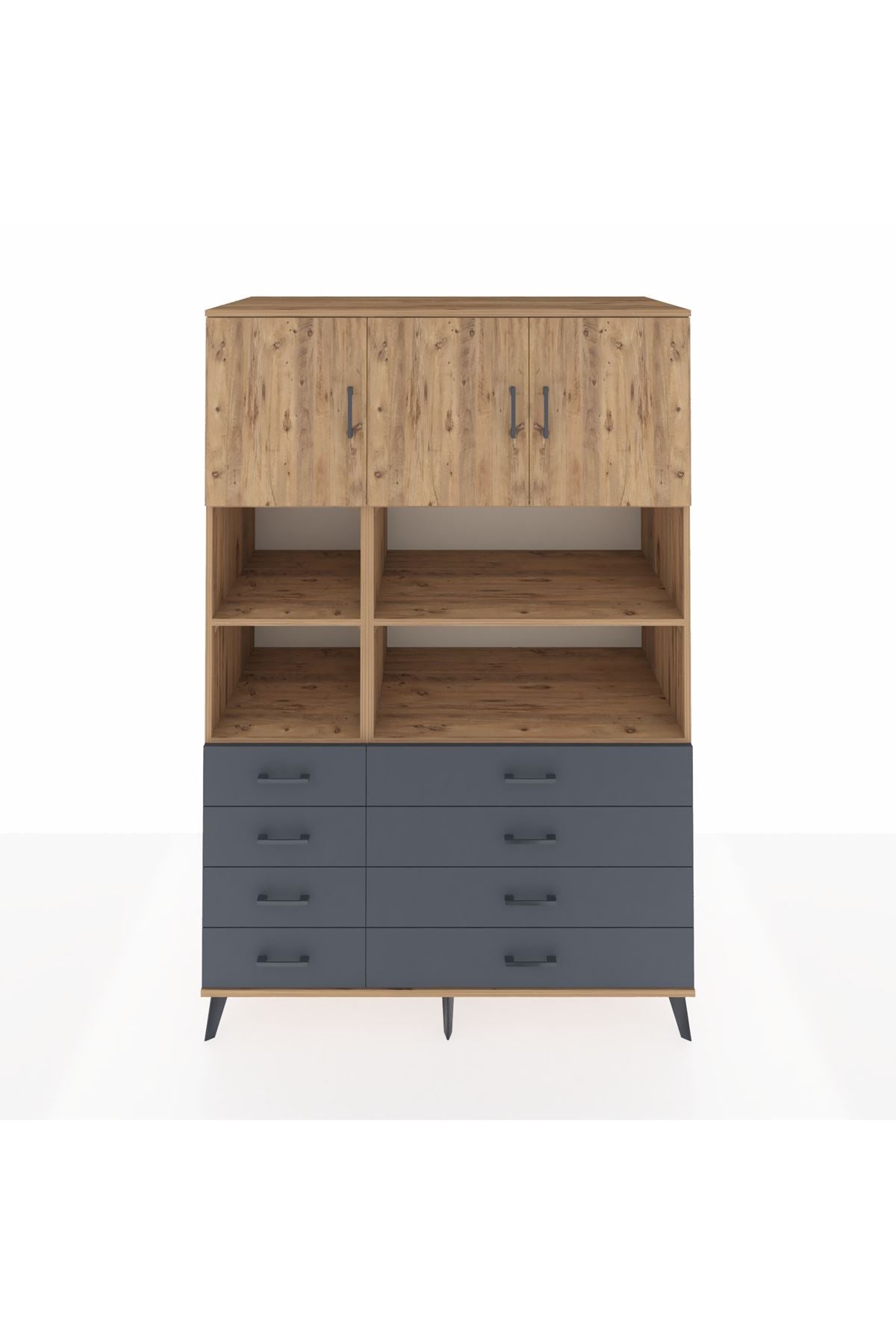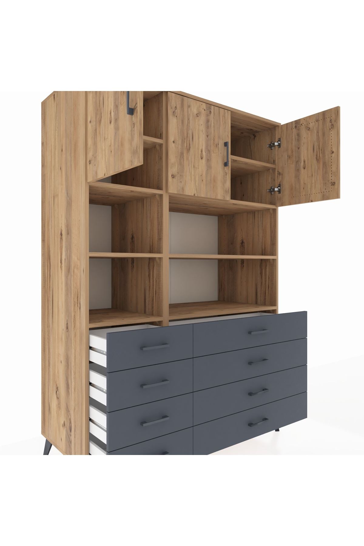 Kronos Dolap 8 Raflı 8 Çekmeceli 3 Kapaklı 132x59x195 Çam-Çam/Antrasit