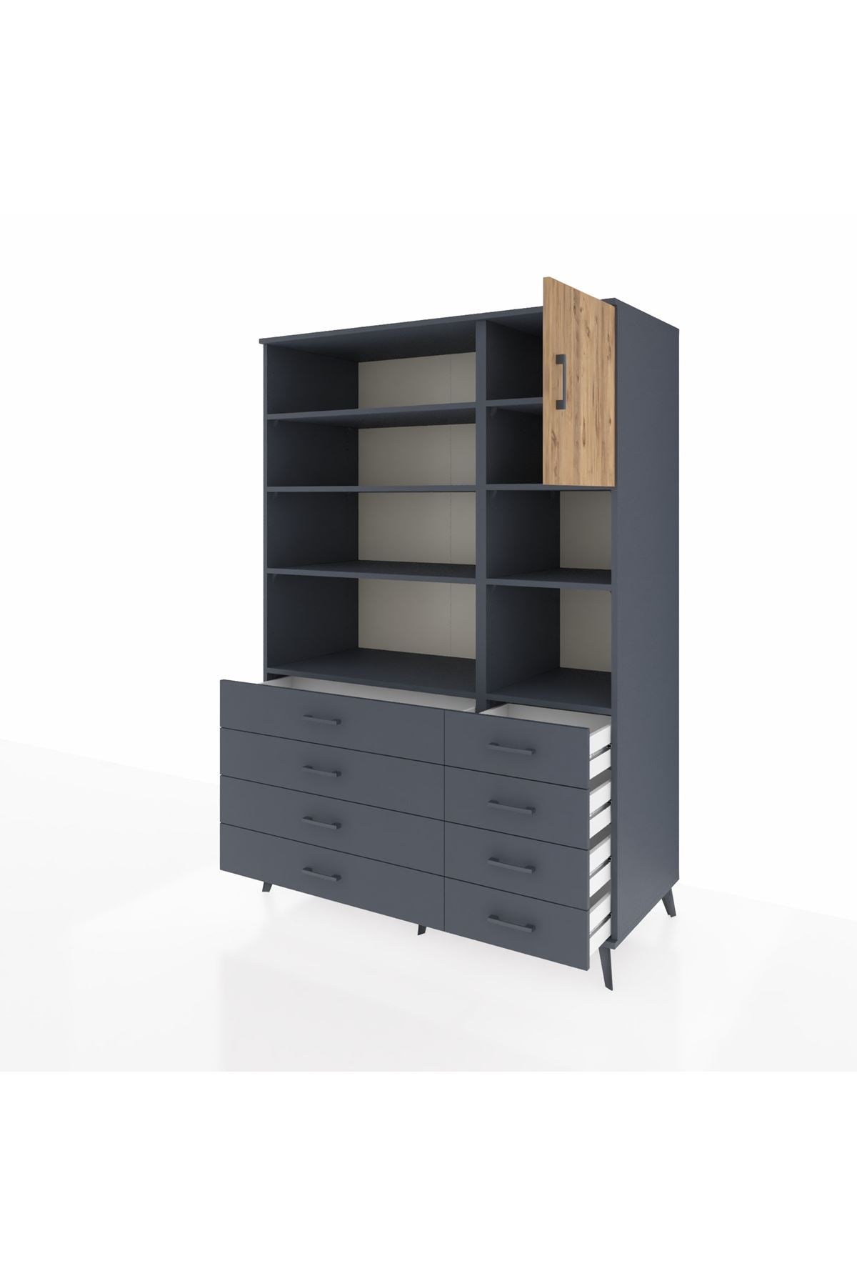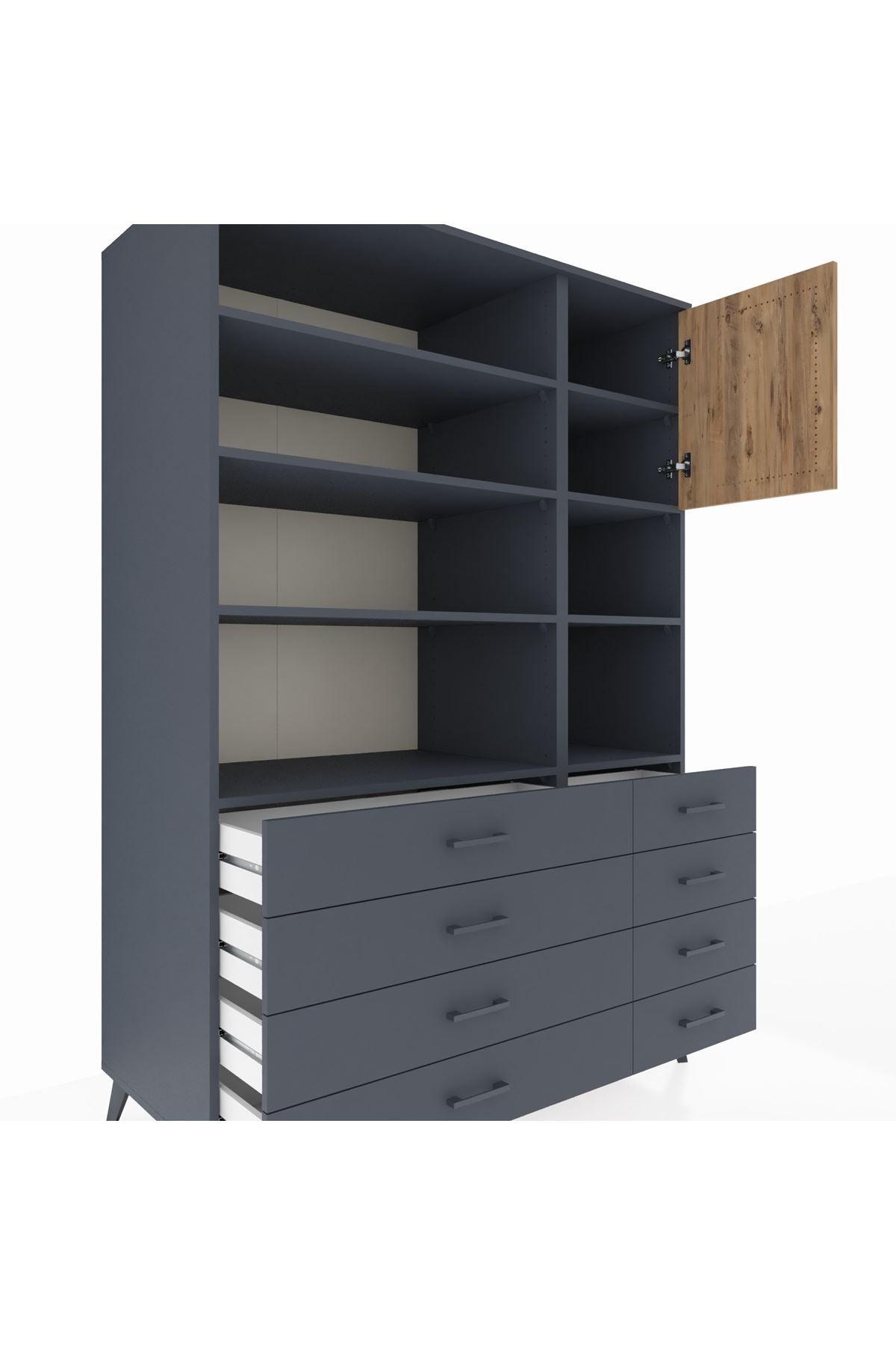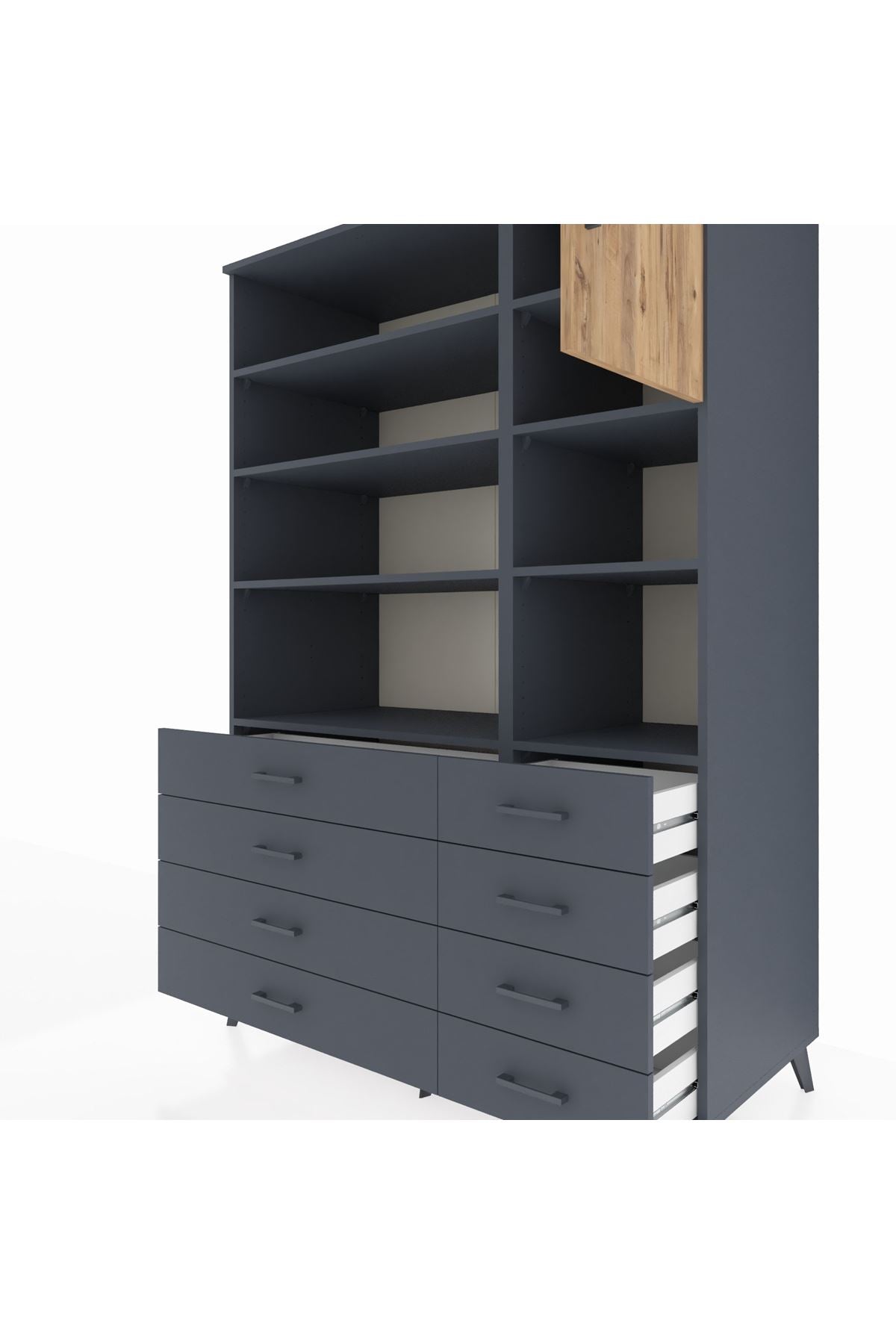 Kronos Dolap 8 Raflı 8 Çekmeceli Tek Kapaklı 132x59x195 Antrasit-Çam/Antrasit