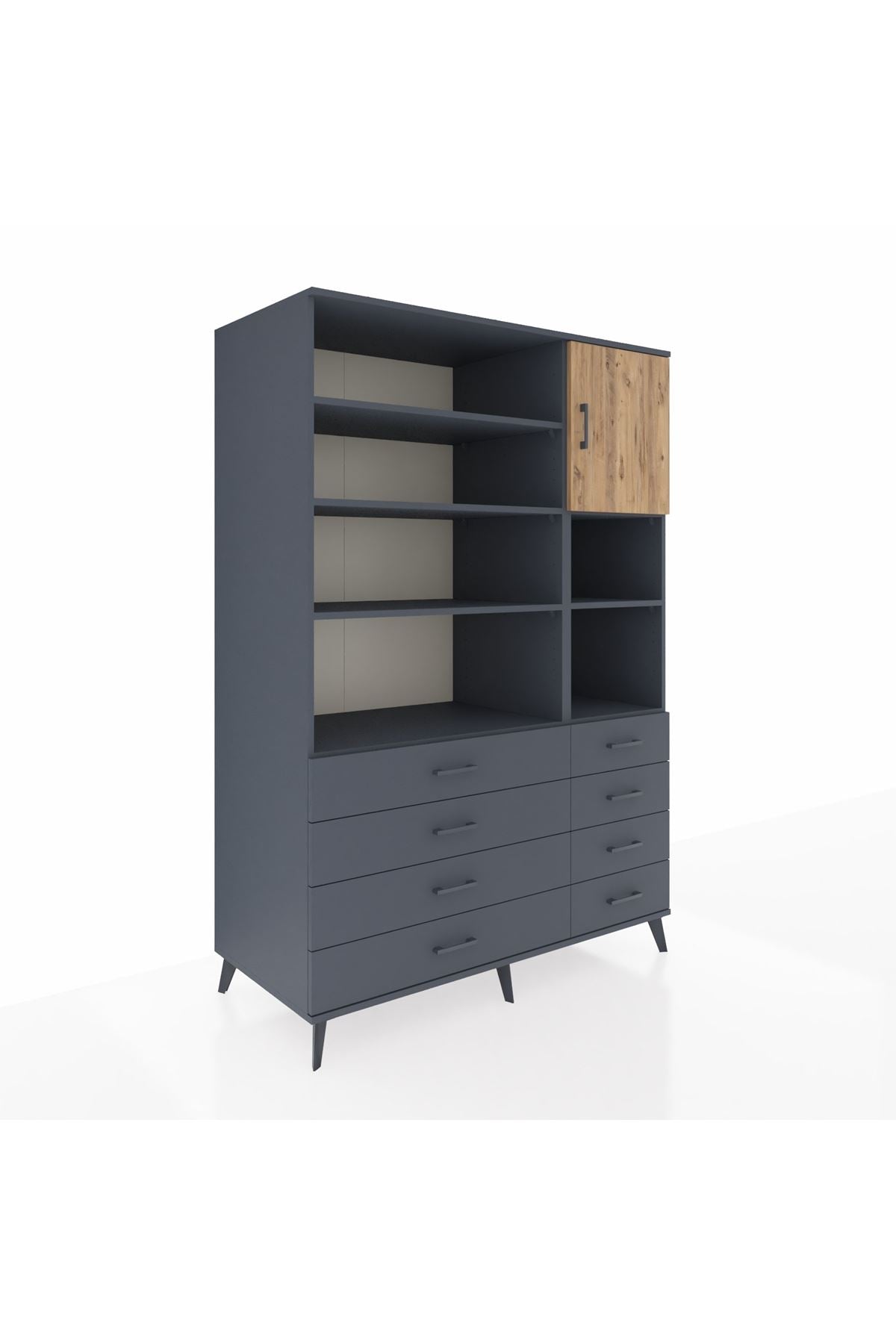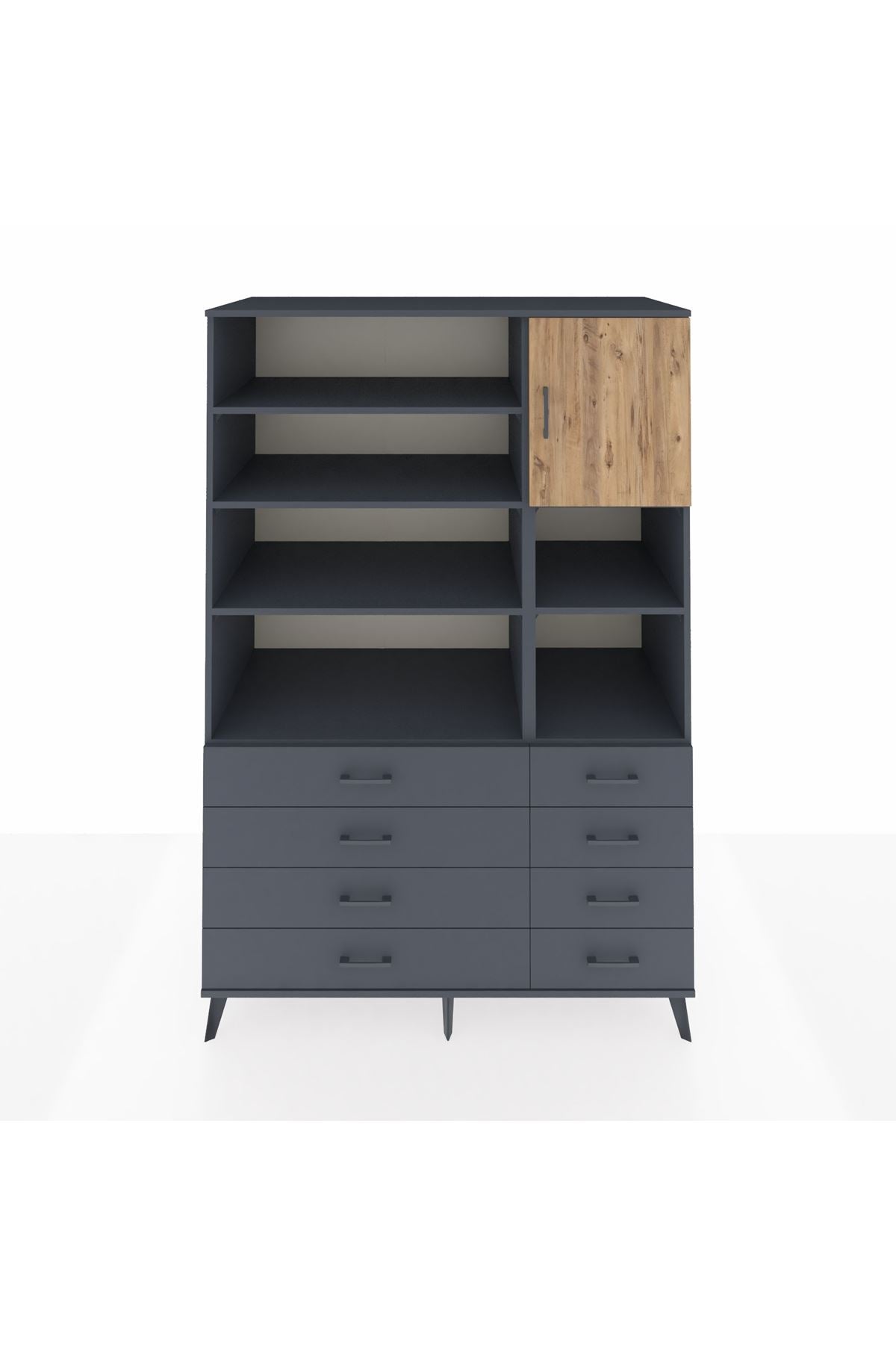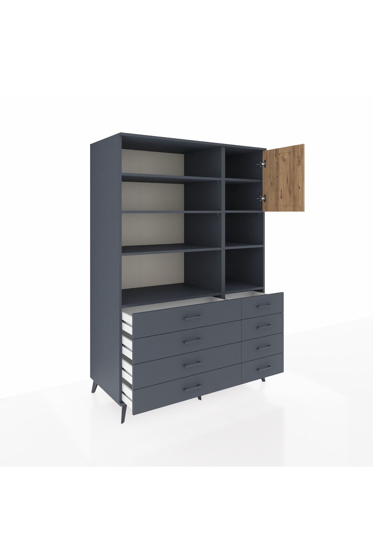 Kronos Dolap 8 Raflı 8 Çekmeceli Tek Kapaklı 132x59x195 Antrasit-Çam/Antrasit
