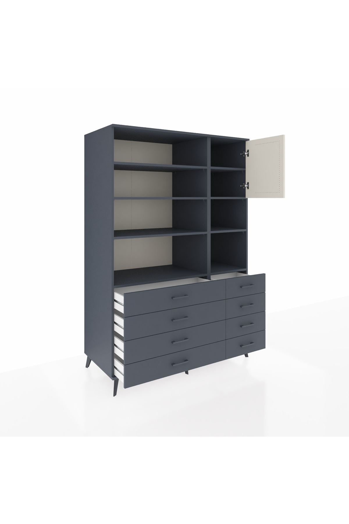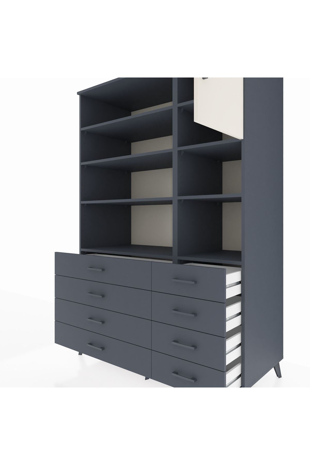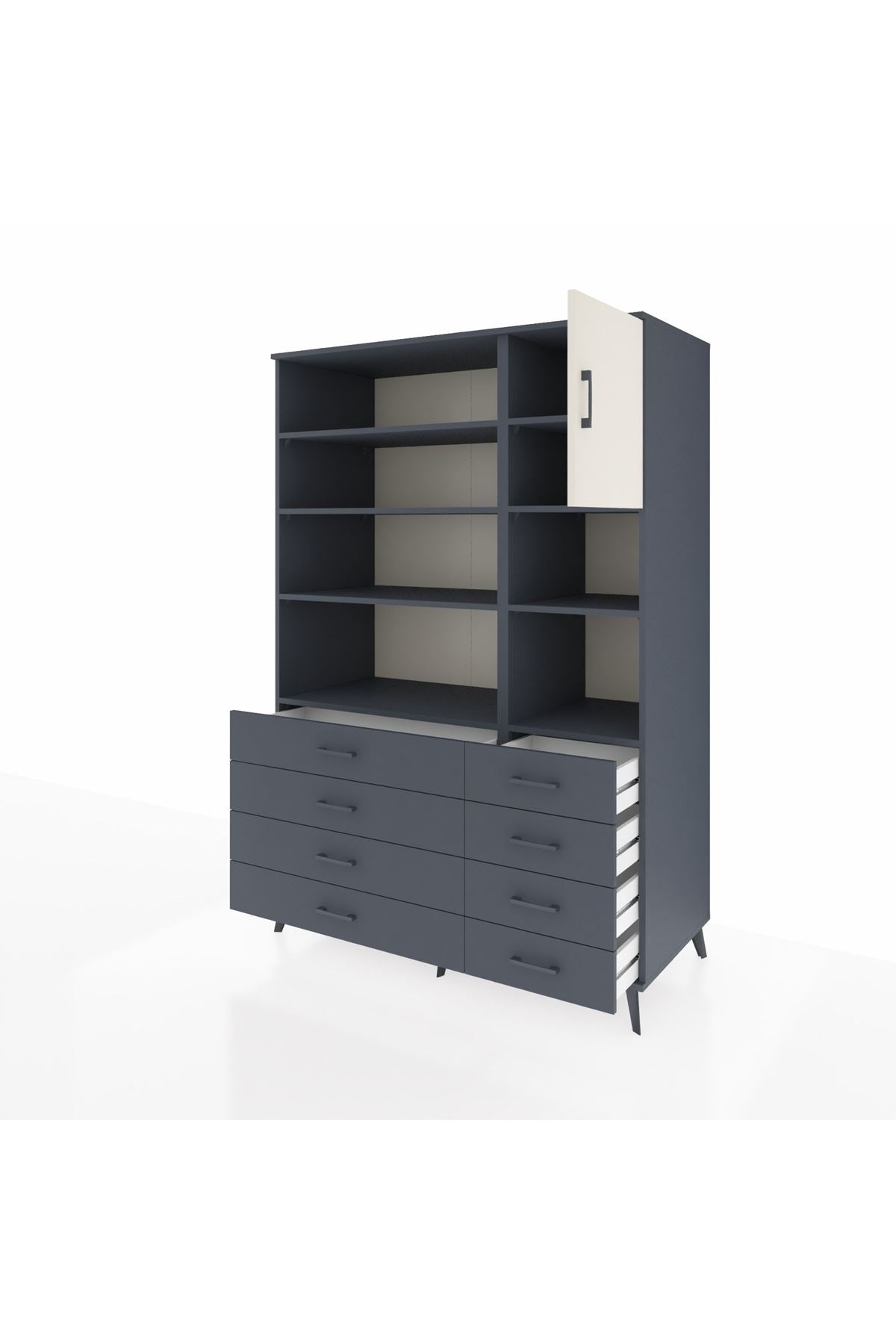 Kronos Dolap 8 Raflı 8 Çekmeceli Tek Kapaklı 132x59x195 Antrasit-Aytaşı/Antrasit