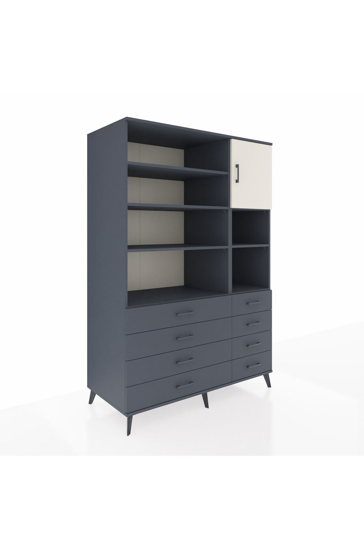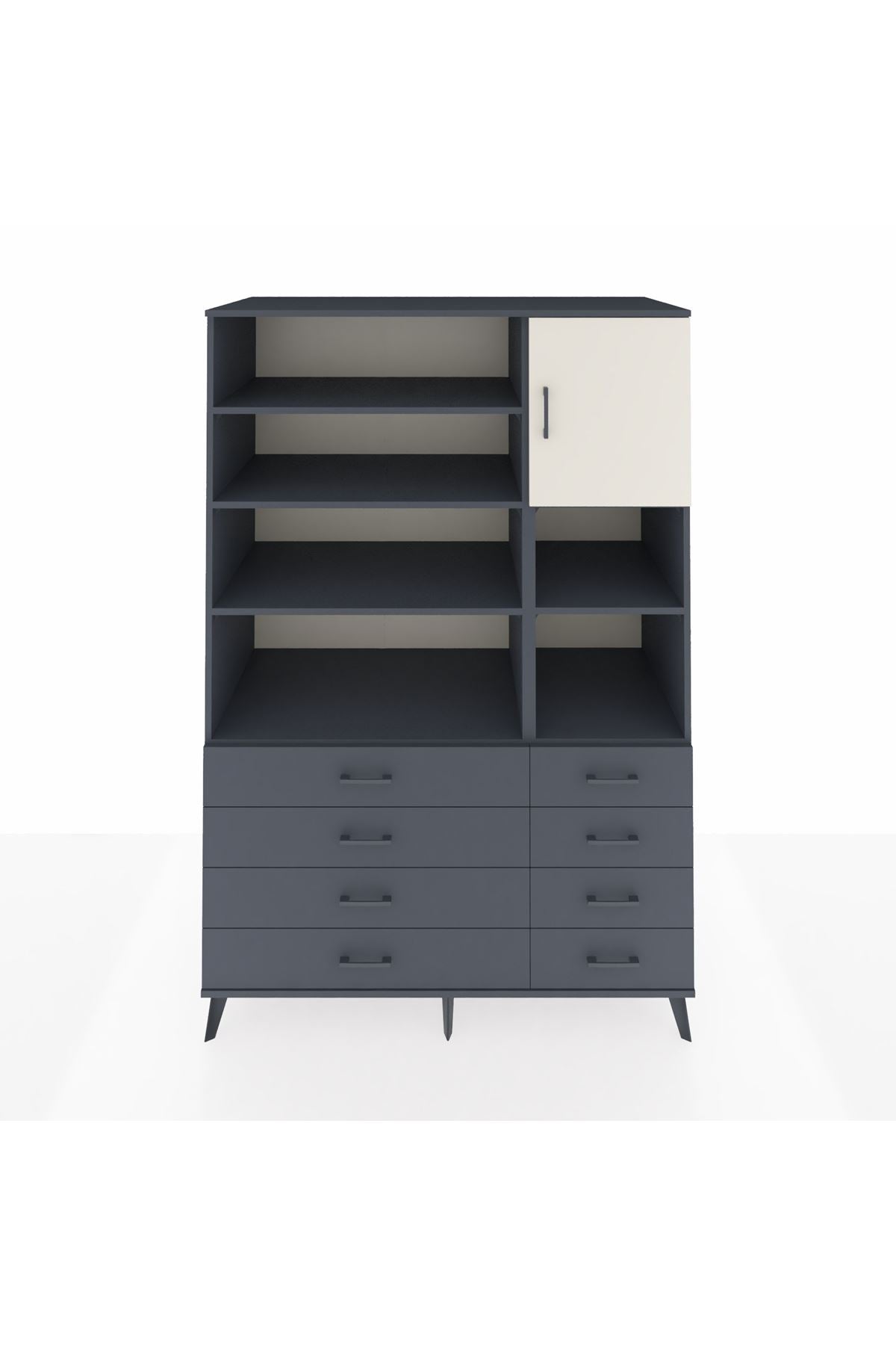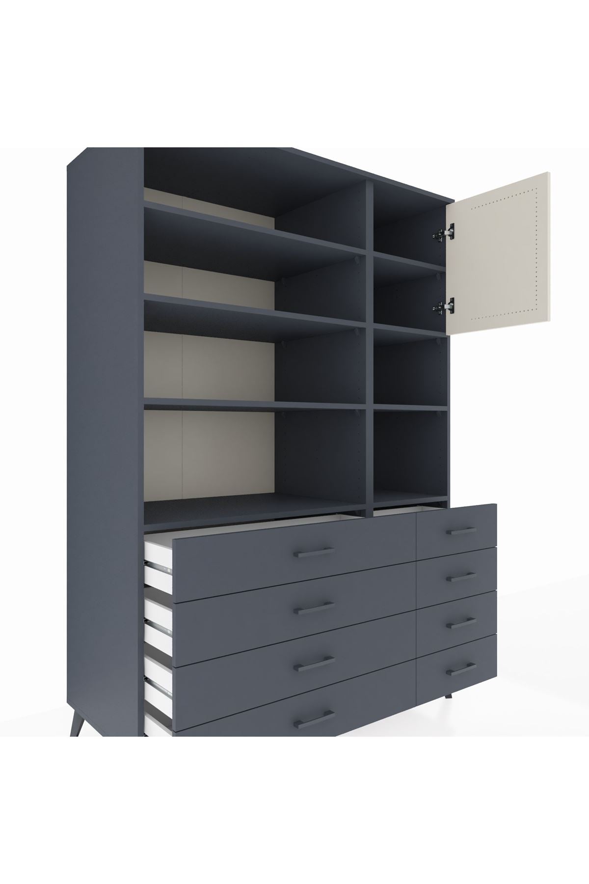 Kronos Dolap 8 Raflı 8 Çekmeceli Tek Kapaklı 132x59x195 Antrasit-Aytaşı/Antrasit