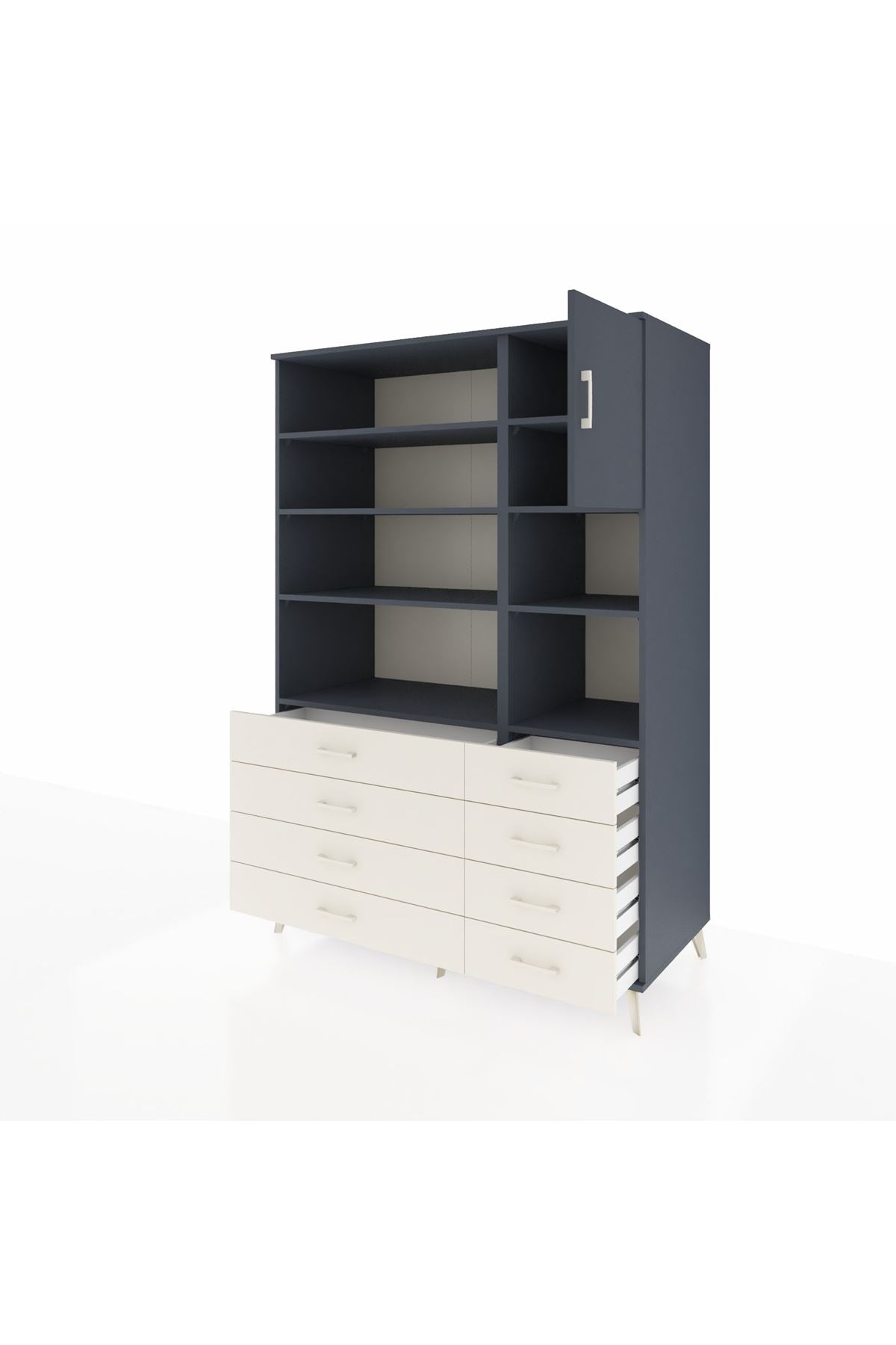 Kronos Dolap 8 Raflı 8 Çekmeceli Tek Kapaklı 132x59x195 Antrasit-Antrasit/Aytaşı
