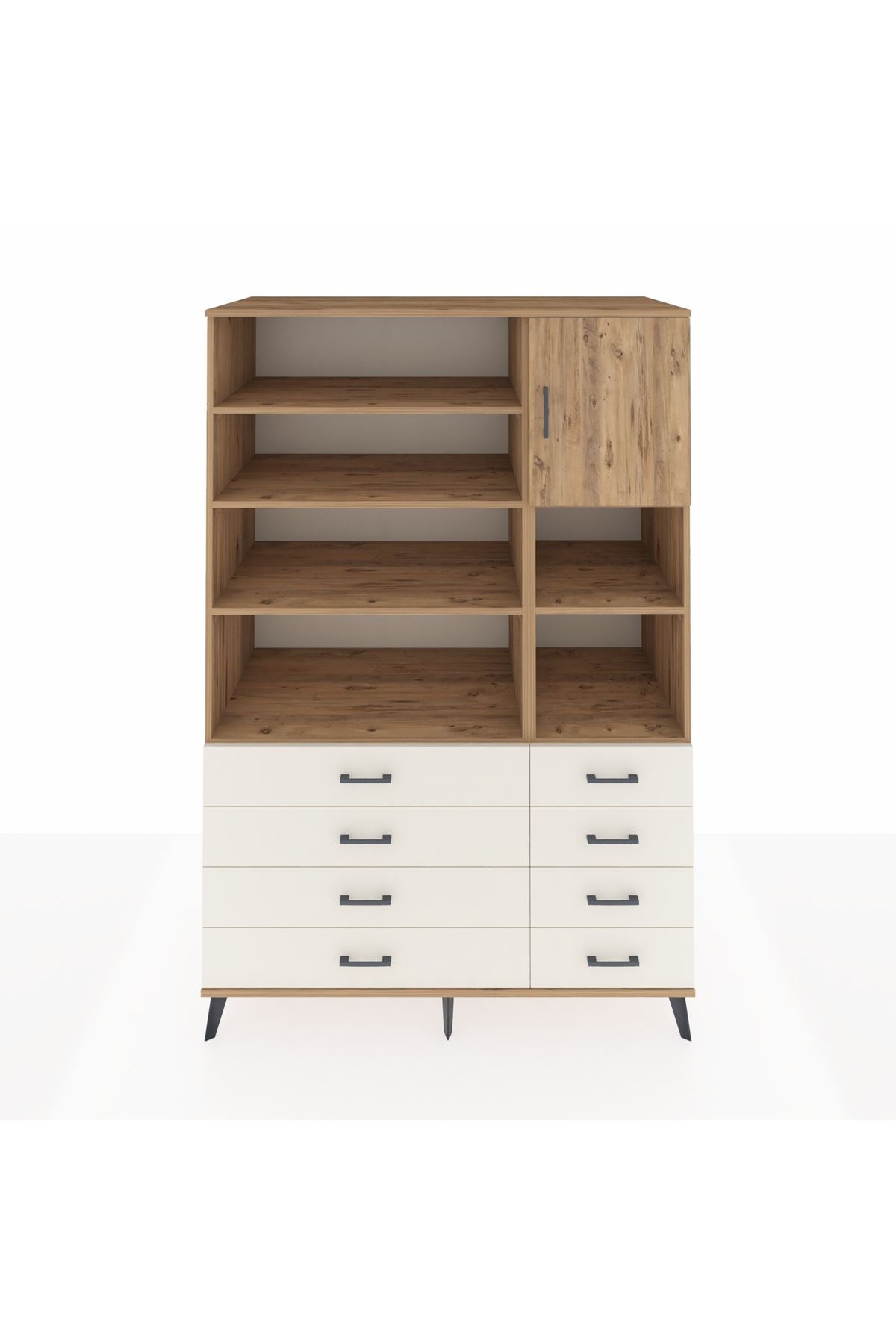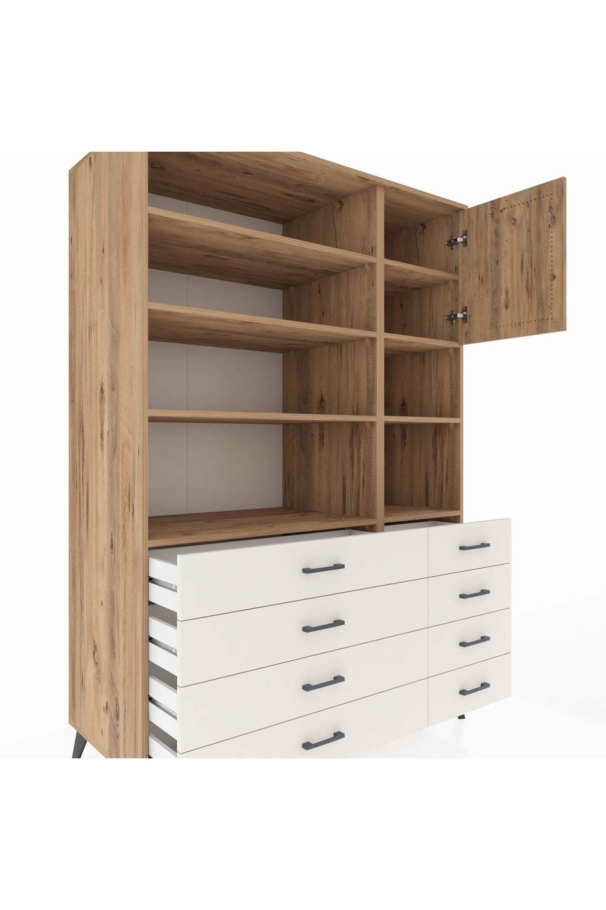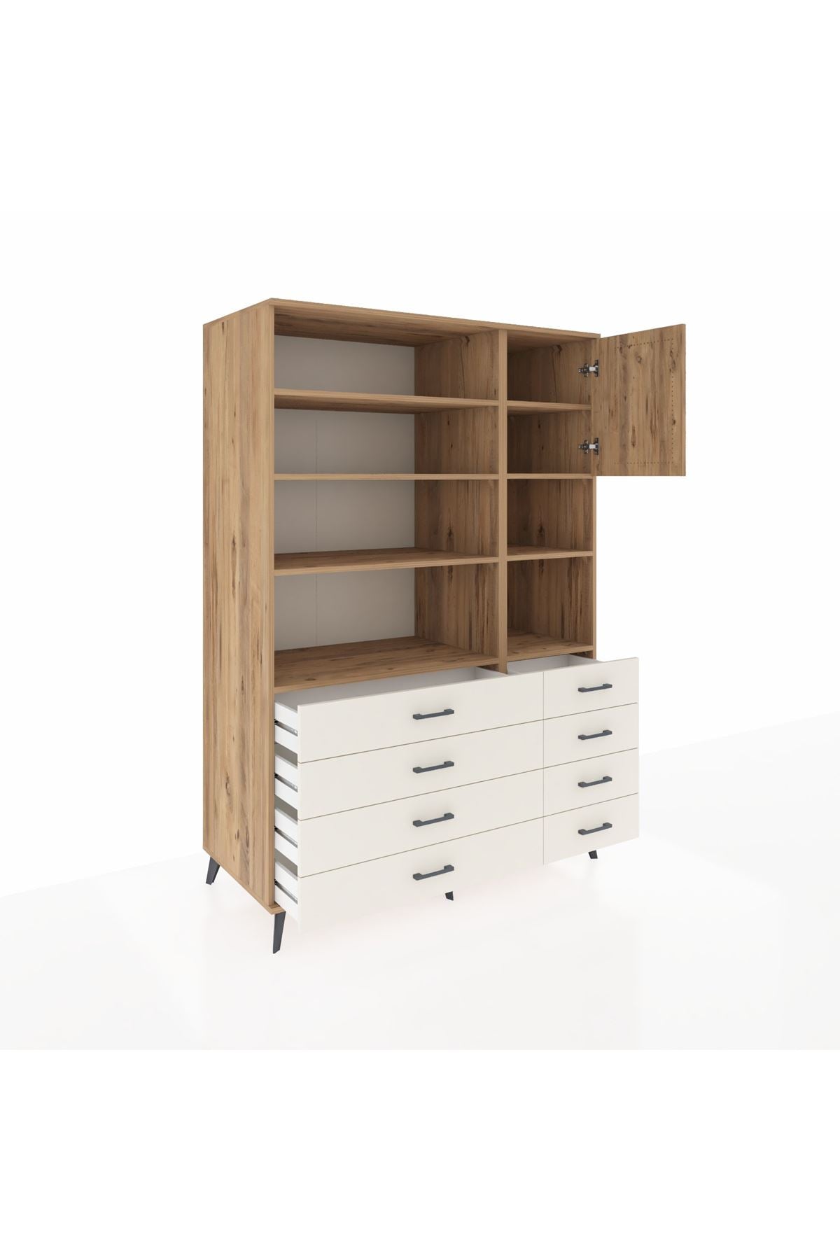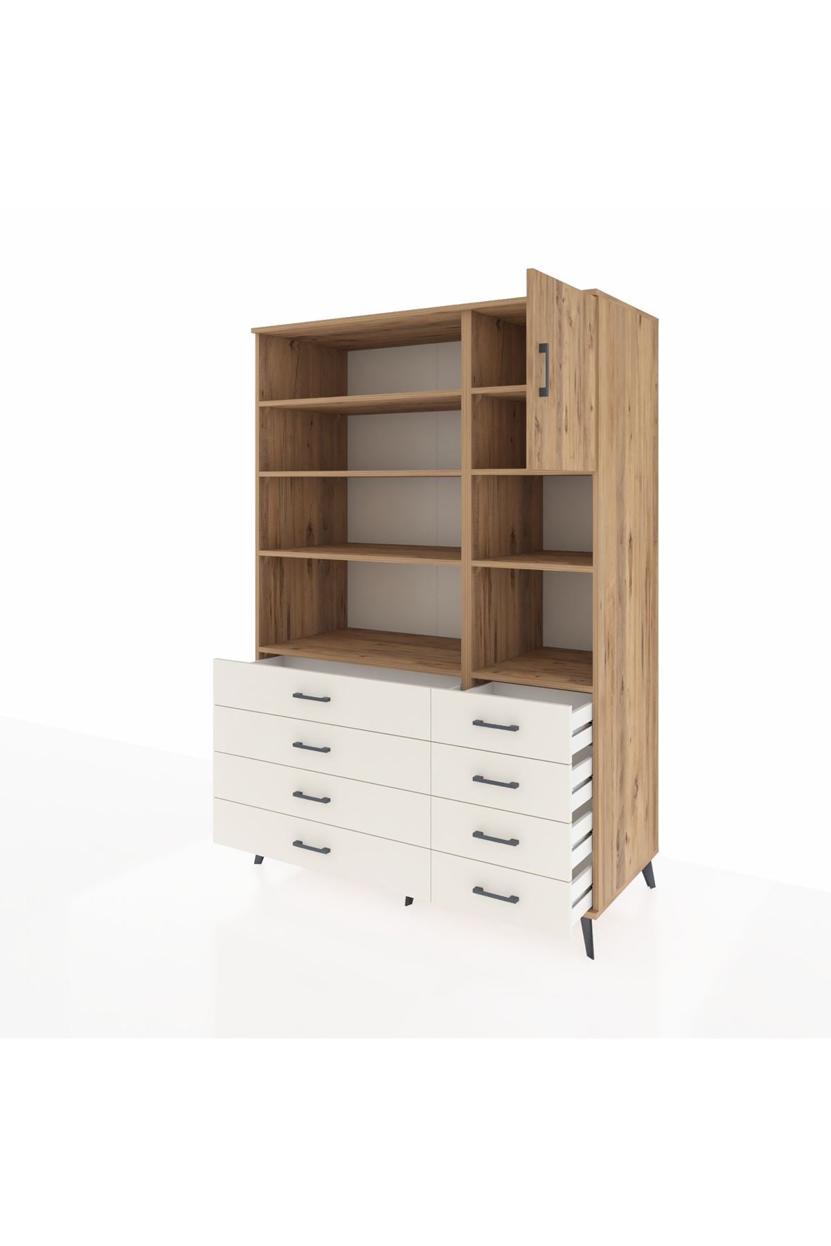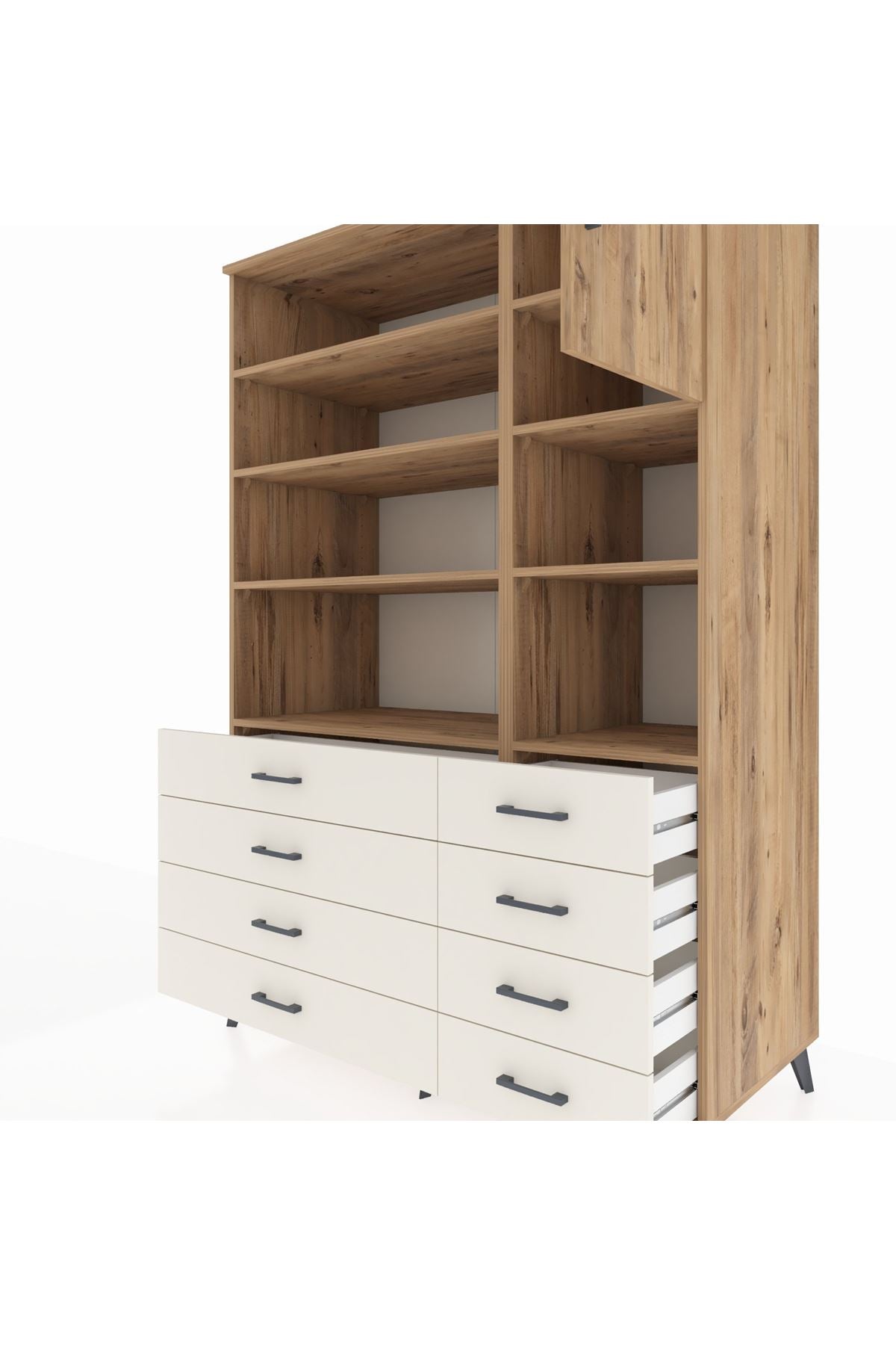 Kronos Dolap 8 Raflı 8 Çekmeceli Tek Kapaklı 132x59x195 Çam-Çam/Aytaşı