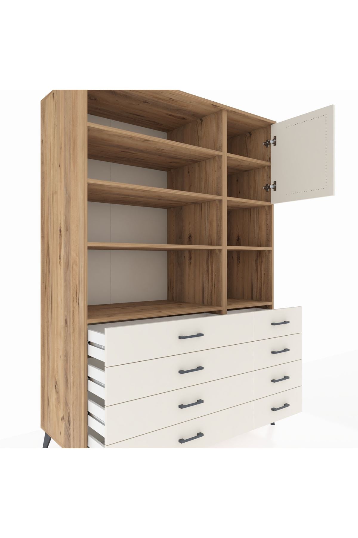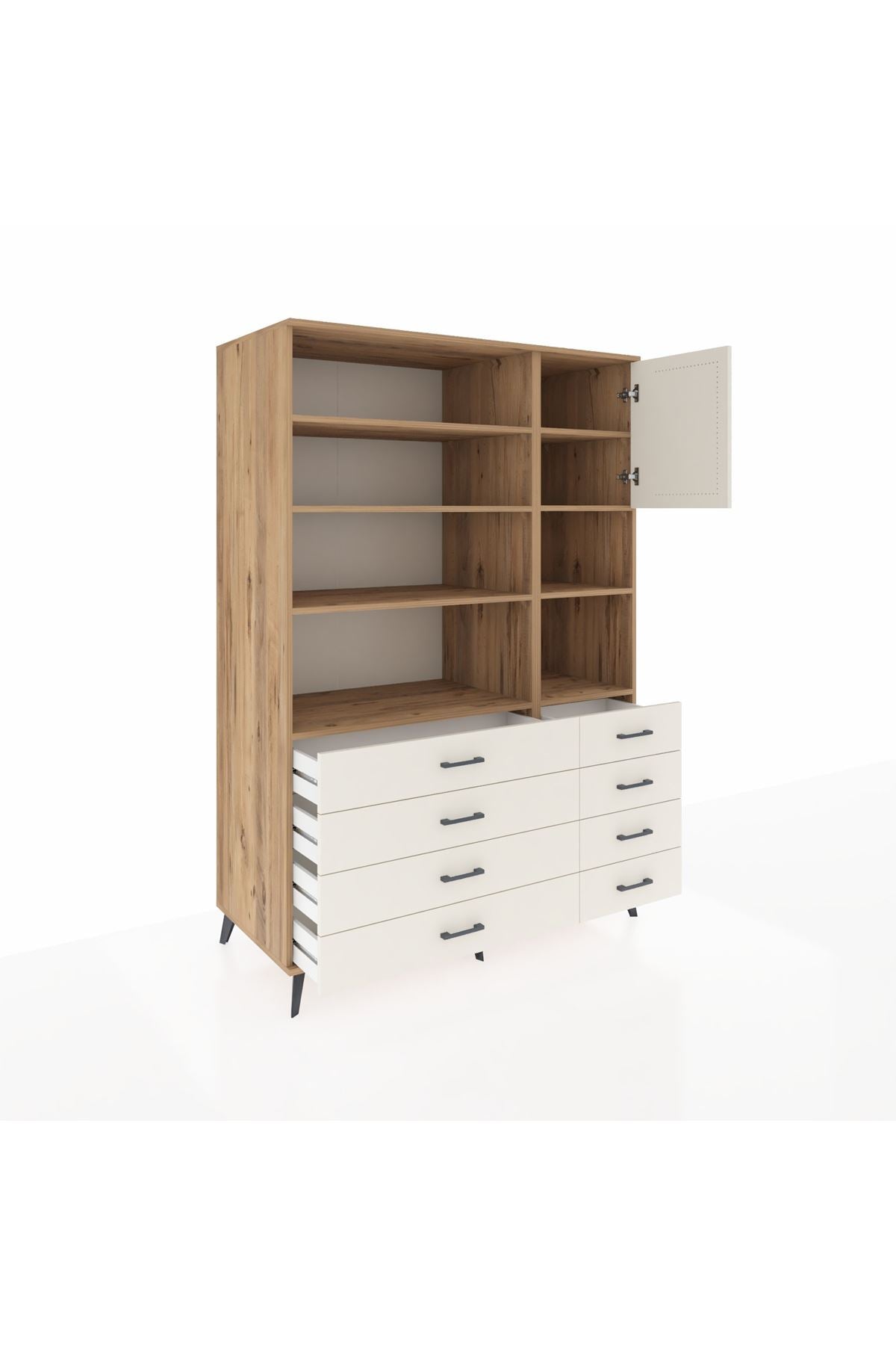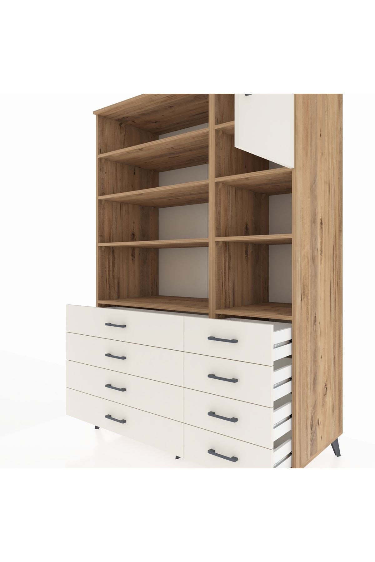 Kronos Dolap 8 Raflı 8 Çekmeceli Tek Kapaklı 132x59x195 Çam-Aytaşı/Aytaşı