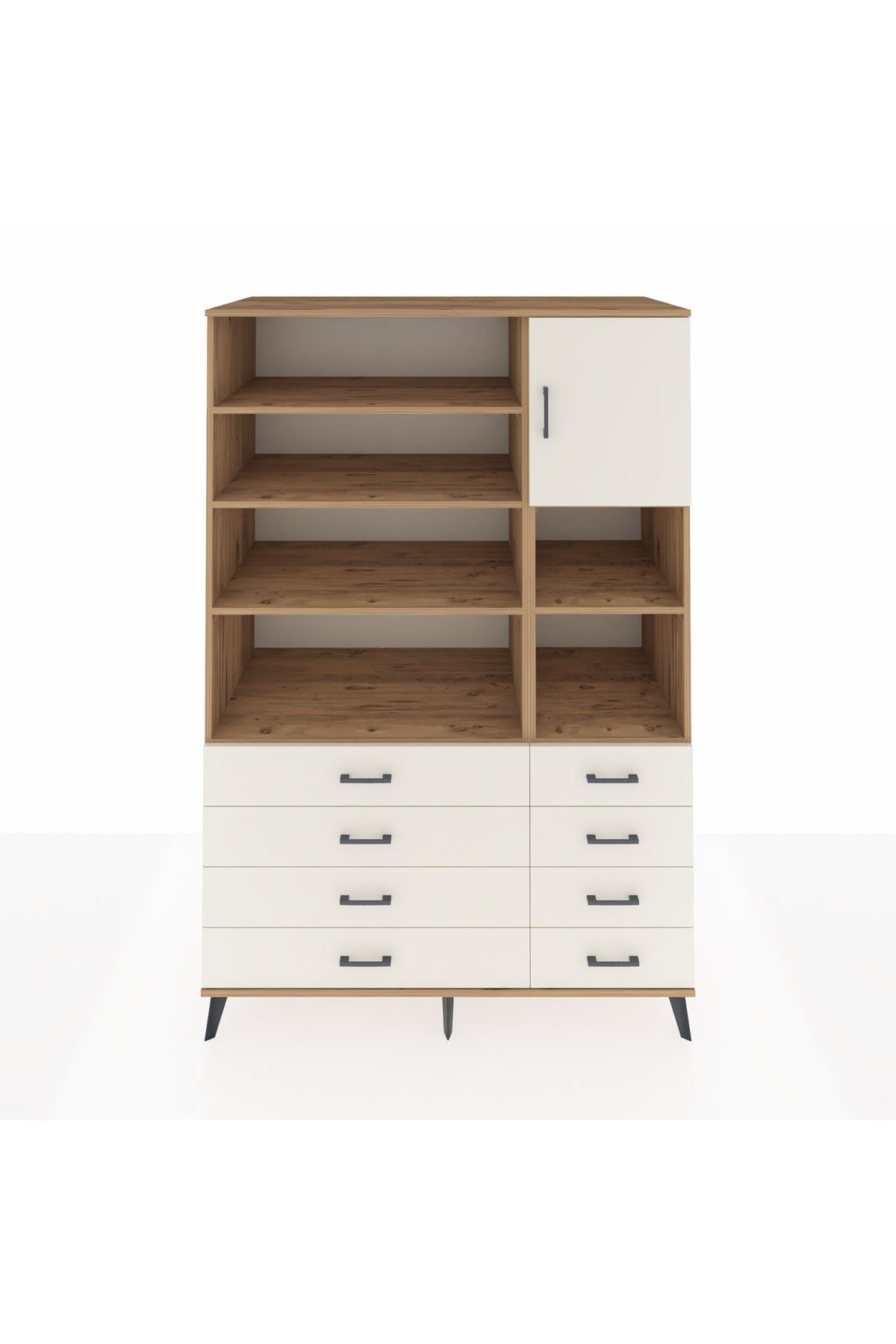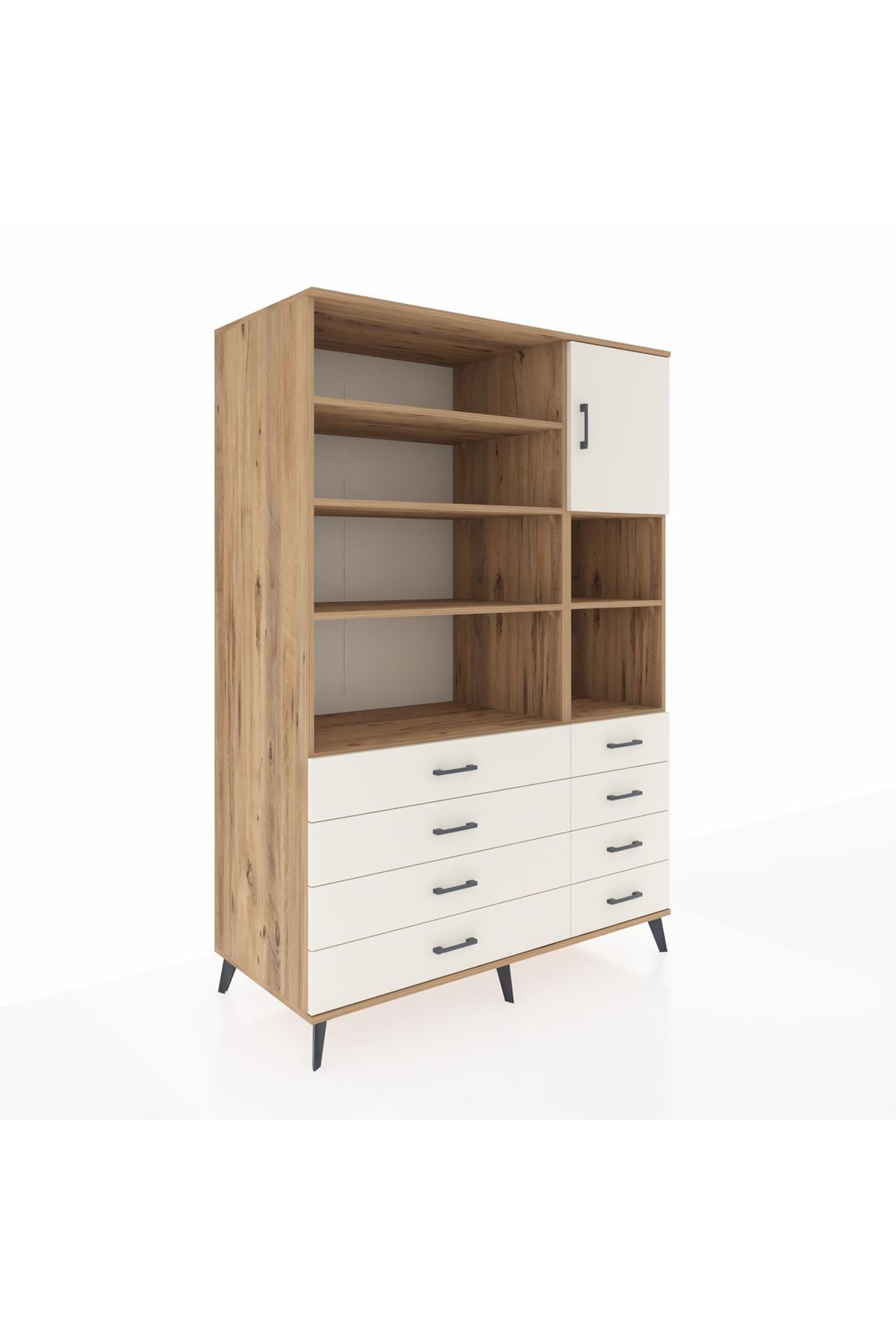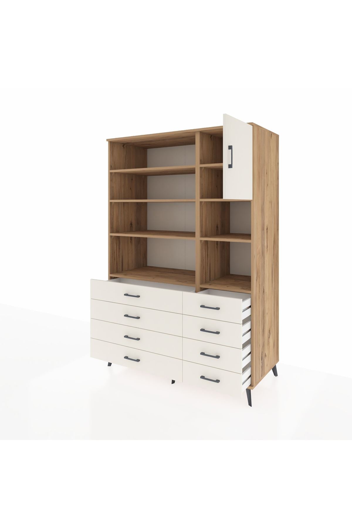 Kronos Dolap 8 Raflı 8 Çekmeceli Tek Kapaklı 132x59x195 Çam-Aytaşı/Aytaşı