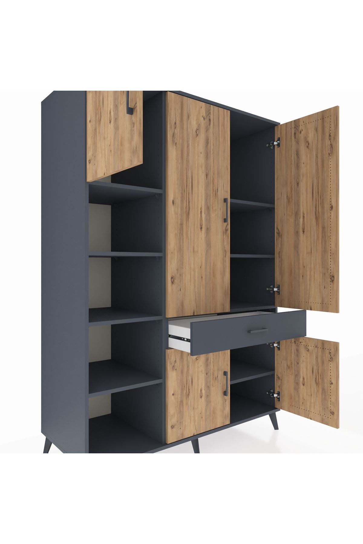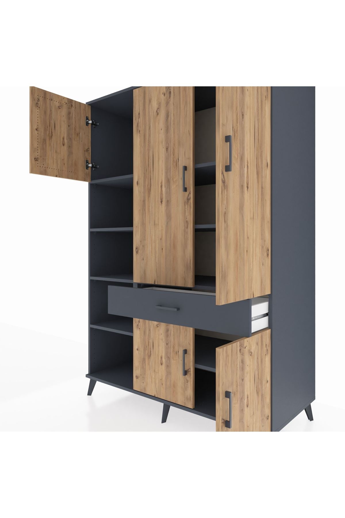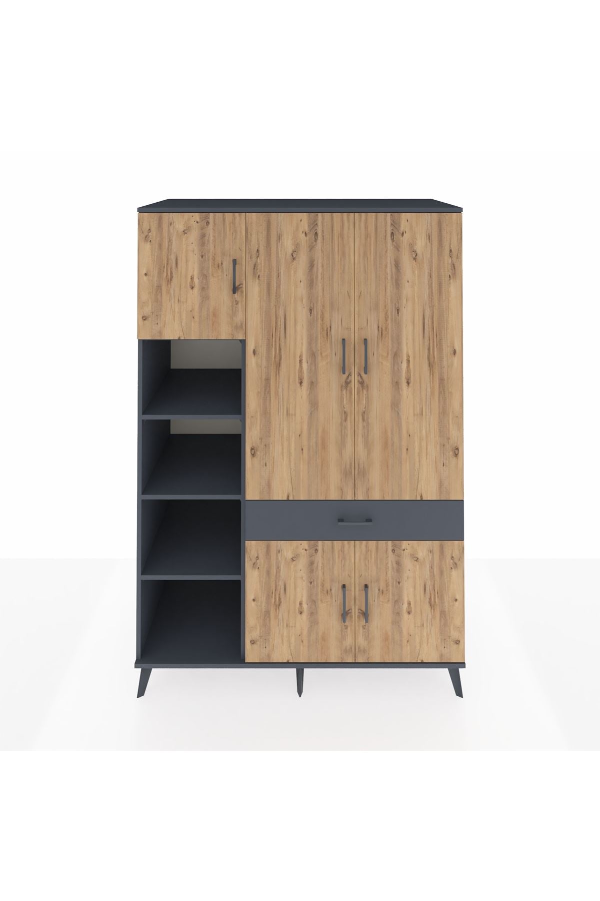 Kronos Dolap 8 Raflı Tek Çekmeceli 5 Kapaklı 132x59x195 Antrasit-Çam/Antrasit