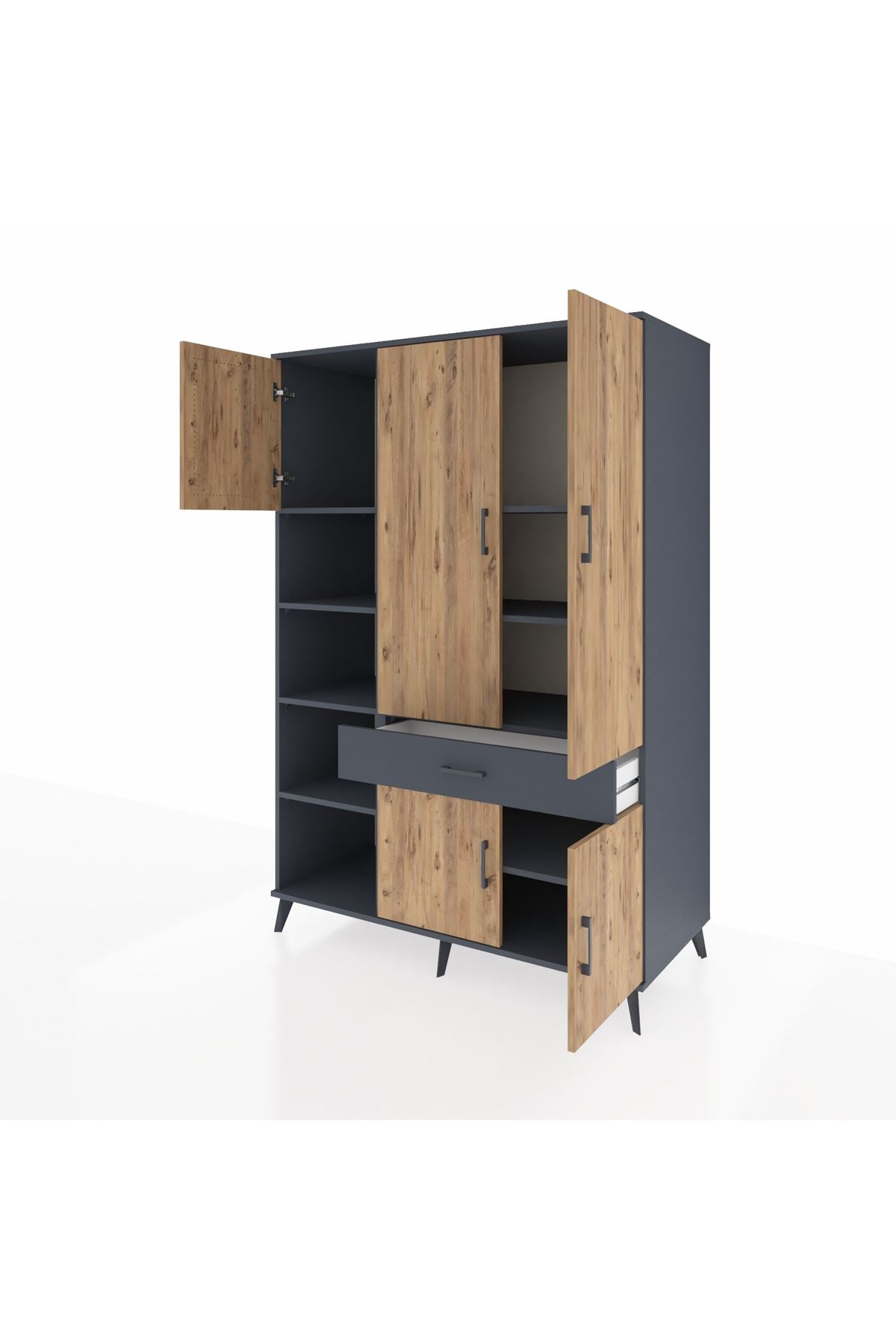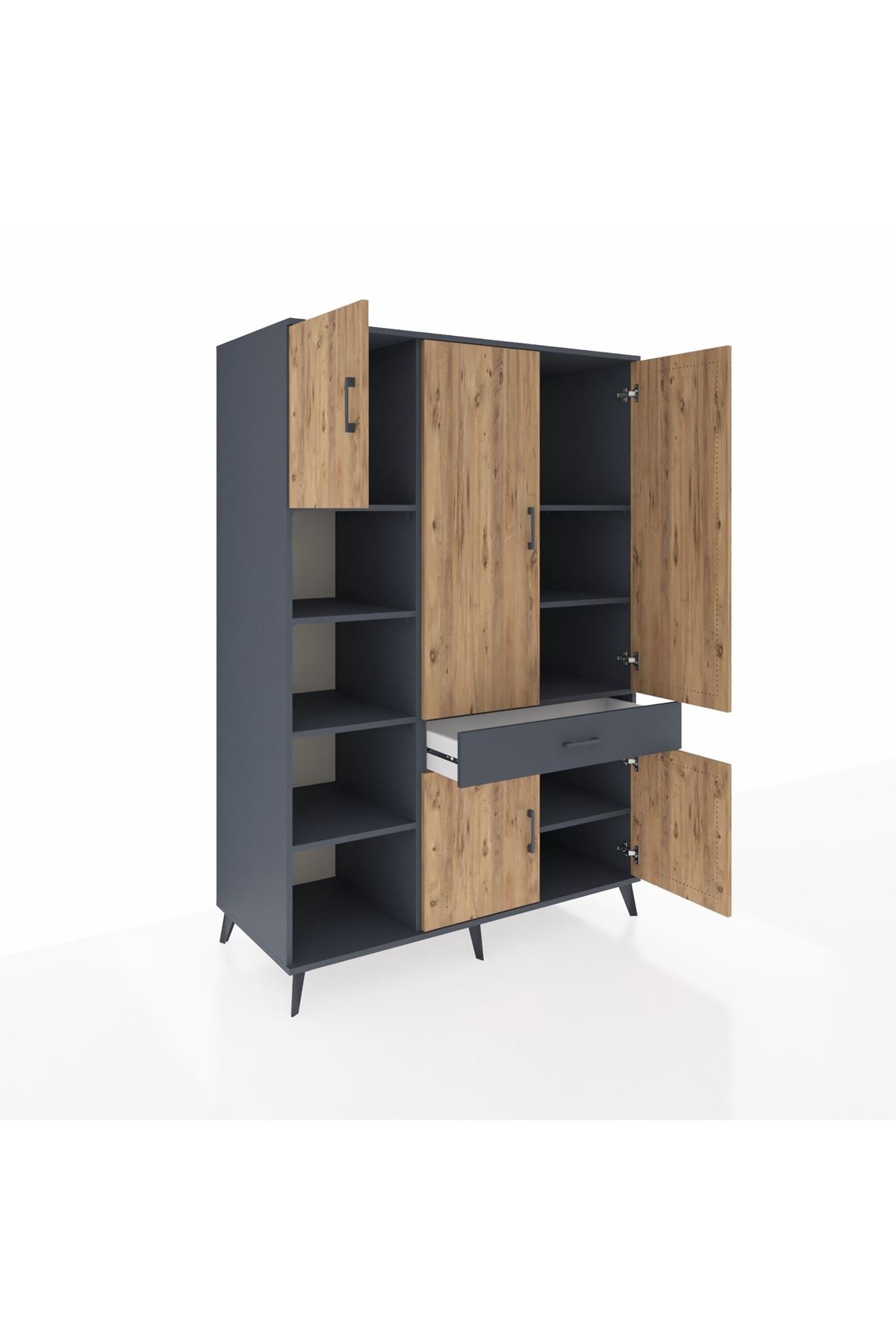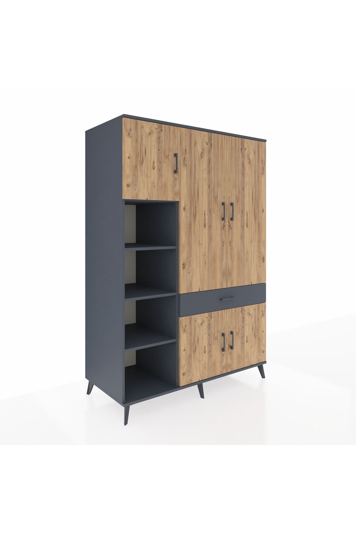 Kronos Dolap 8 Raflı Tek Çekmeceli 5 Kapaklı 132x59x195 Antrasit-Çam/Antrasit