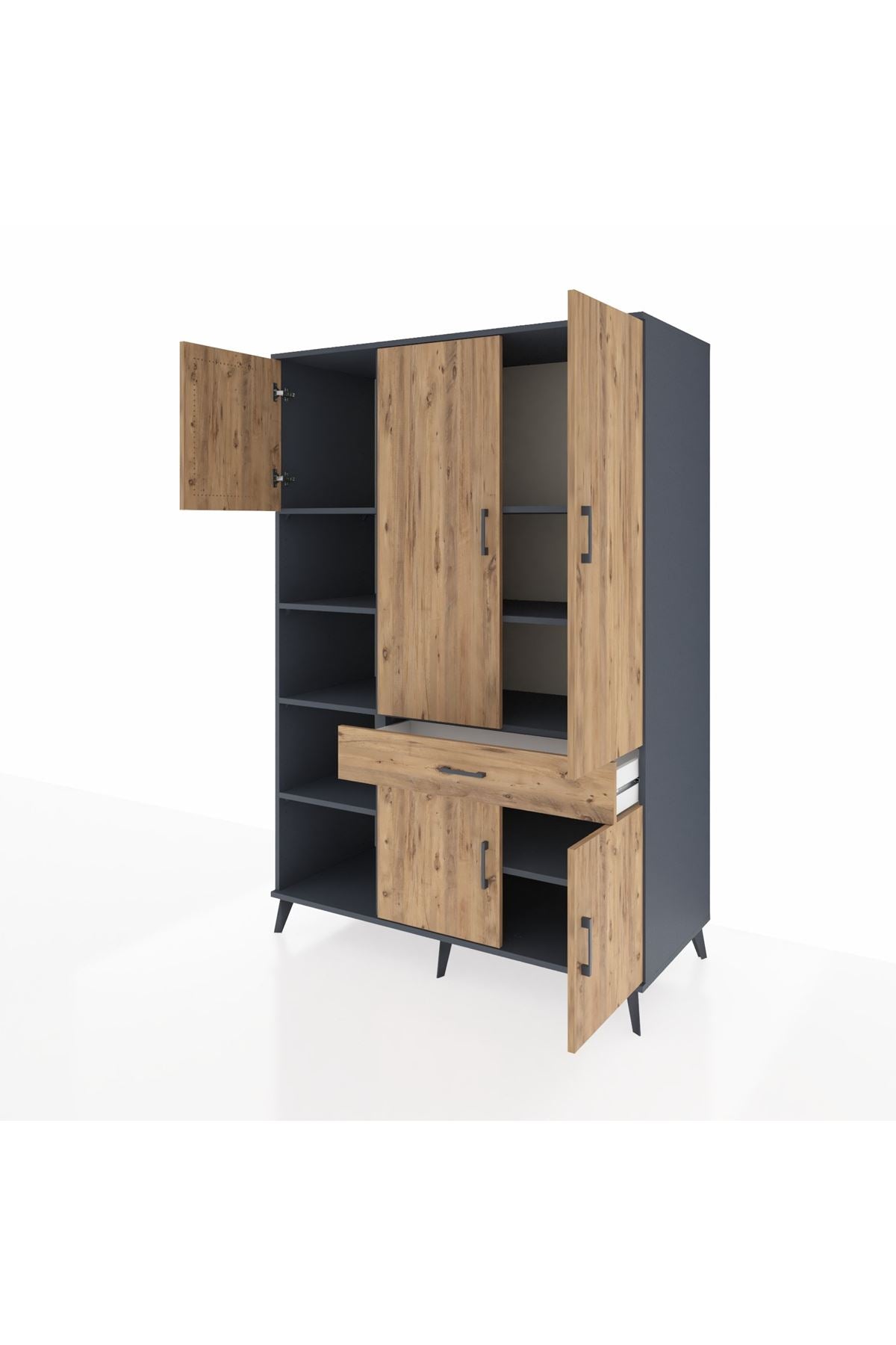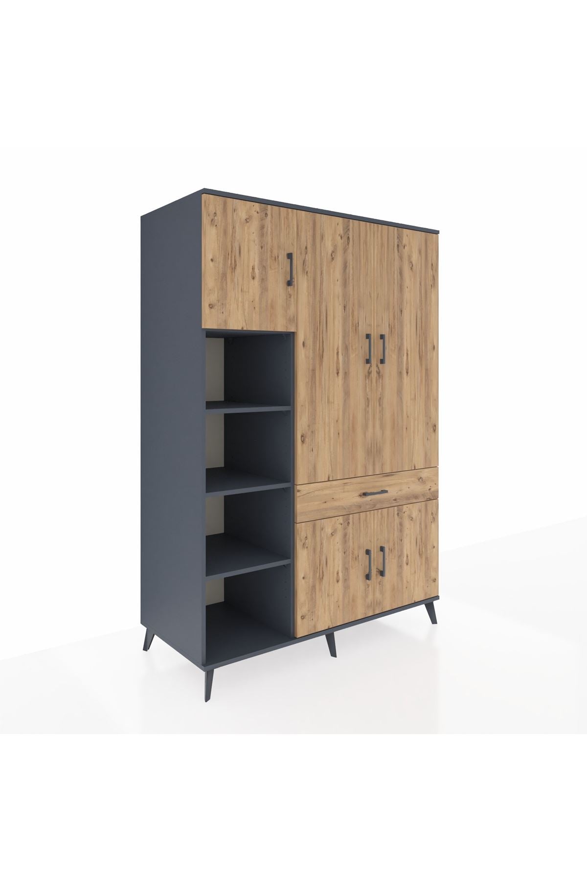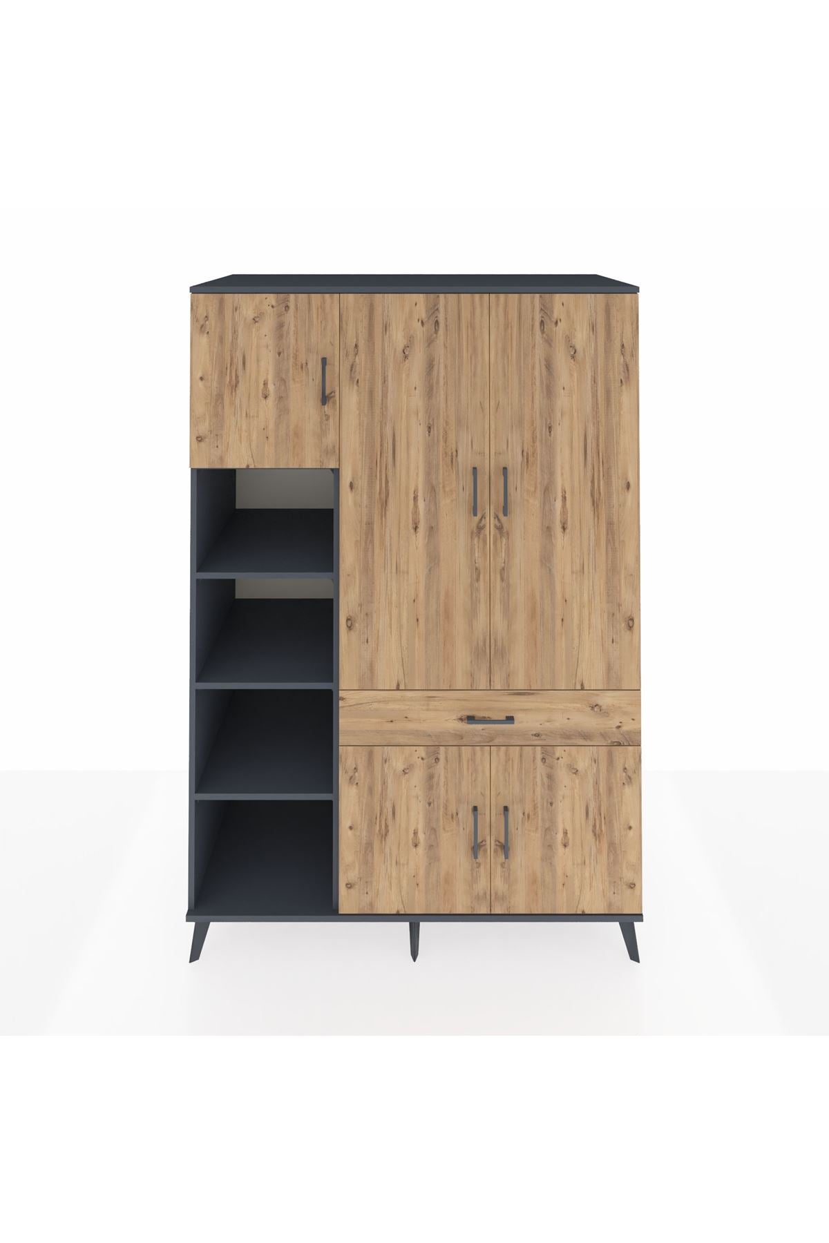 🕰️ Kronos Dolap 8 Raflı Tek Çekmeceli 5 Kapaklı 132x59x195 Antrasit-Çam/Çam