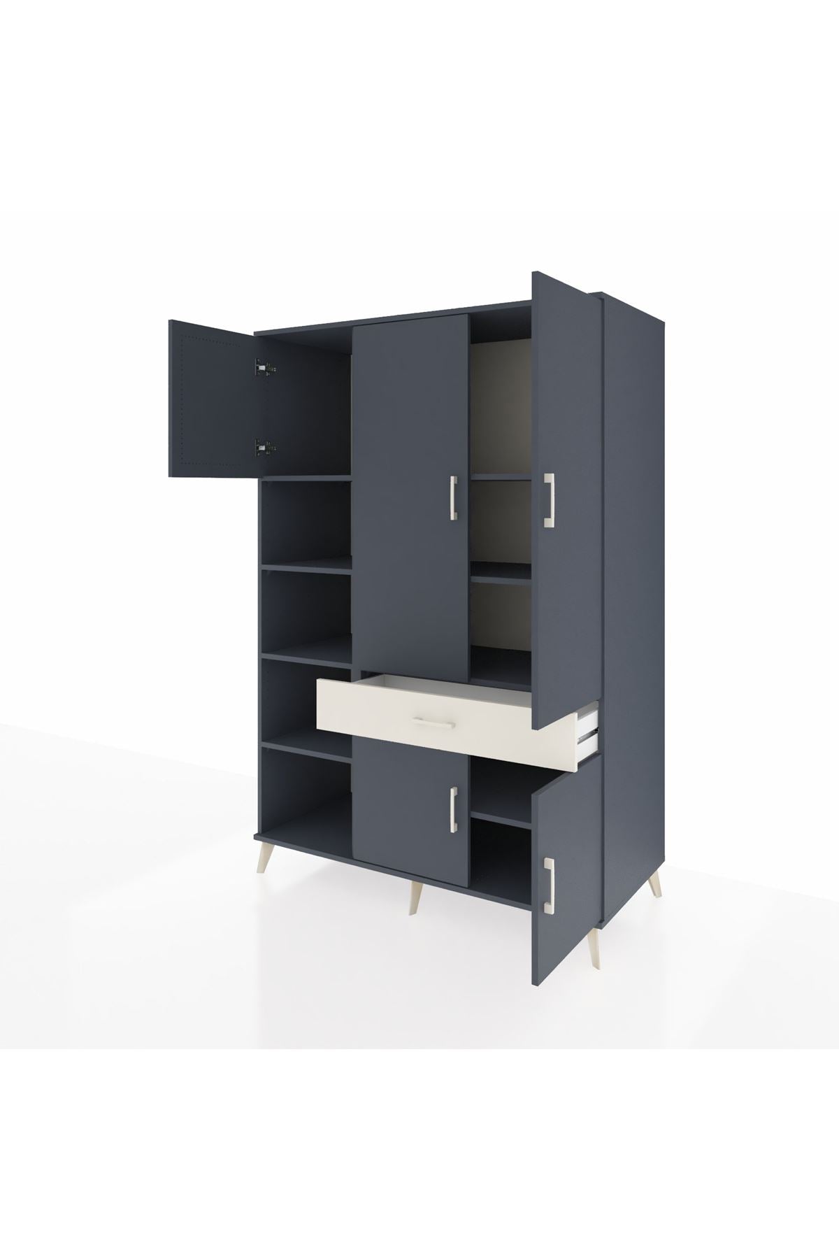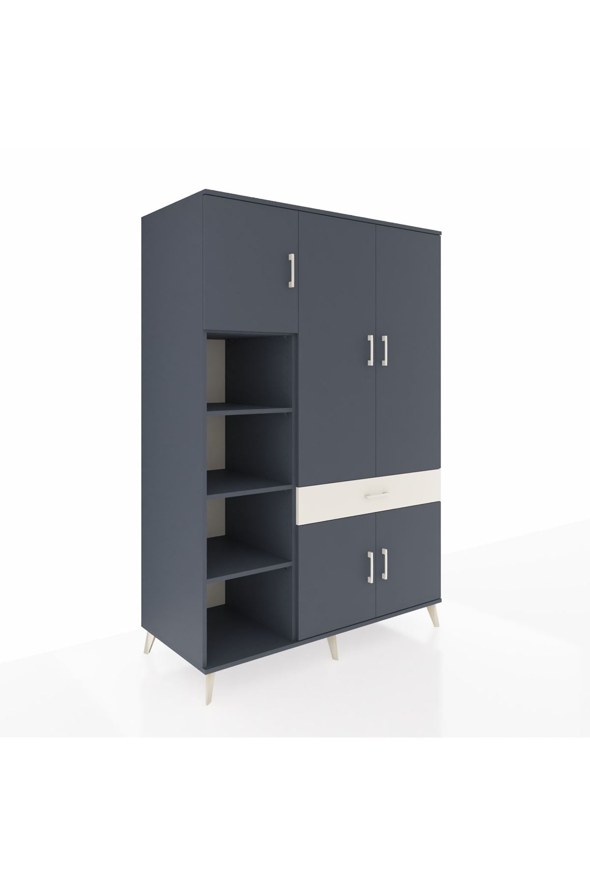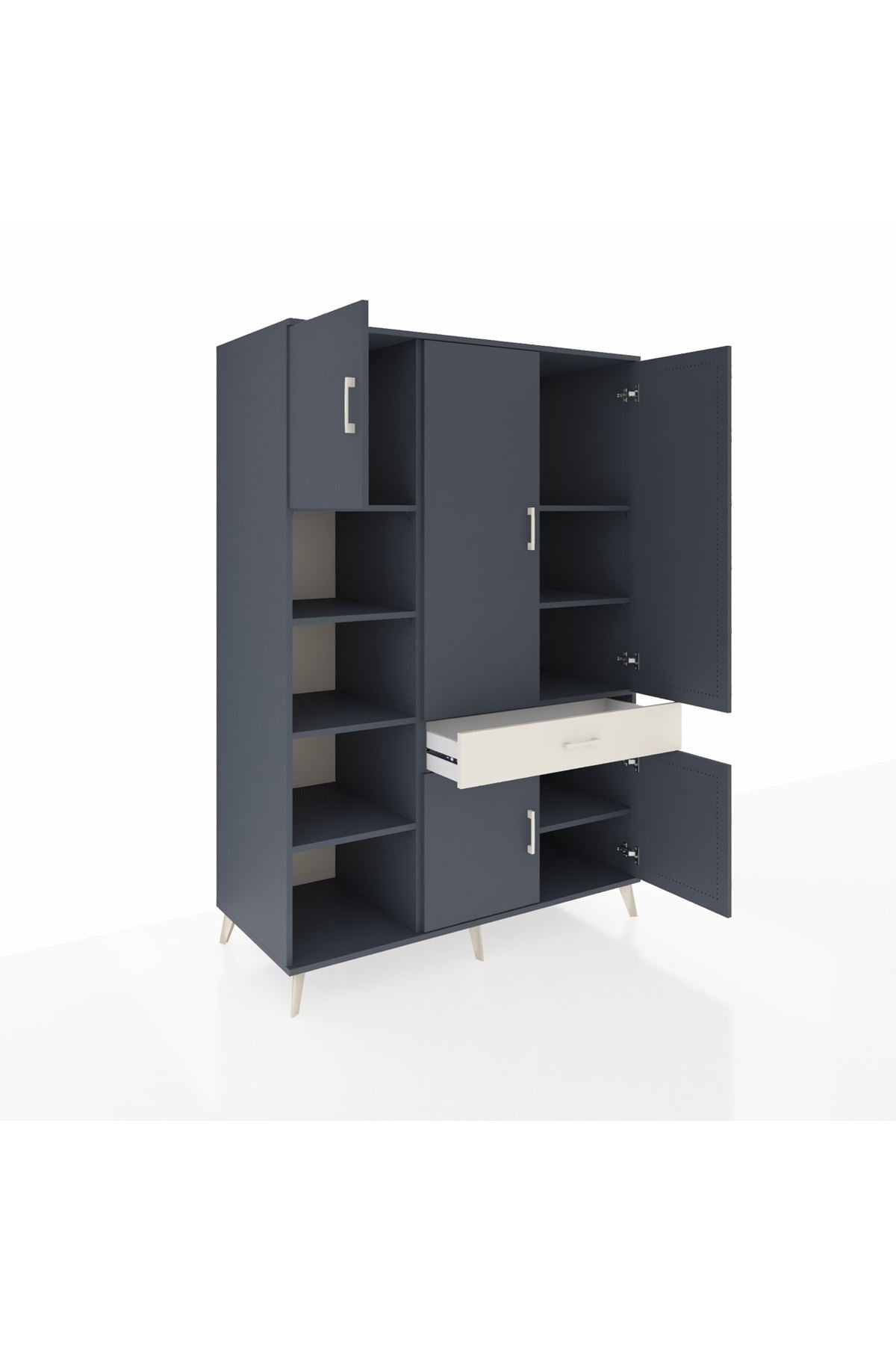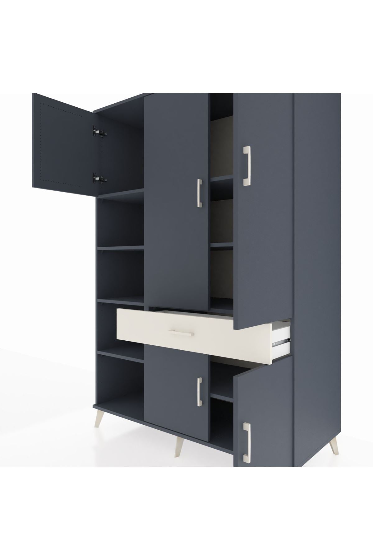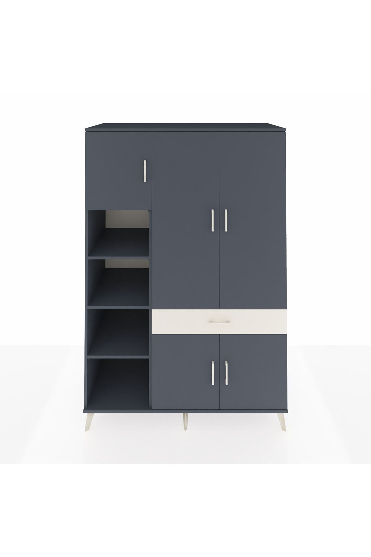 Kronos Dolap 8 Raflı Tek Çekmeceli 5 Kapaklı 132x59x195 Antrasit-Antrasit/Aytaşı
