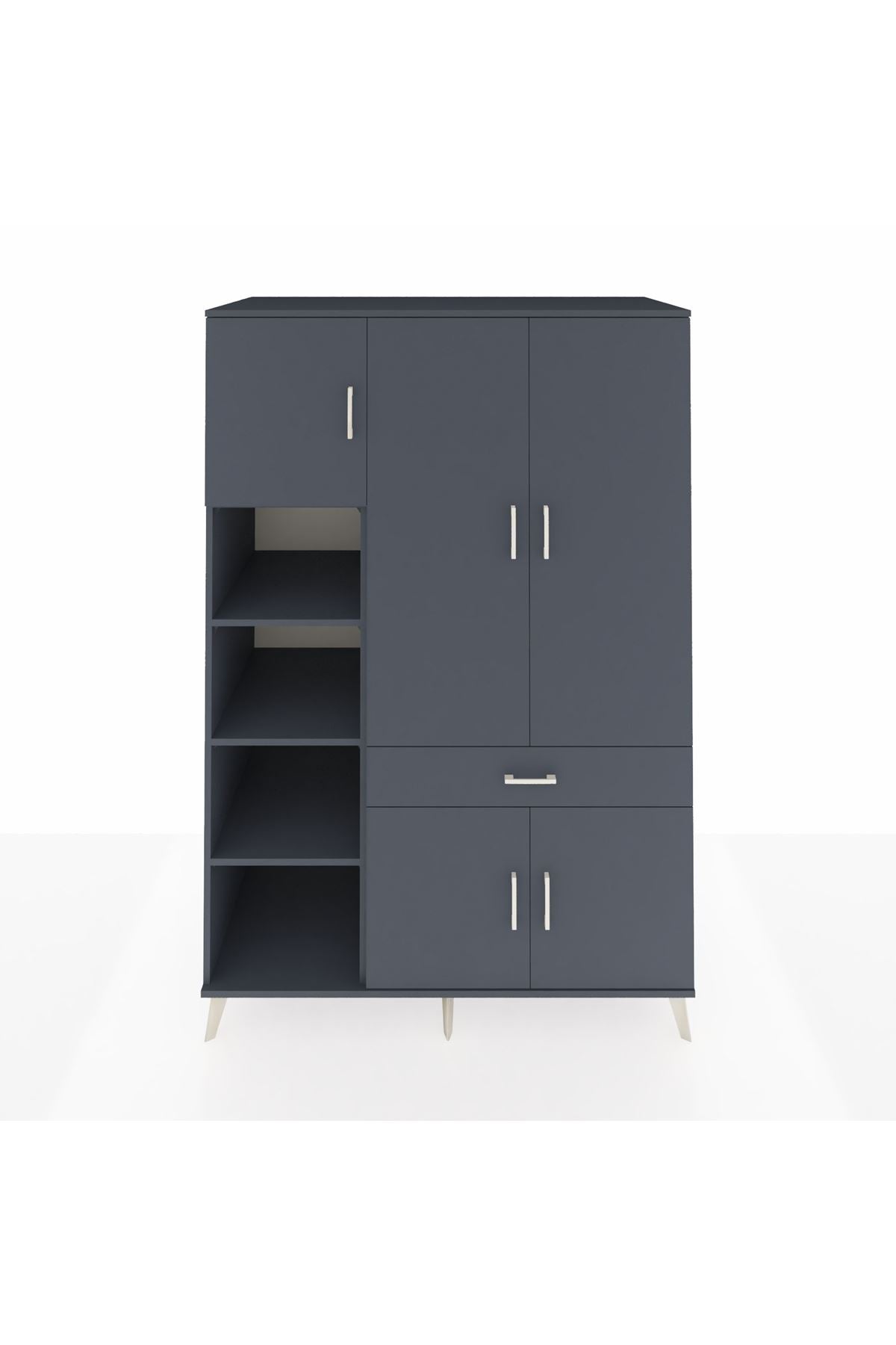 🌟 Kronos Dolap 8 Raflı Tek Çekmeceli 5 Kapaklı 132x59x195 Antrasit-Antrasit/Antrasit
