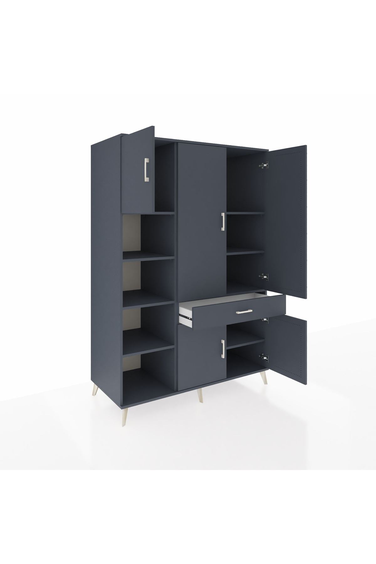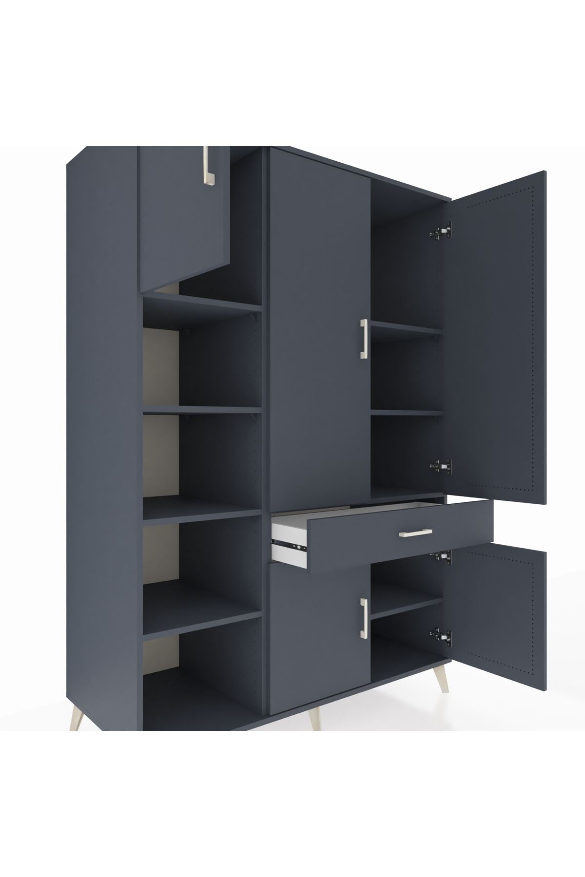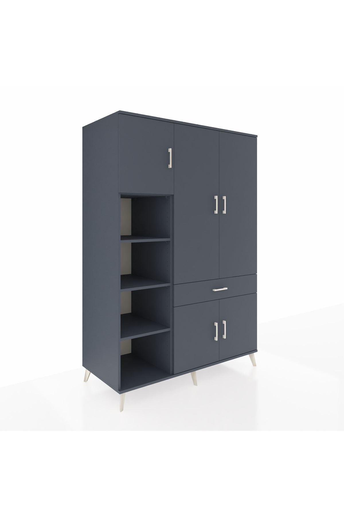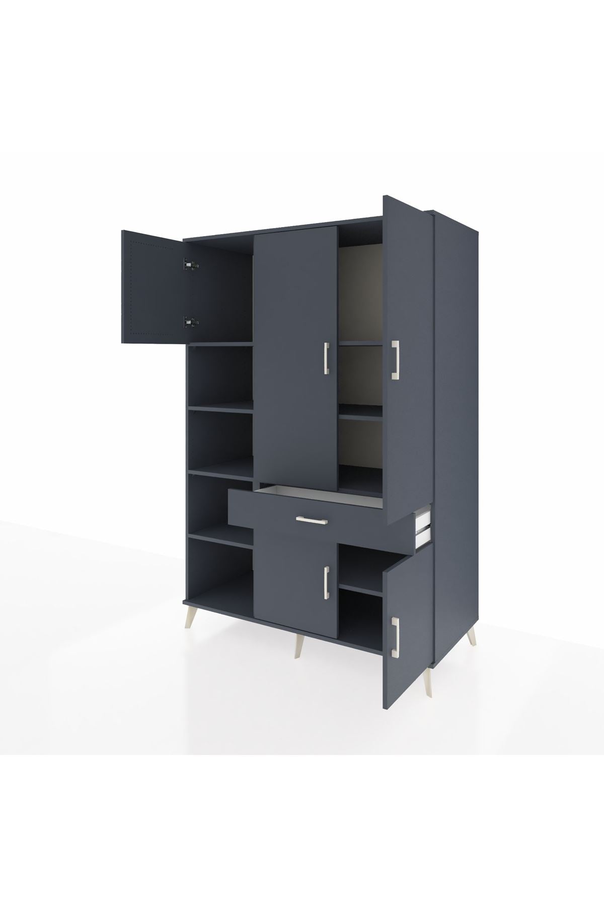 Kronos Dolap’ın 8 adet geniş rafı sayesinde kıyafet, kitap, ev tekstili veya ofis gereçlerini düzenli şekilde saklayabilirsiniz. Tek çekmecesi ve 5 kapaklı yapısı, özel eşyalarınız için ekstra güvenlik ve gizlilik sunar.🗄️ Antrasit renk gövde ve kapaklar, mekânınıza modern bir hava katar.🎨