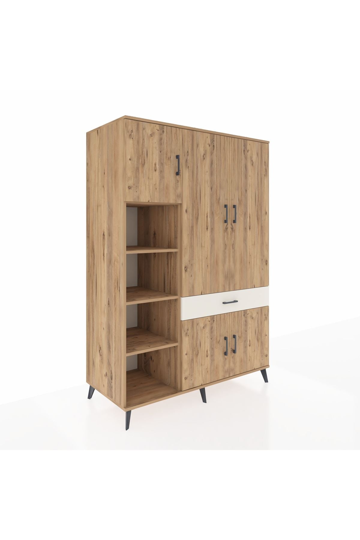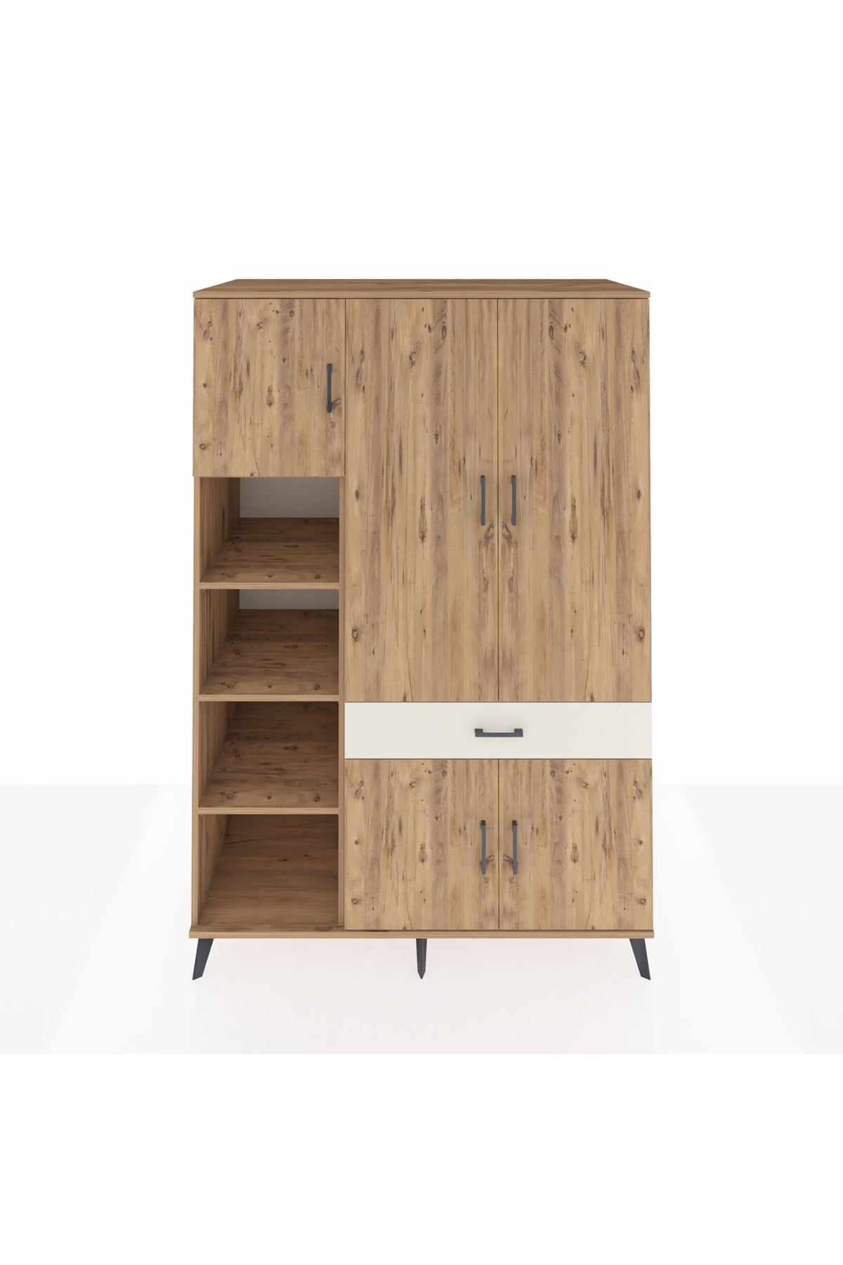 Kronos Dolap 8 Raflı Tek Çekmeceli 5 Kapaklı 132x59x195 Çam-Çam/Aytaşı