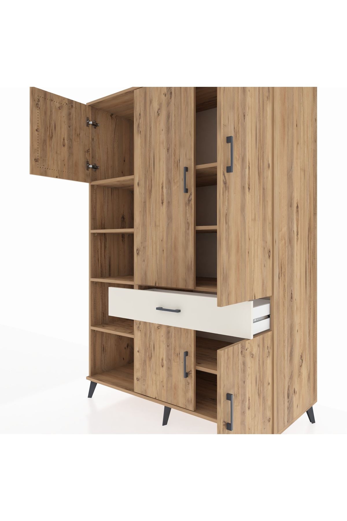 🌞 Kronos Dolap 8 Raflı Tek Çekmeceli 5 Kapaklı 132x59x195 Çam-Çam/Aytaşı