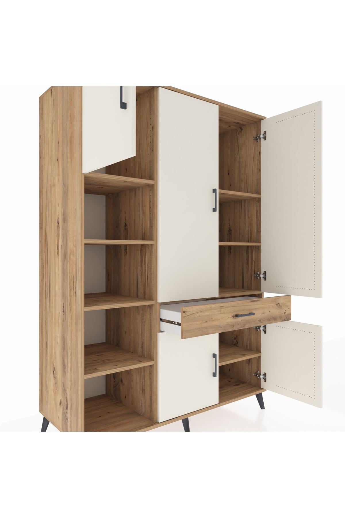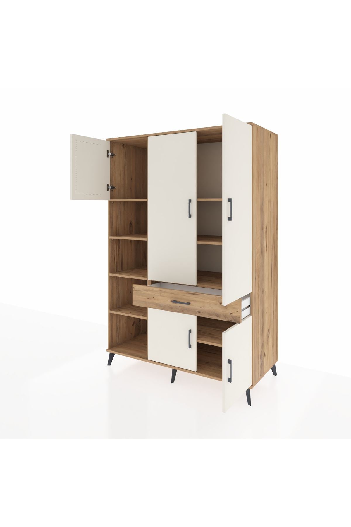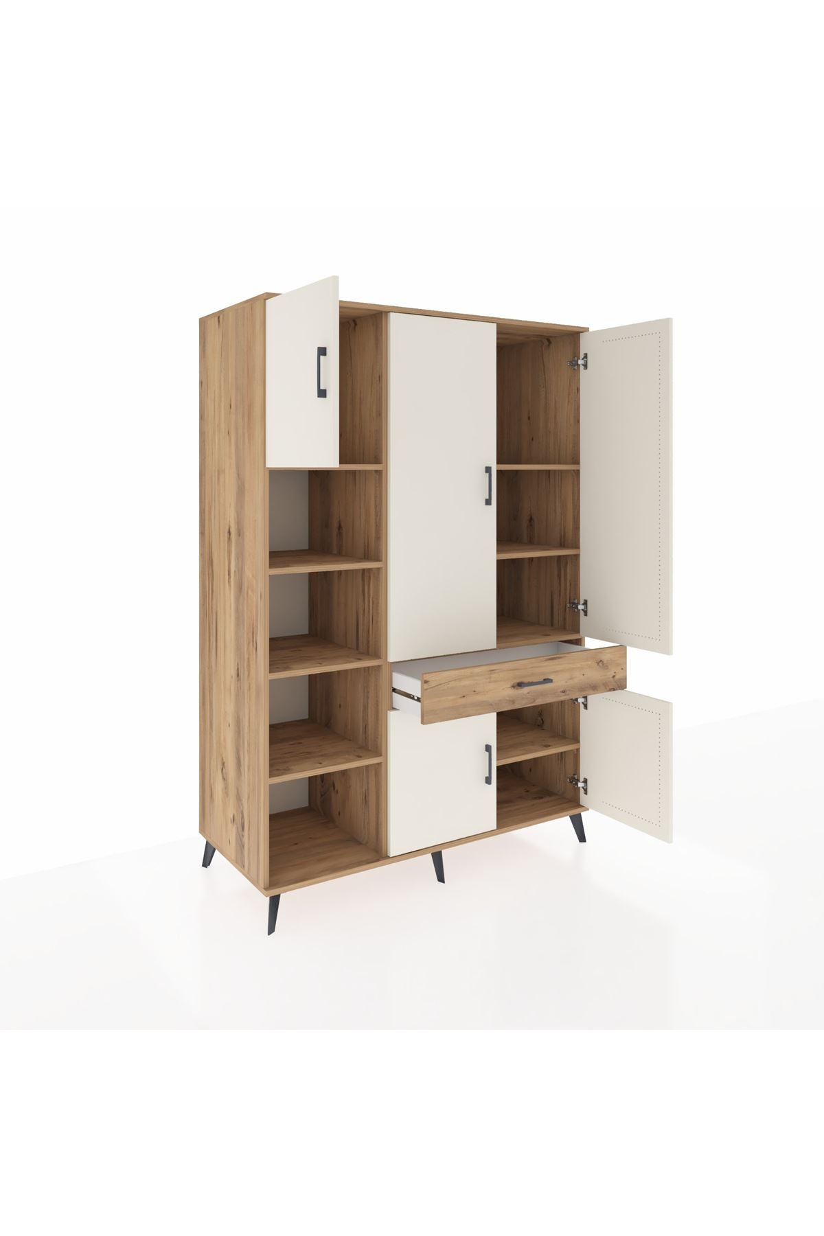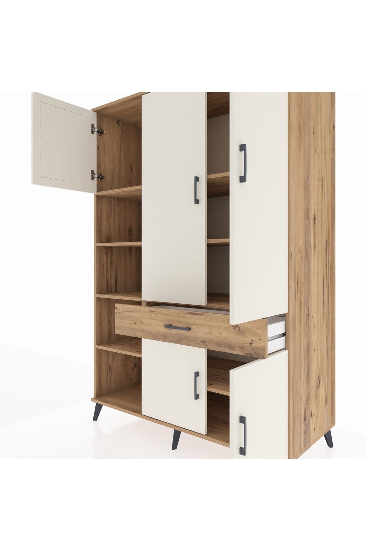 Kronos Dolap 8 Raflı Tek Çekmeceli 5 Kapaklı 132x59x195 Çam-Aytaşı/Çam