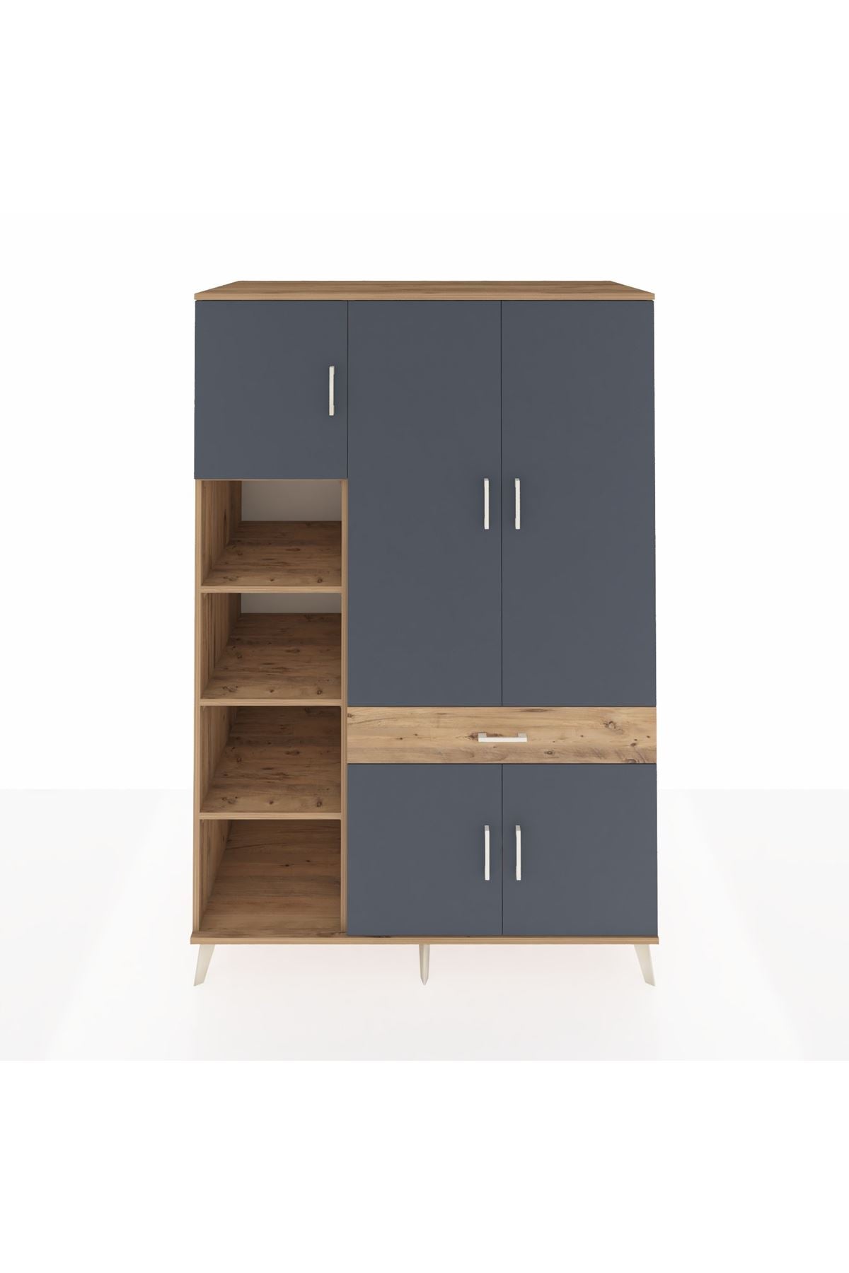 Kronos Dolap 8 Raflı Tek Çekmeceli 5 Kapaklı 132x59x195 Çam-Antrasit/Çam
