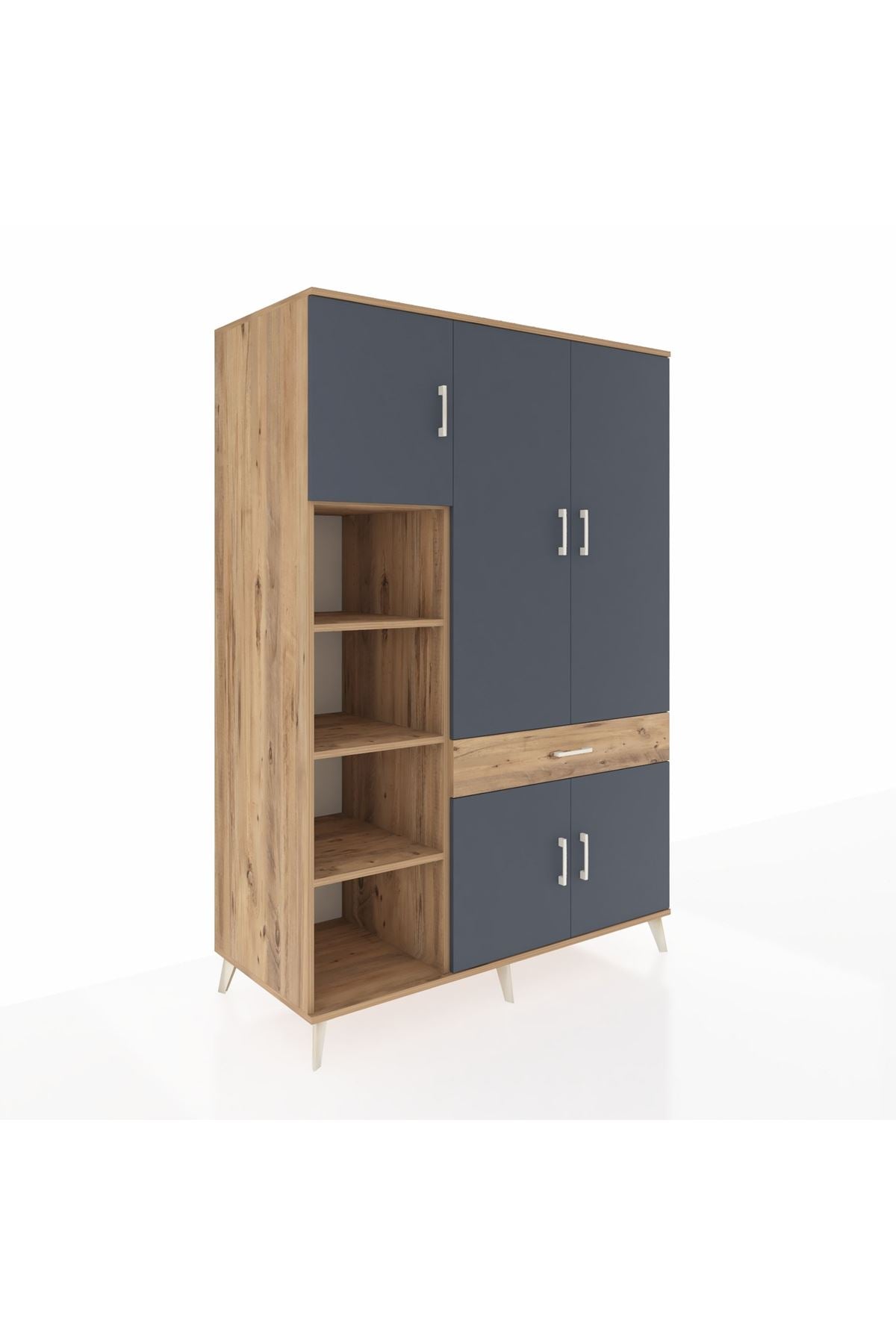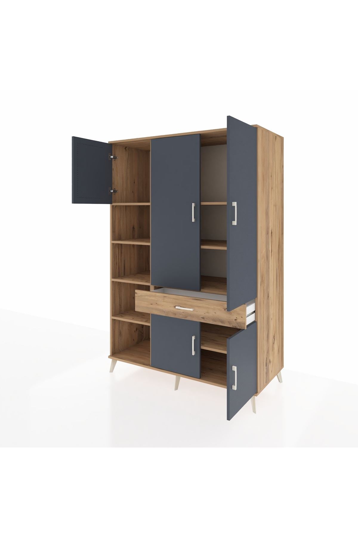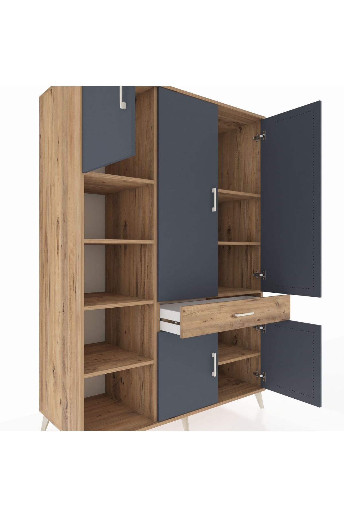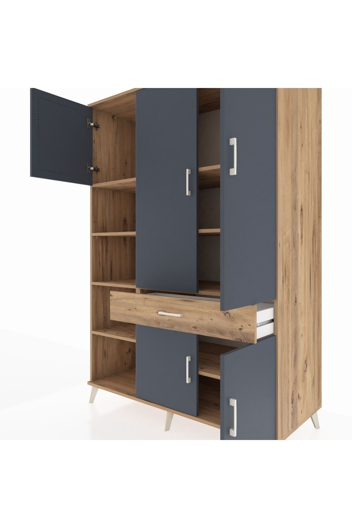 🌞 Kronos Dolap 8 Raflı Tek Çekmeceli 5 Kapaklı 132x59x195 Çam-Antrasit/Çam