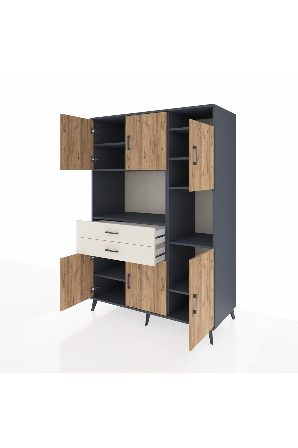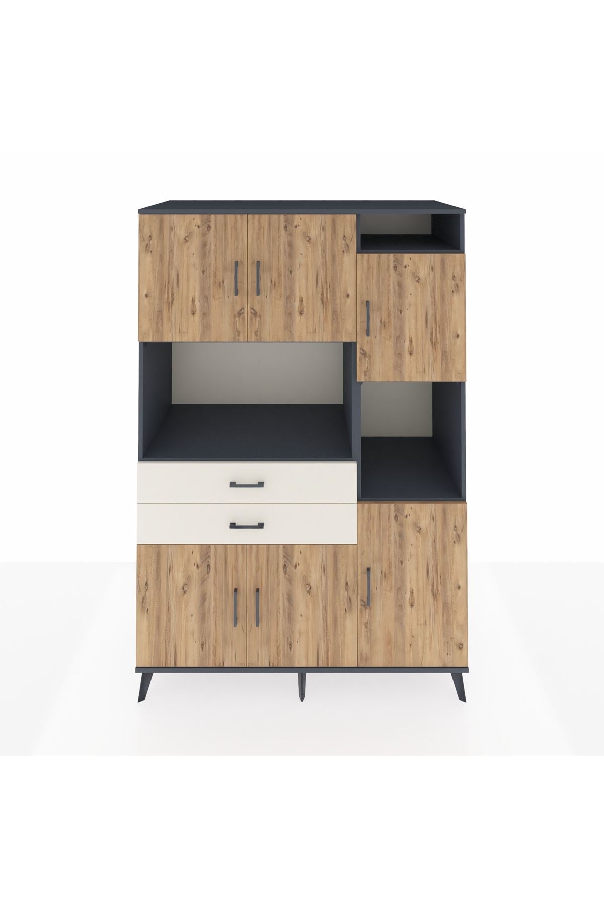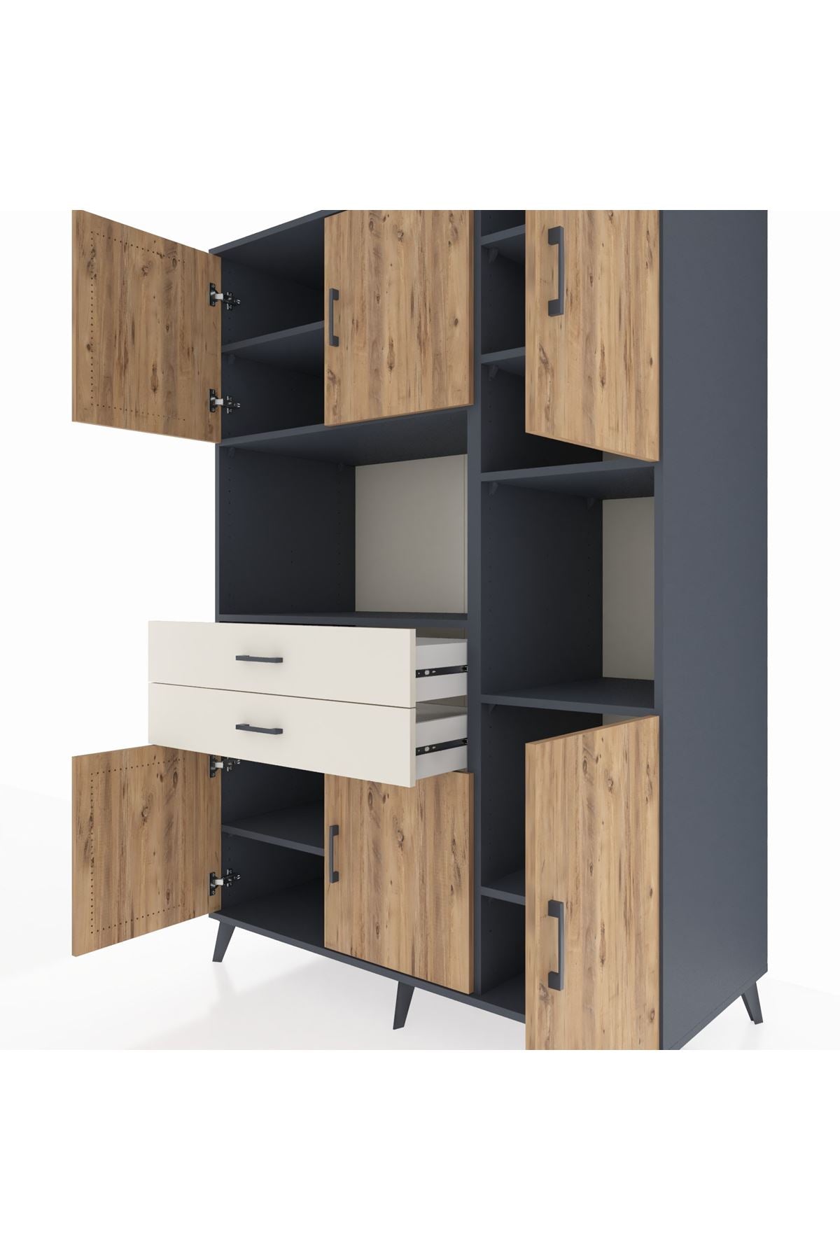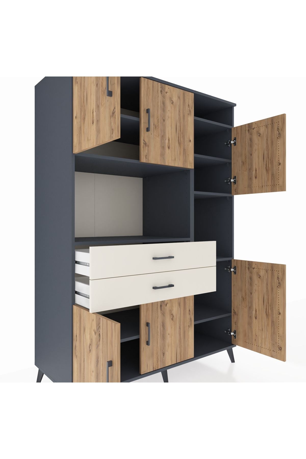 Kronos Dolap 9 Raflı 2 Çekmeceli 6 Kapaklı 132x59x195 Antrasit-Çam/Aytaşı